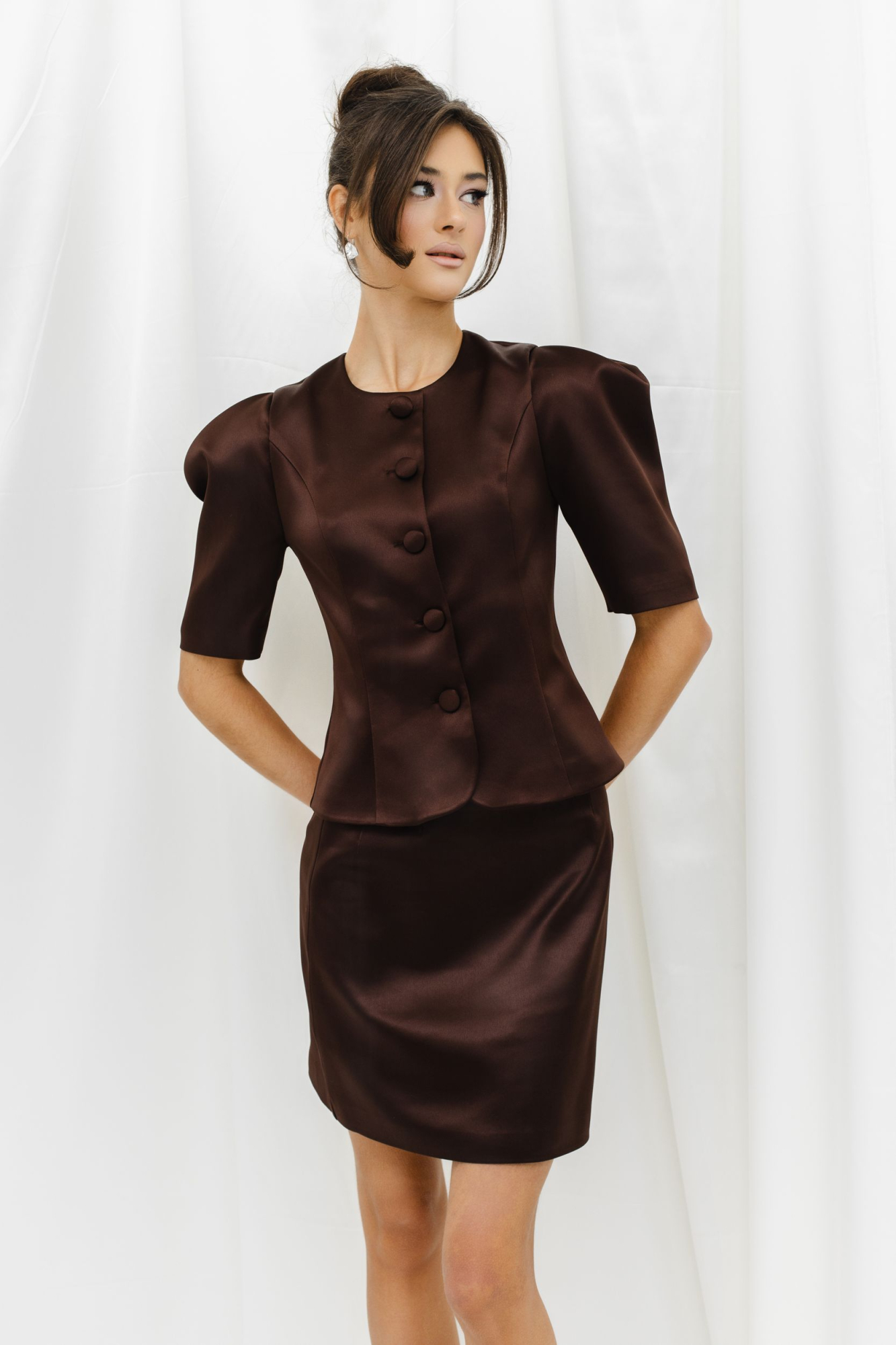 Для образа на выход сочетайте с юбкой в длине миди или мини из аналогичной ткани, а на каждый день - с джинсами расслабленной посадки.