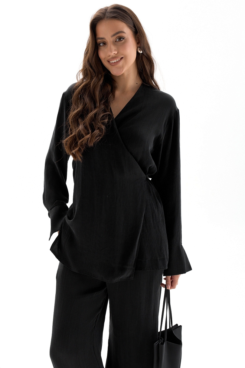 Блуза на запах из купро сочетает элегантность и комфорт, идеально подходя для повседневных и вечерних образов. Ткань купро, похожая на шелк, обеспечивает легкость, воздухопроницаемость и приятную текстуру на ощупь.