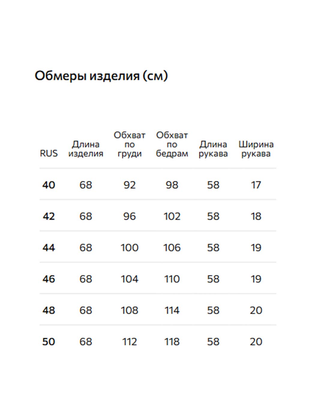 Рукава фиксируются на длине три четверти с помощью встроенного хлястика. Основная застежка выполнена на пуговицы в тон ткани, на воротнике и манжетах — акцентные пуговицы под золото.