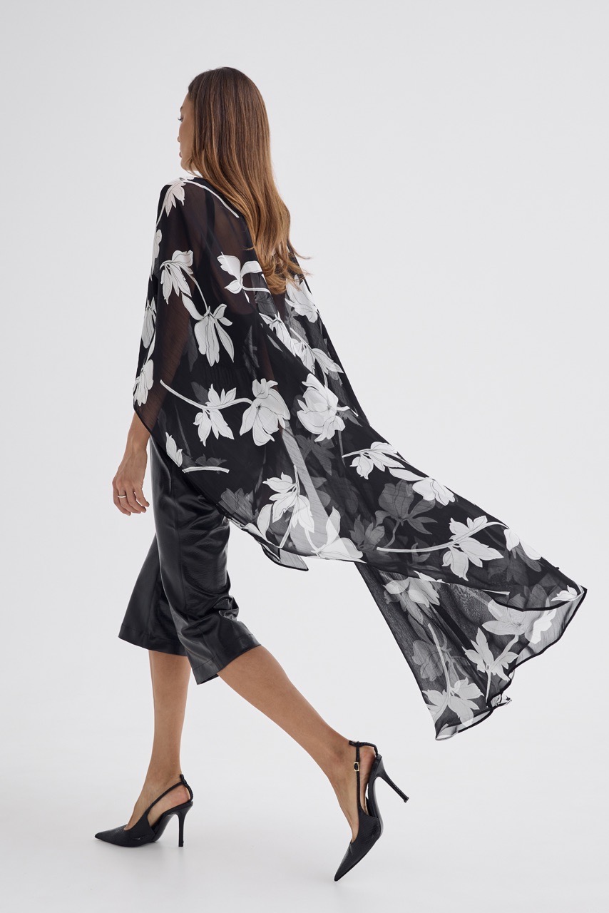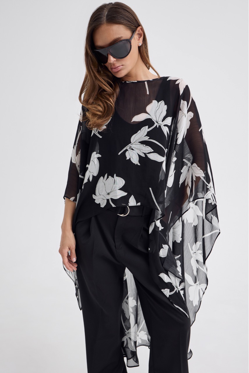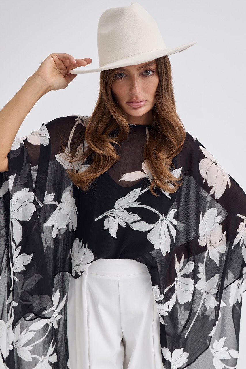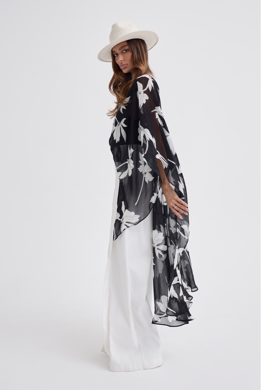 Кейп в модный цветочный принт - тот самый акцент, который собирает образ.