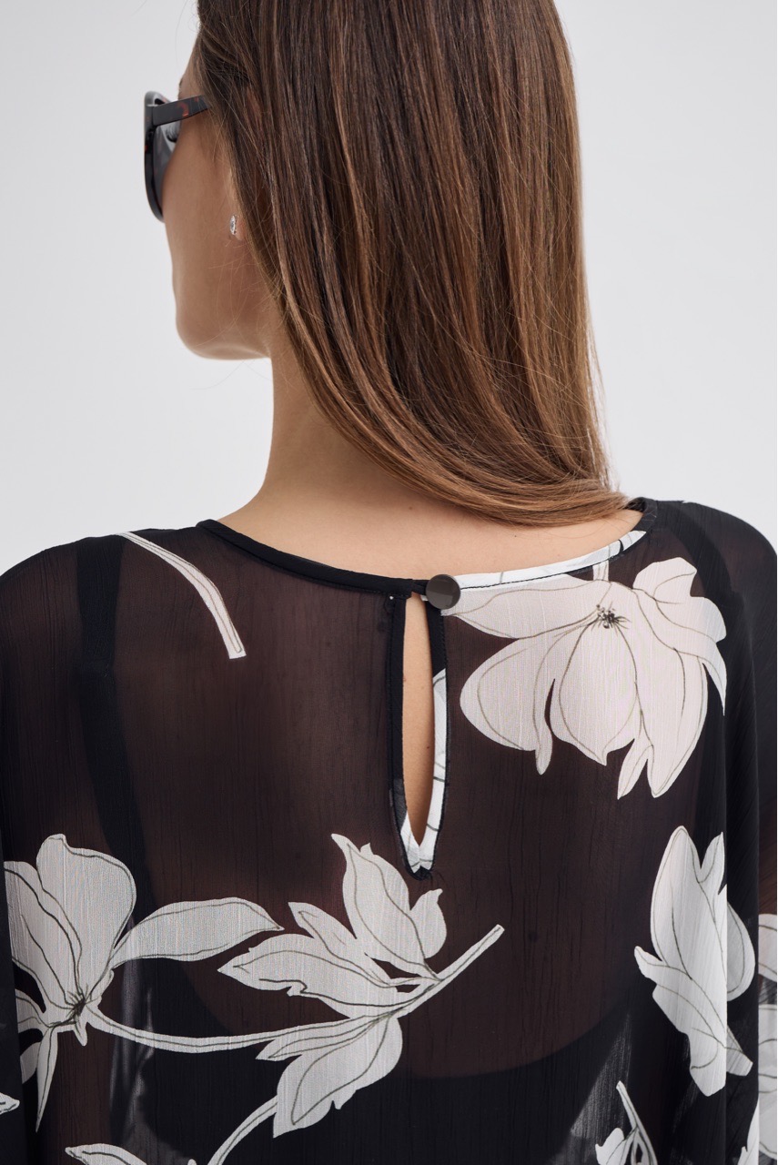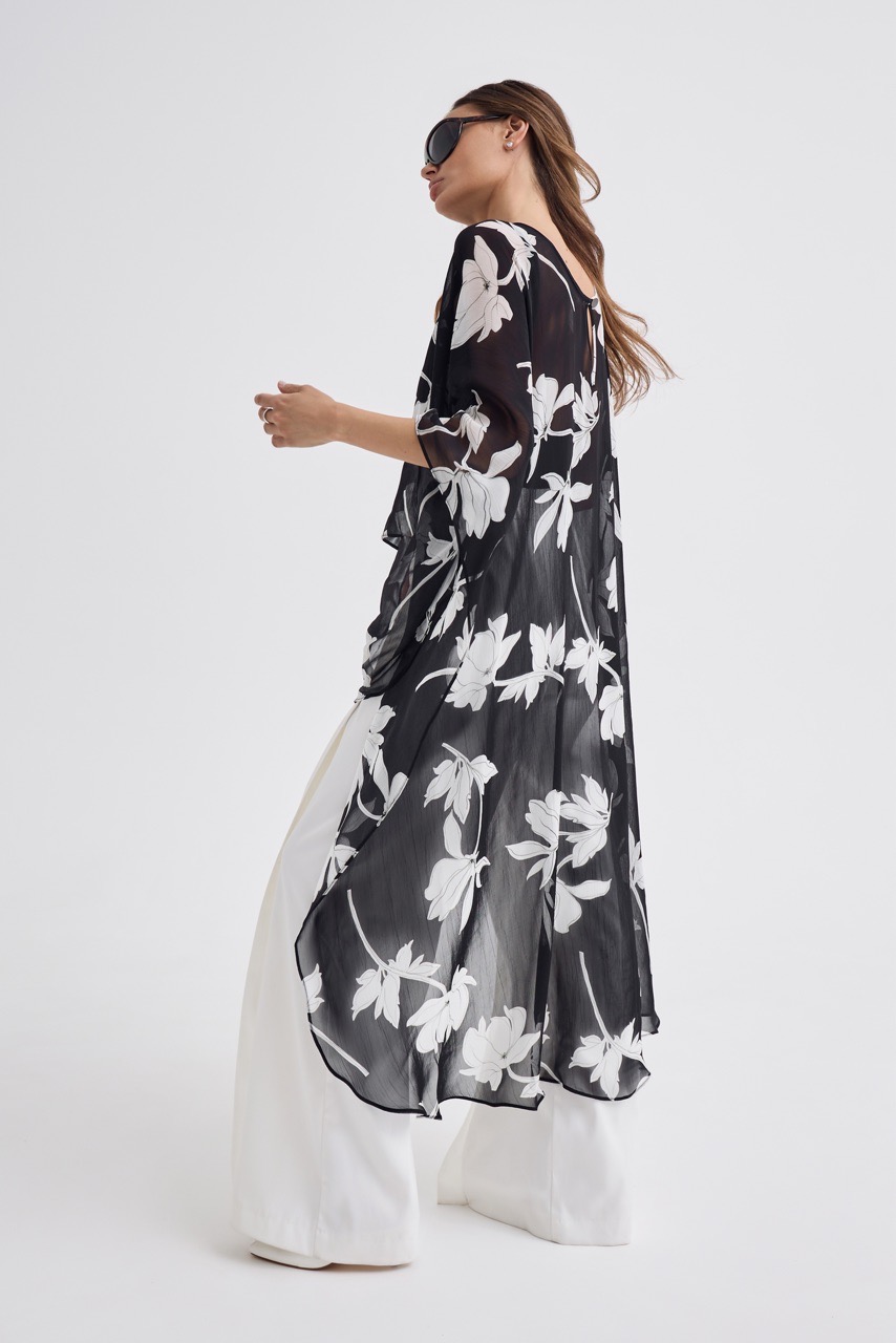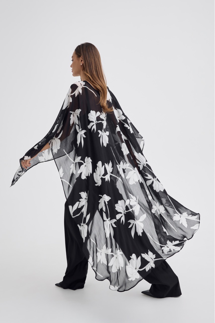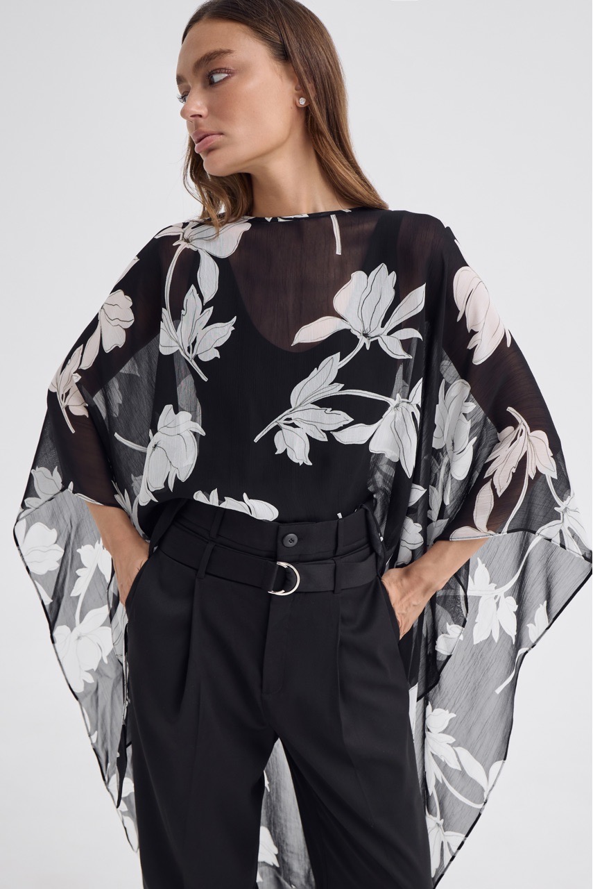 Кейп в модный цветочный принт - тот самый акцент, который собирает образ.