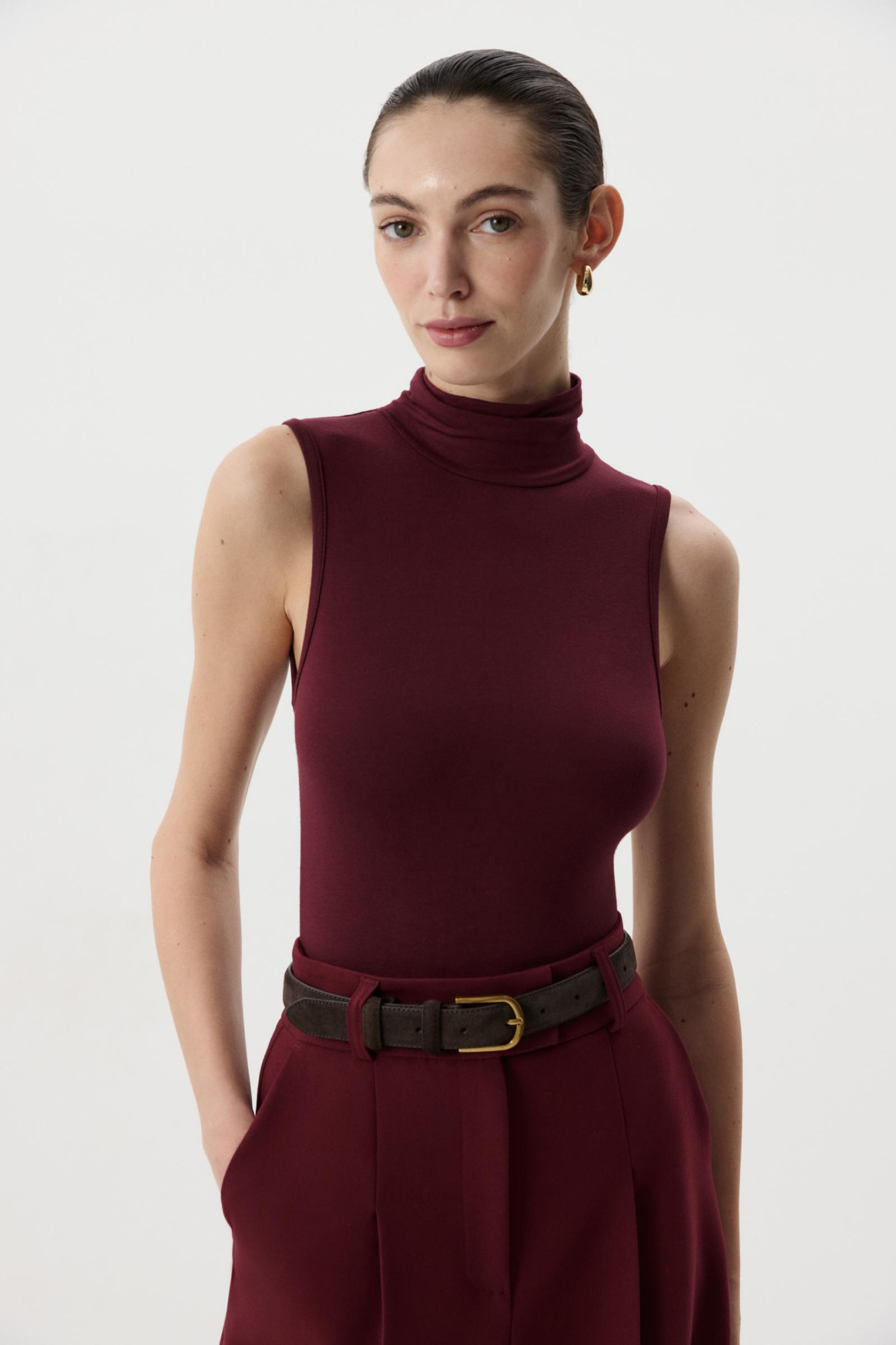Боди из мягкой трикотажной вискозы. Приталенный силуэт с воротником-стойка - это идеальная база для любого образа. Изделие застегивается на кнопки по низу.