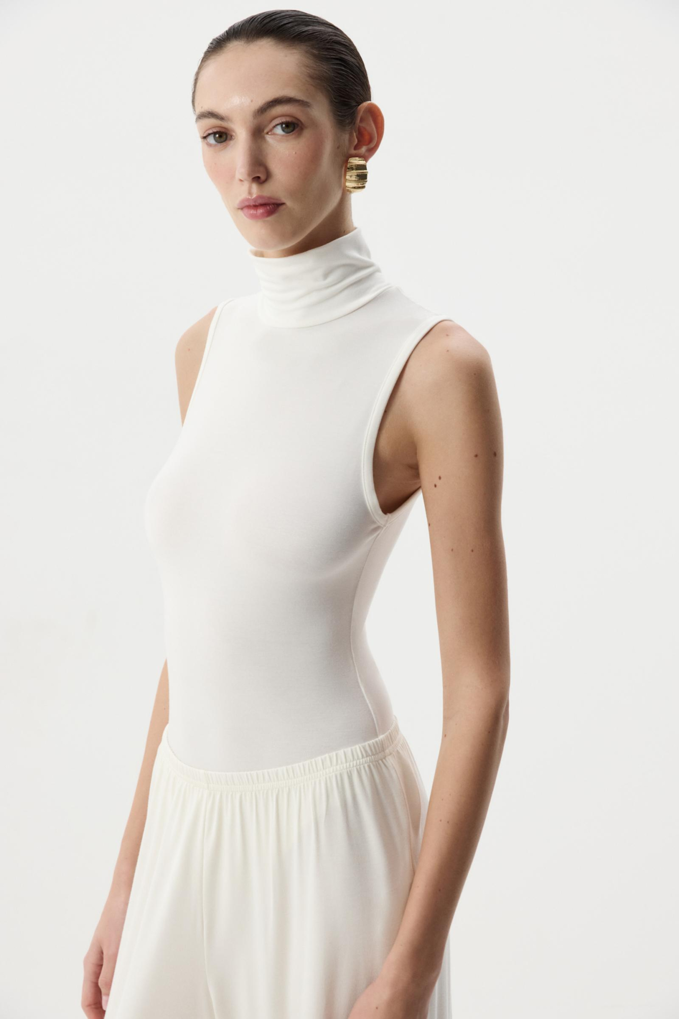 Сочетайте в образы с джинсами, брюками и жакетами из нашей коллекции. Базовая модель, которая делает повседневные выходы интереснее. Беспроигрышное сочетание, которое подойдет для разных поводов топ с брюками палаццо или юбкой длины миди.