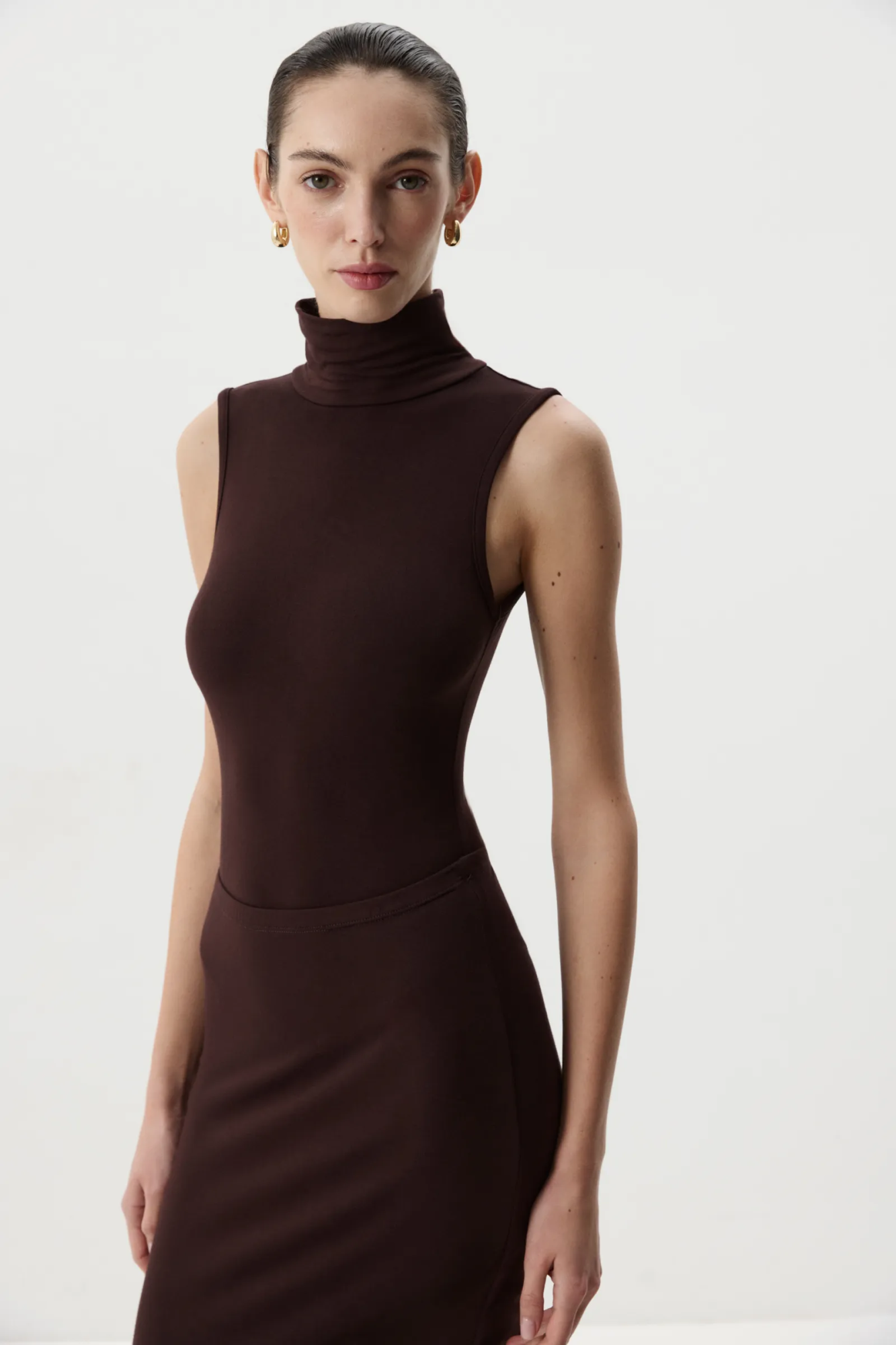 Боди из мягкой трикотажной вискозы. Приталенный силуэт с воротником-стойка - это идеальная база для любого образа. Изделие застегивается на кнопки по низу.