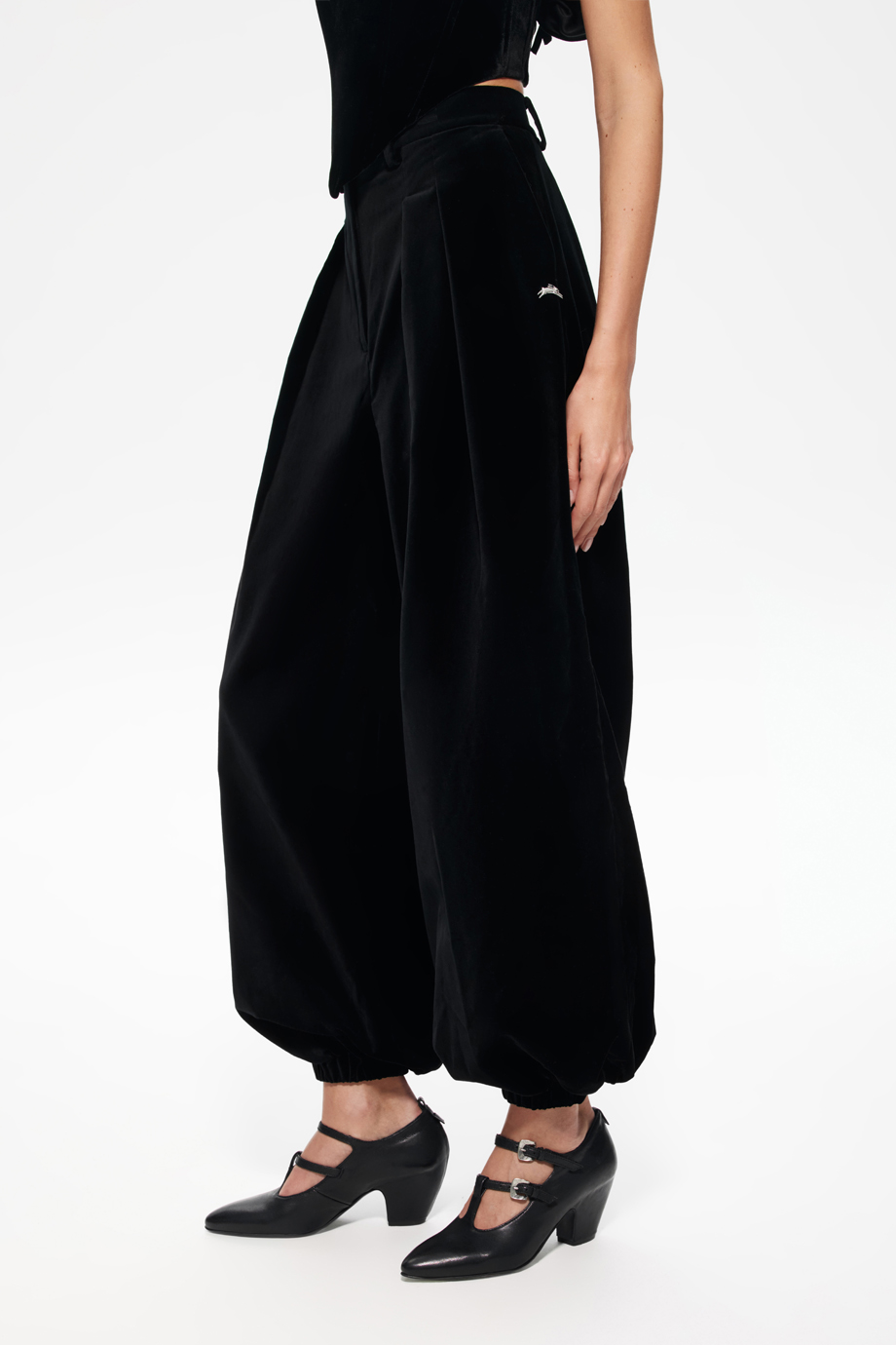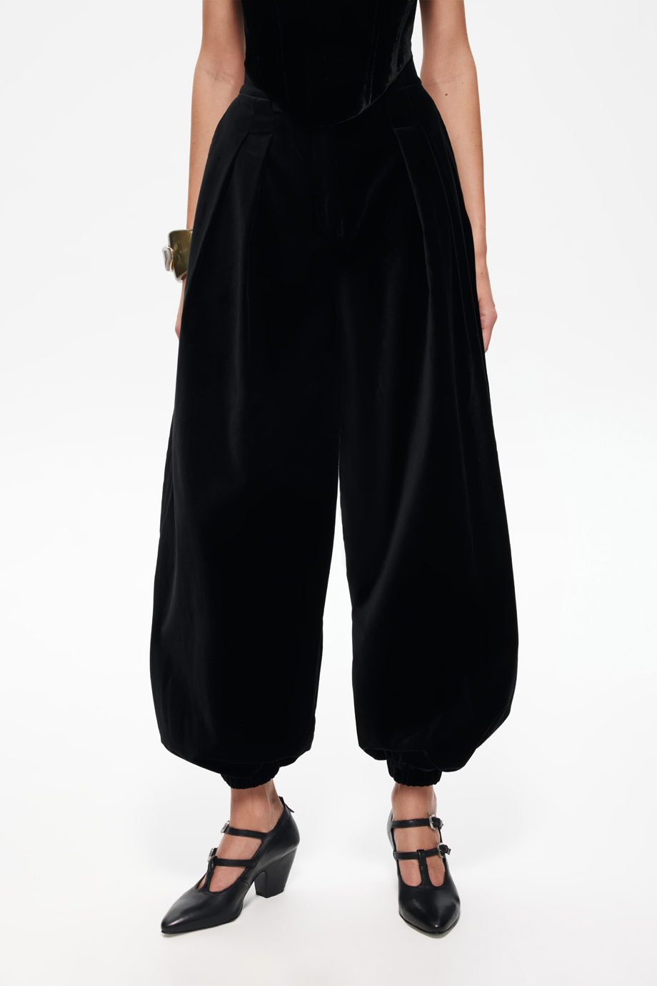 Брюки-баллон имеют свободный крой. Это придаёт силуэту лёгкость и динамику.