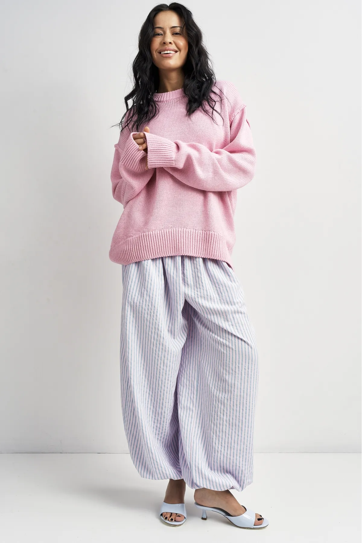 Брюки-алладины в полоску в цвете Розовый