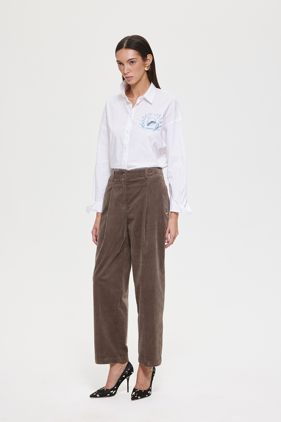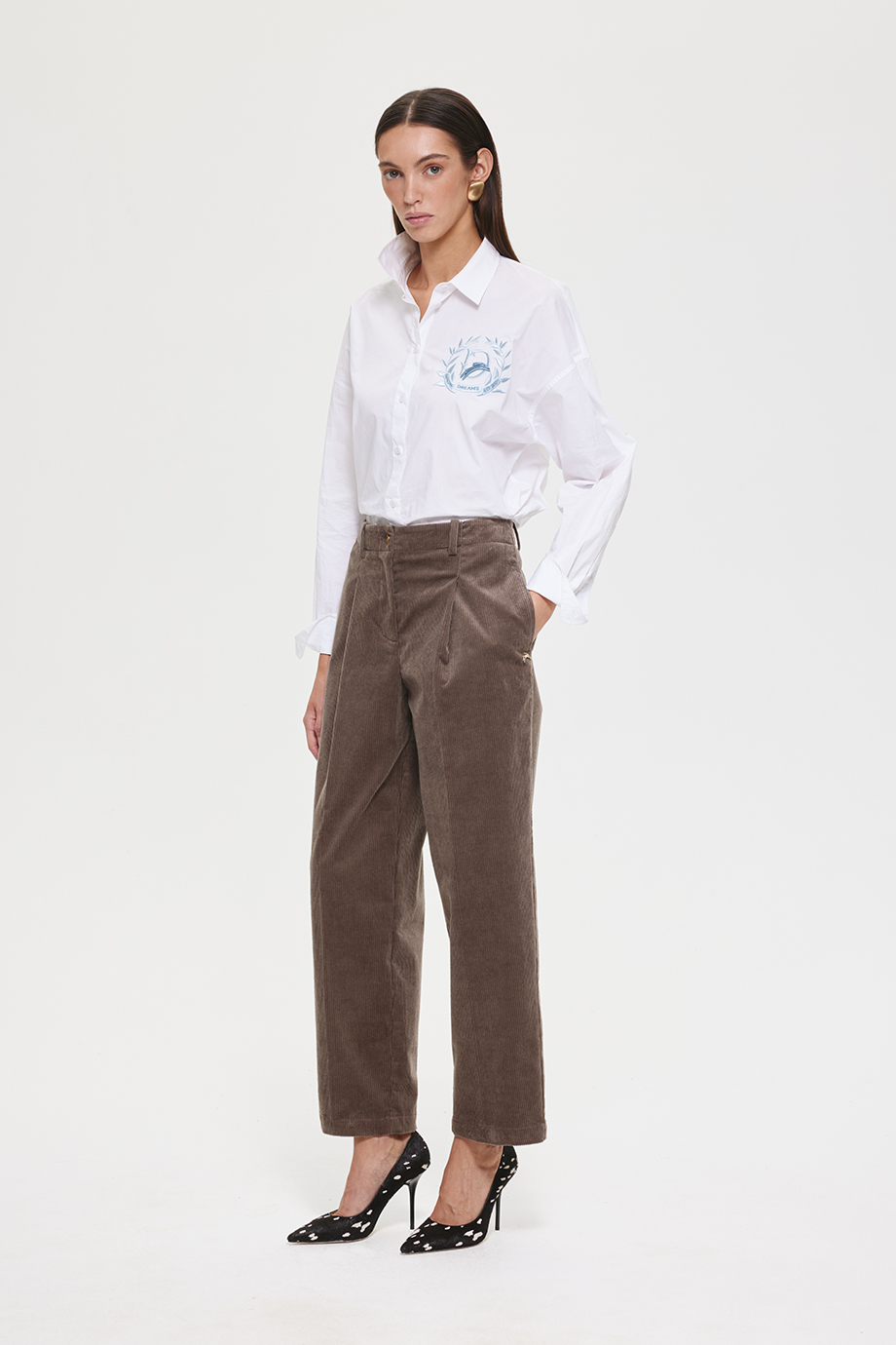 Качественный вельвет приятен на ощупь и отличается долговечностью. Коричневый цвет универсален и легко сочетается с различными верхами, от классических рубашек до ярких блуз. Брюки идеально подойдут для создания как повседневных, так и более элегантных образов.