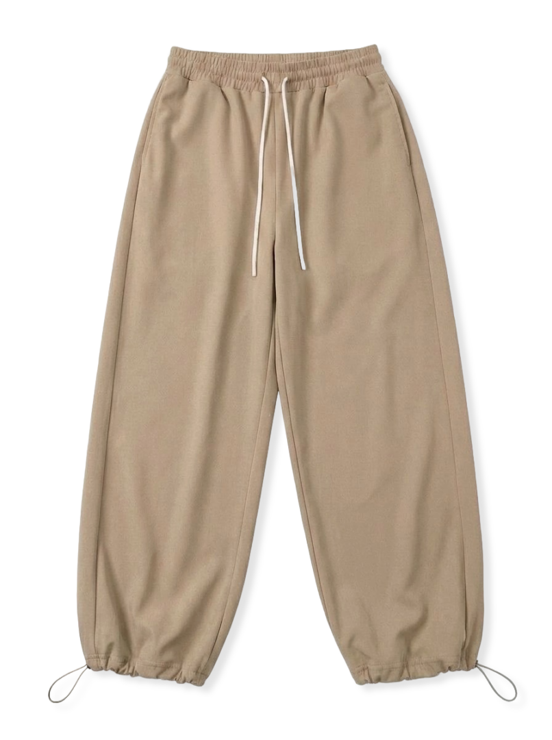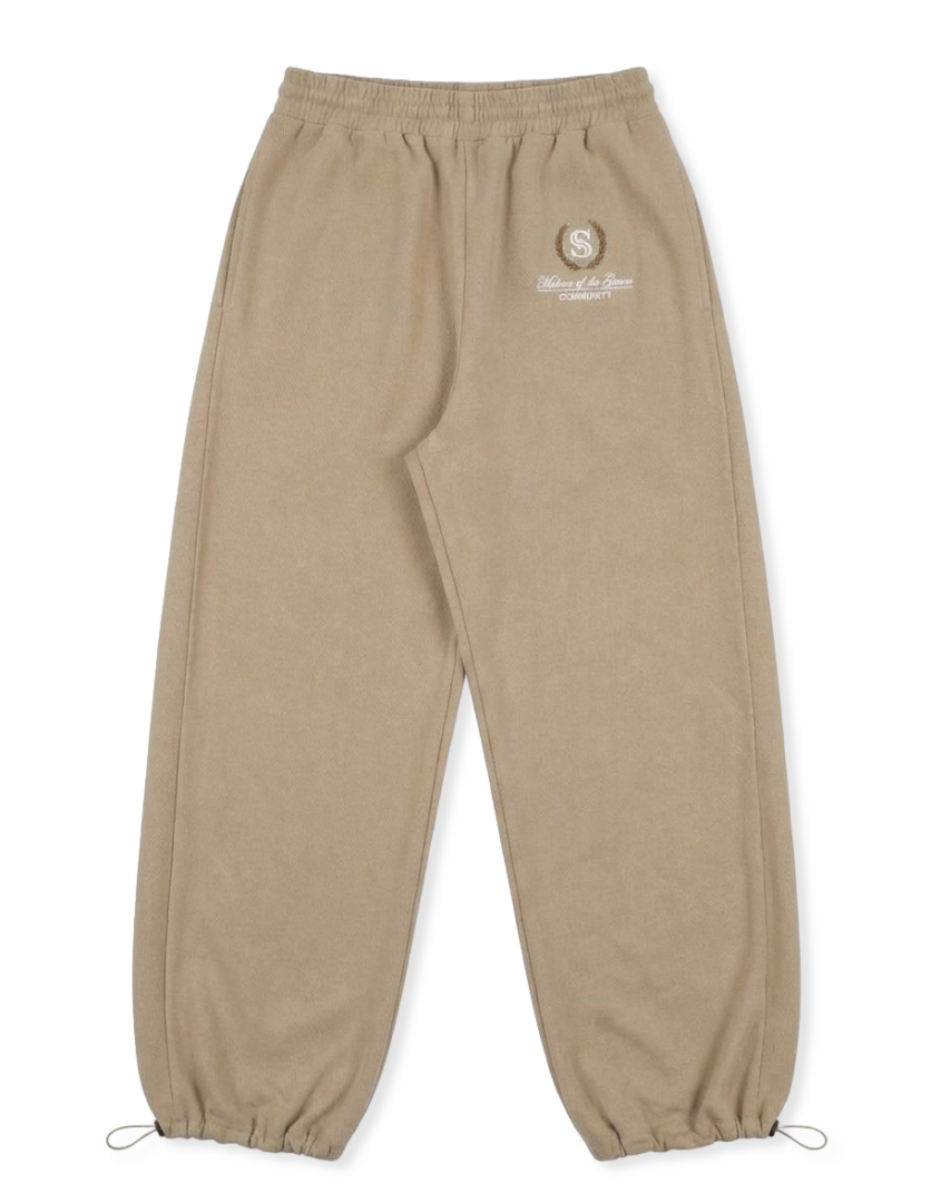 Свободные брюки, представляющие собой идеальное сочетание комфорта и актуального уличного стиля. Фактурная ткань с мелким вельветовым рубчиком создает деликатные переливы цвета, а объемный крой обеспечивает полную свободу движений. Модель оснащена эластичным поясом на кулиске с белыми шнурами для регулировки посадки и функциональными фиксаторами в нижней части штанин, позволяющими трансформировать широкий силуэт в зауженный. Дизайн завершает изысканная светлая вышивка с логотипом SCANDALIS и геральдическими мотивами на левом бедре.