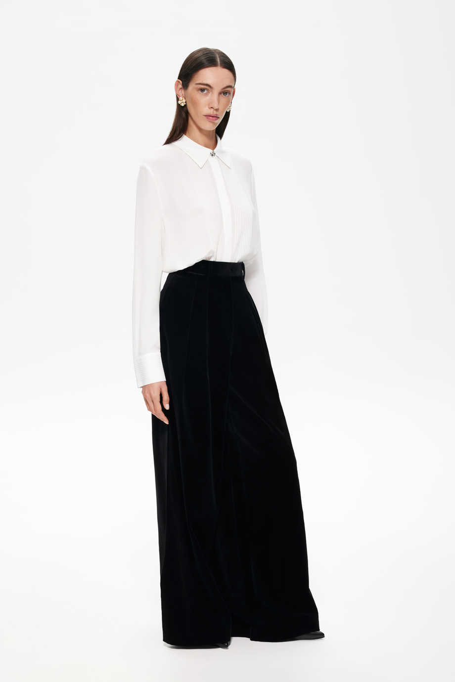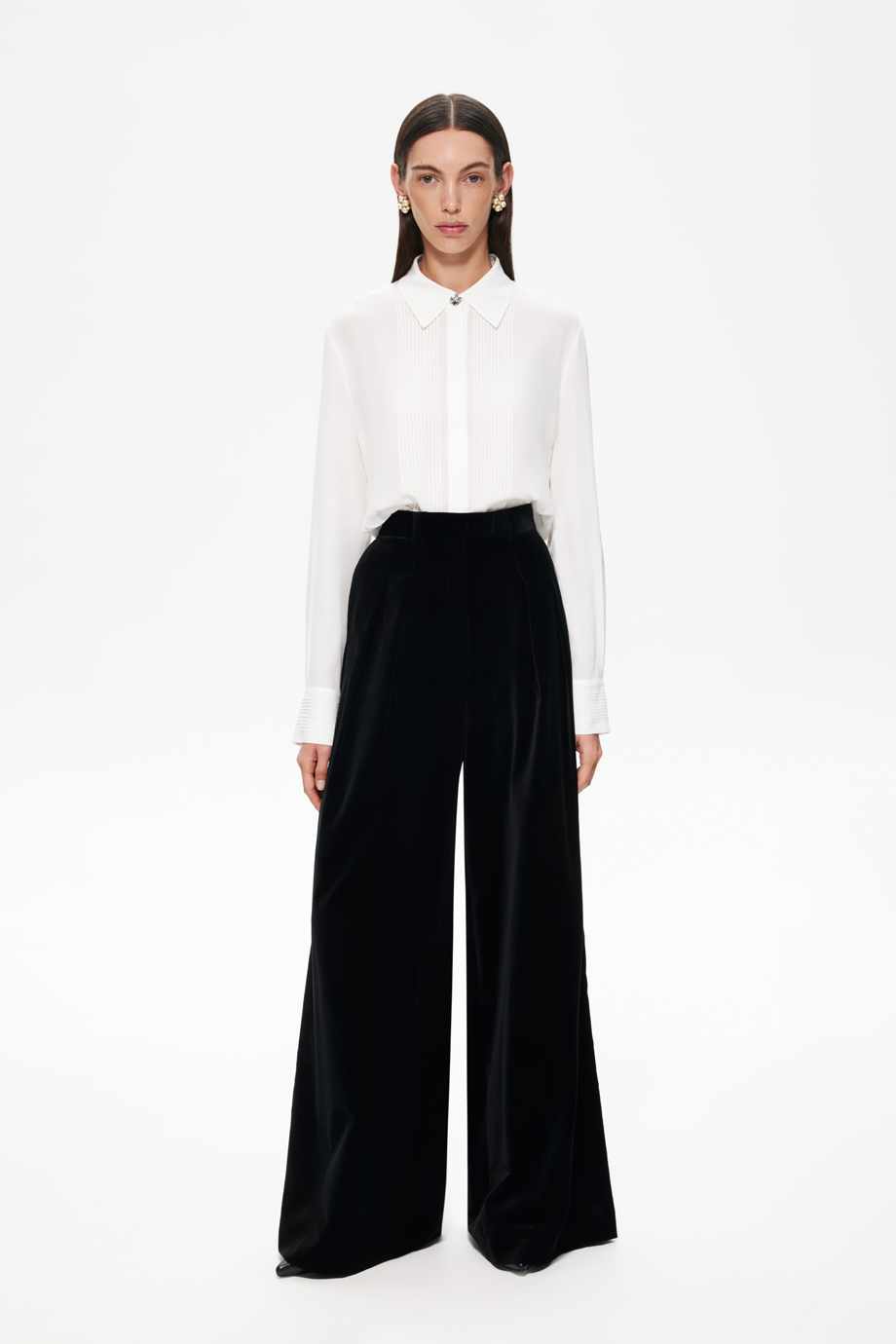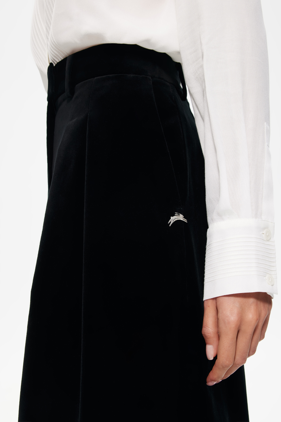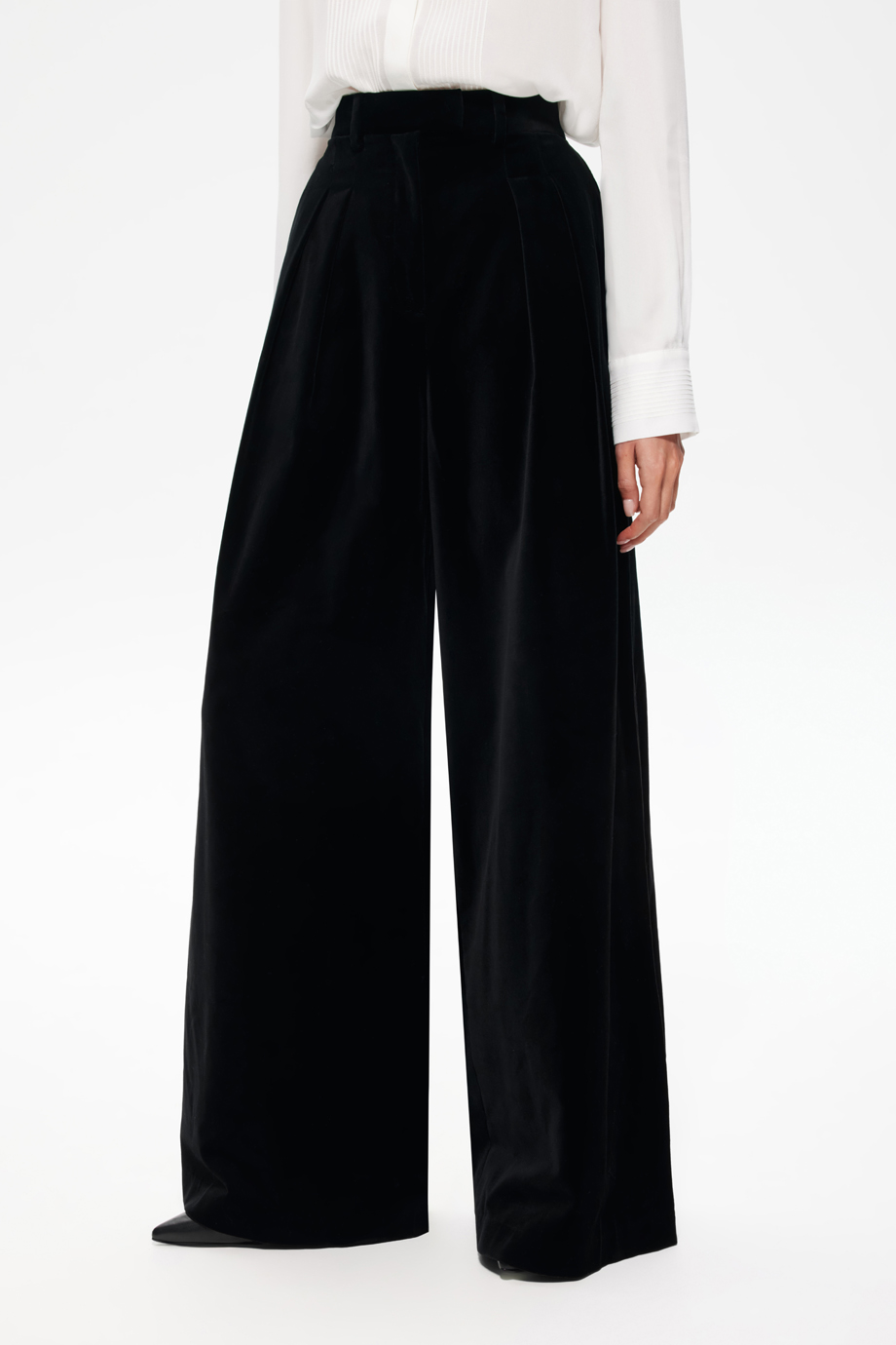 Изысканный элемент гардероба, который станет отличным дополнением к образу в стиле кэжуал или более элегантному наряду. Они выполнены из качественного бархата, который придаёт ткани роскошный и богатый вид. Брюки имеют свободный крой, обеспечивающий комфорт и удобство при носке.