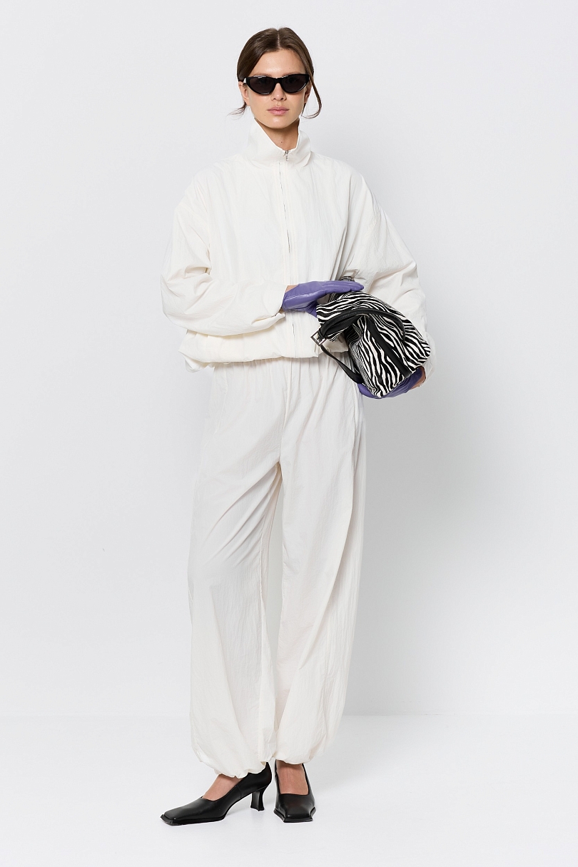 Брюки из облегчённой ткани на кулиске — стильное и практичное решение в спортивном стиле. Выполненные из лёгкого материала, что обеспечивает комфорт в течение всего дня. Свободный крой и регулируемая талия на кулиске гарантируют удобную посадку.