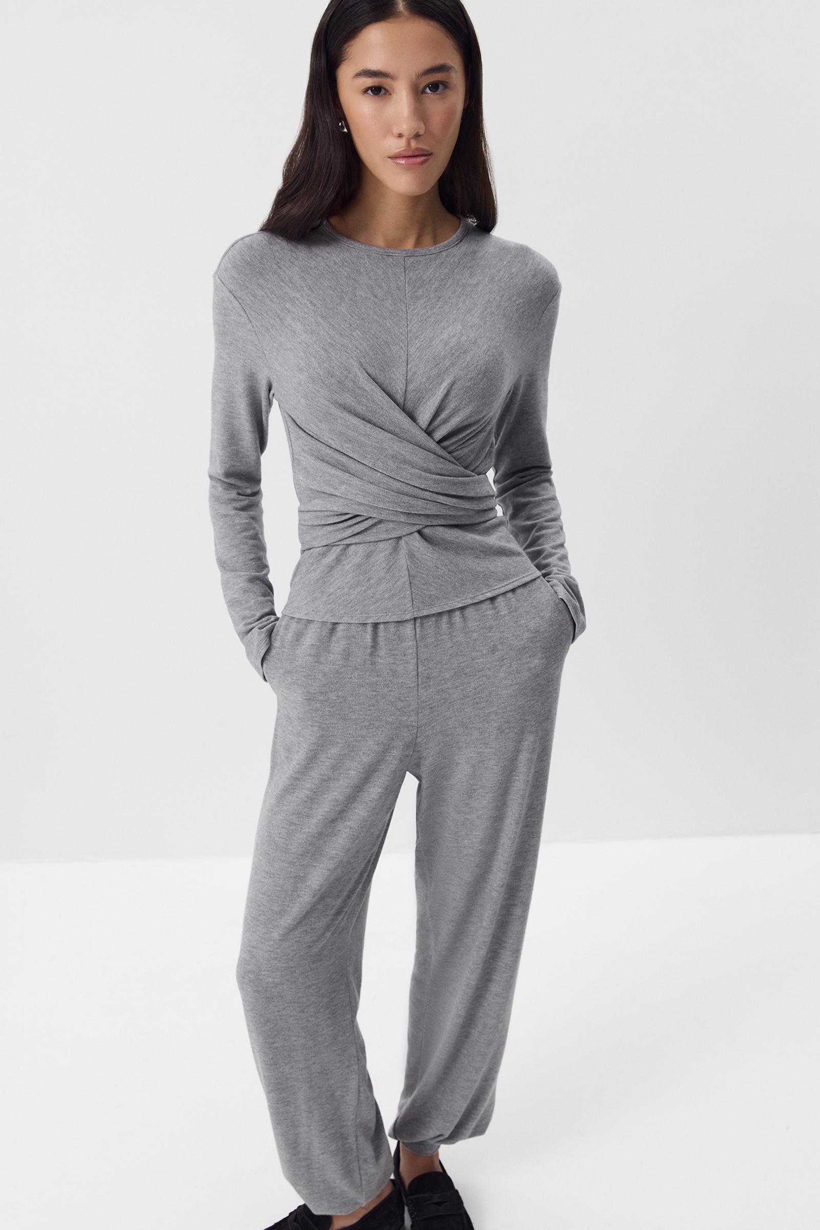 Сочетайте с лонгсливом и кардиганом из аналогичной ткани. Носите брюки в комплекте с топом как костюм или как самостоятельную модель со спортивными толстовками. Трикотажные брюки отлично сочетаются с свитером и джемпером, такая универсальная комбинация один из самых комфортных луков сезона.