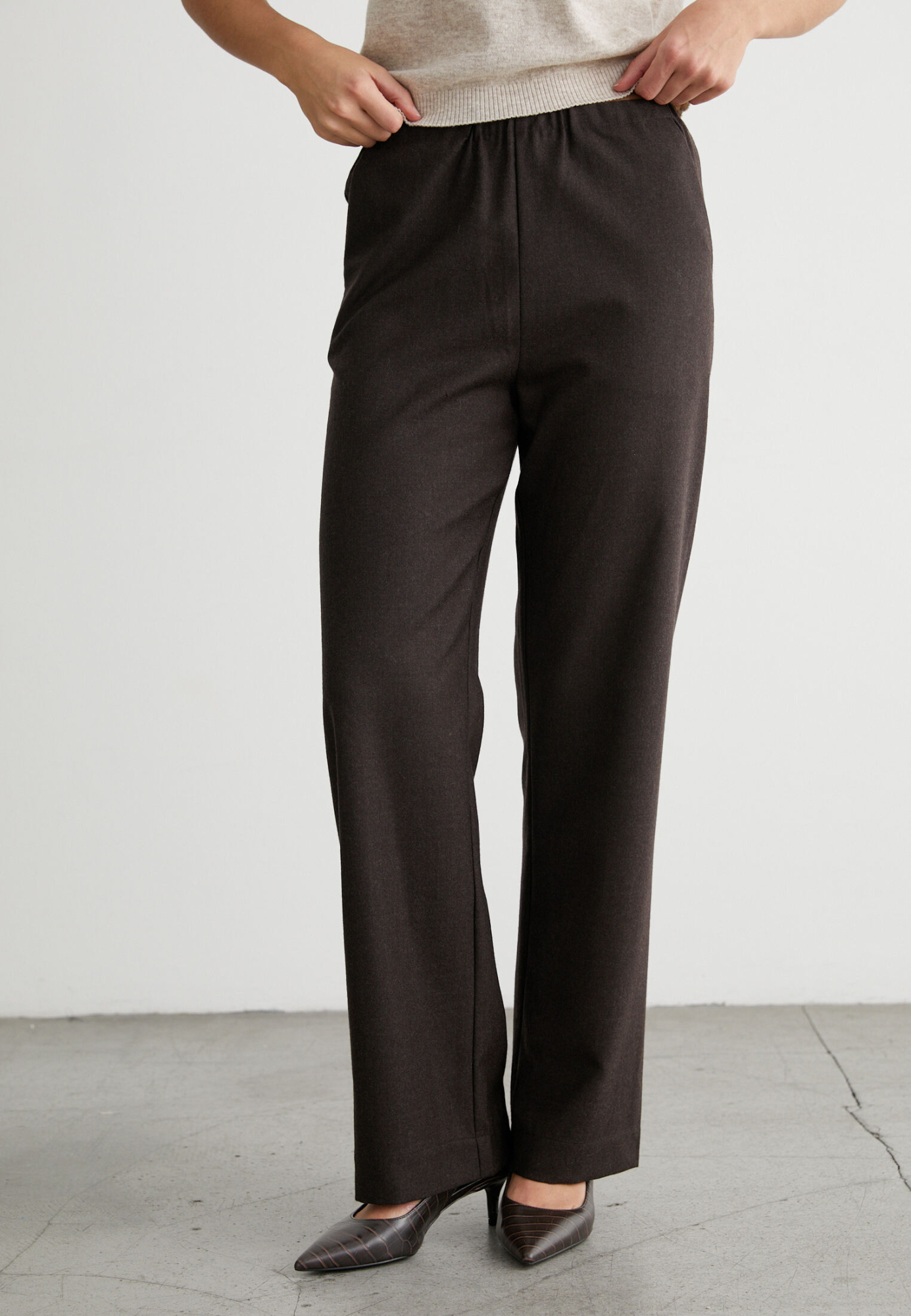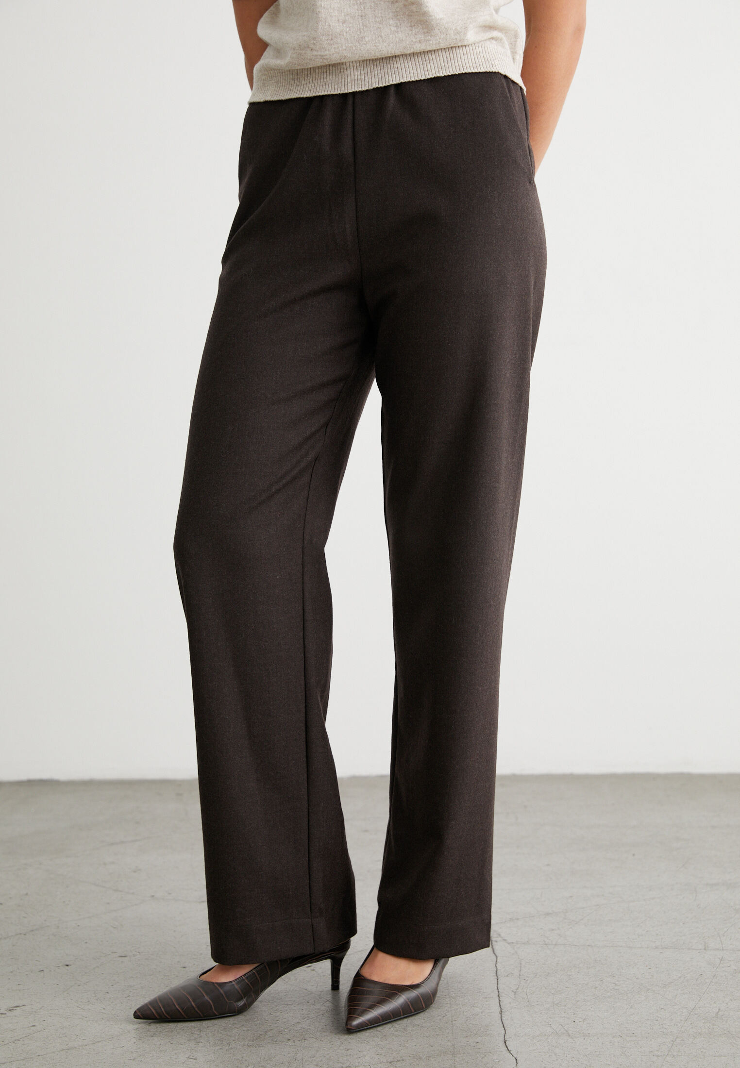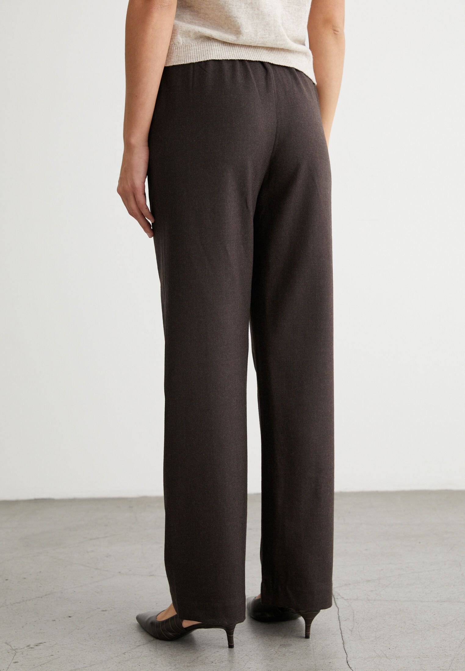 Идеальный выбор для холодного времени года. Прямой крой обеспечивает свободу движений и стильный силуэт, а резинка на талии гарантирует комфорт и удобство. Шерсть высокого качества гарантирует долговечность и сохранение тепла. Эти брюки прекрасно подойдут для создания элегантных и тёплых образов. Они станут незаменимой частью вашего гардероба и помогут выразить ваш индивидуальный стиль.