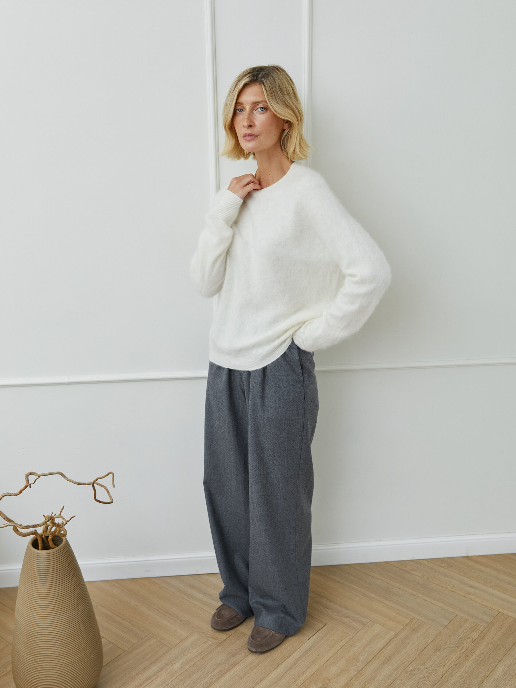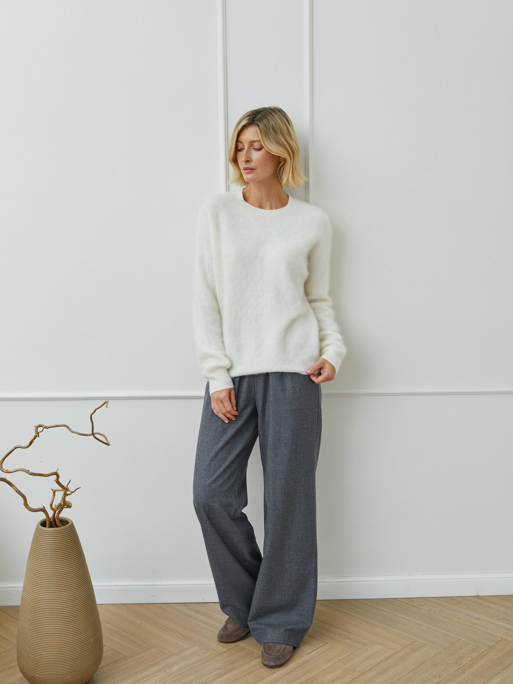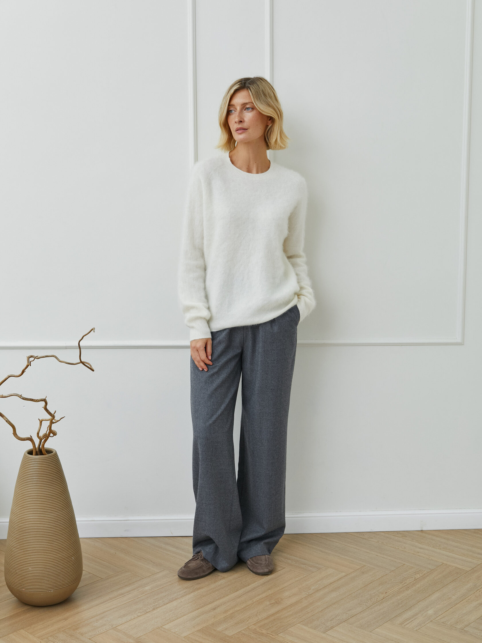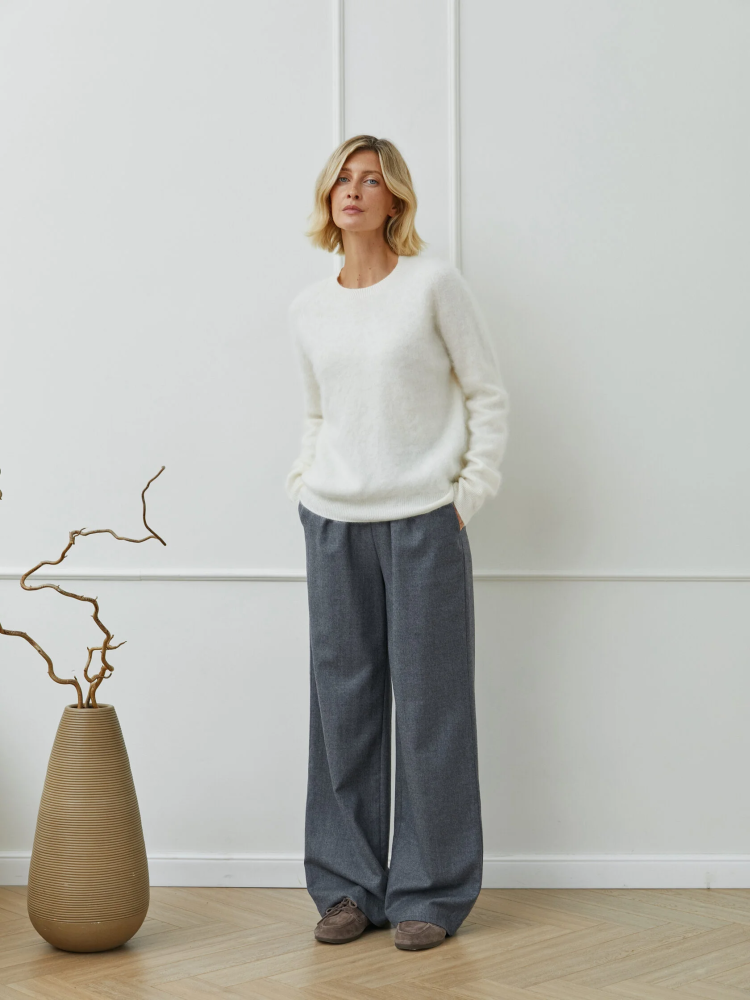 Идеальный выбор для создания уютного и стильного образа в холодное время года. Изготовленные из 100% шерсти, они обеспечивают тепло и комфорт, сохраняя при этом элегантность и модный вид. Эти брюки станут отличным дополнением к вашему гардеробу, позволяя создавать разнообразные образы — от повседневных до более элегантных.