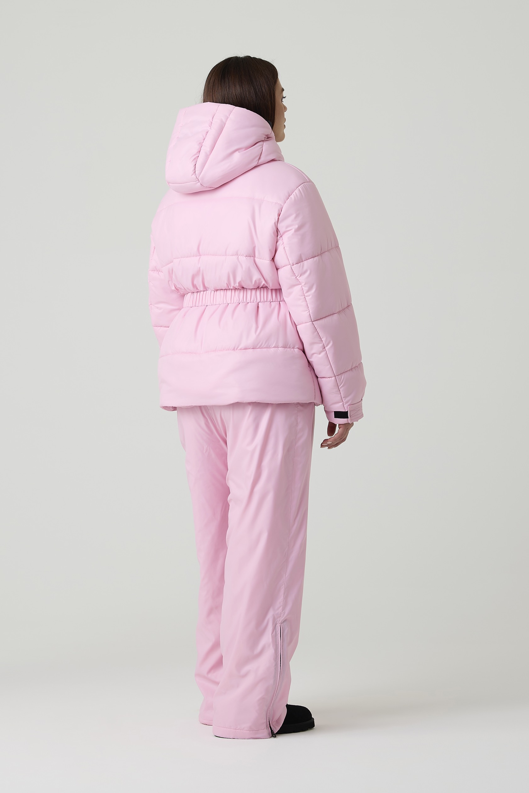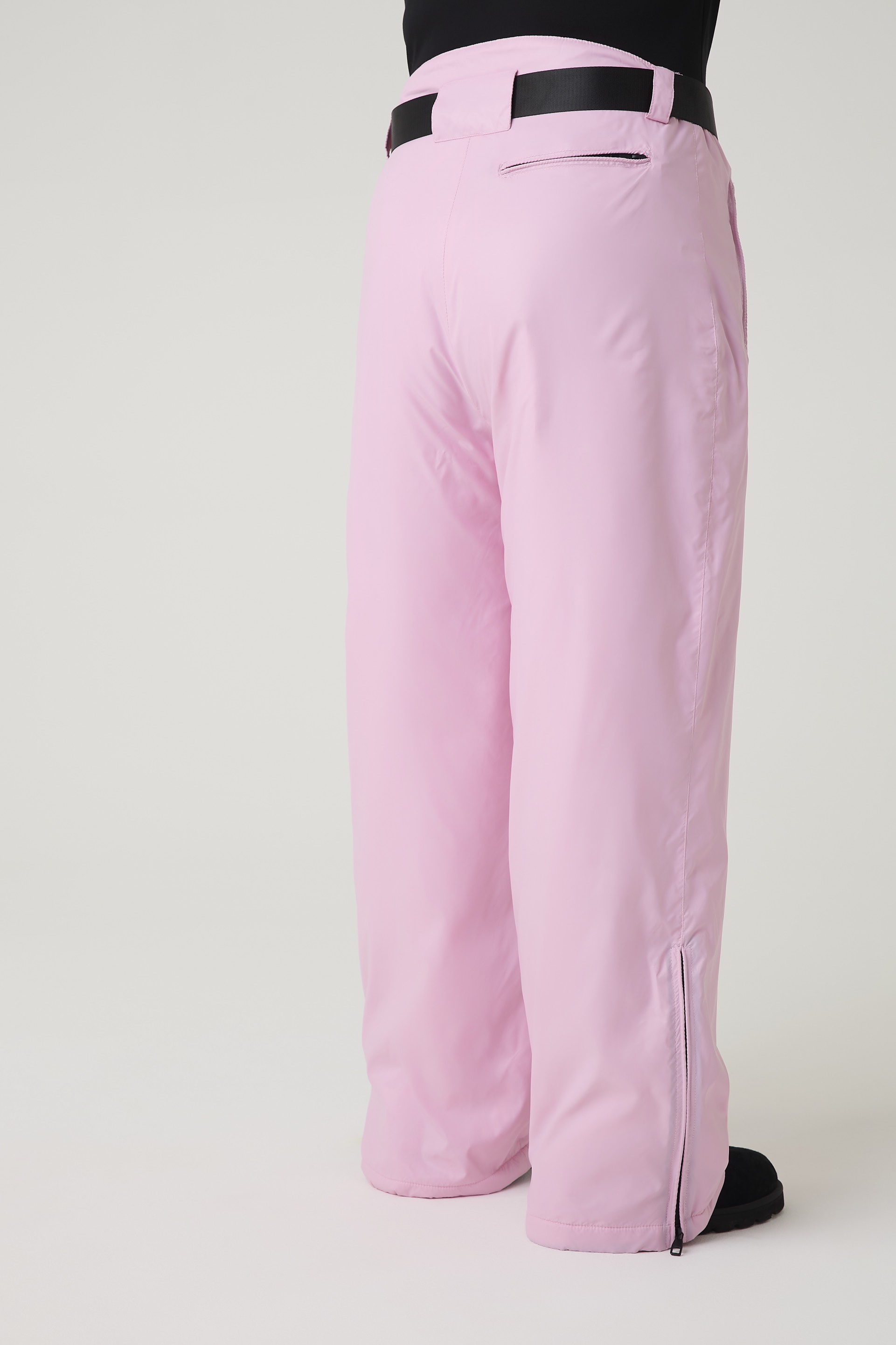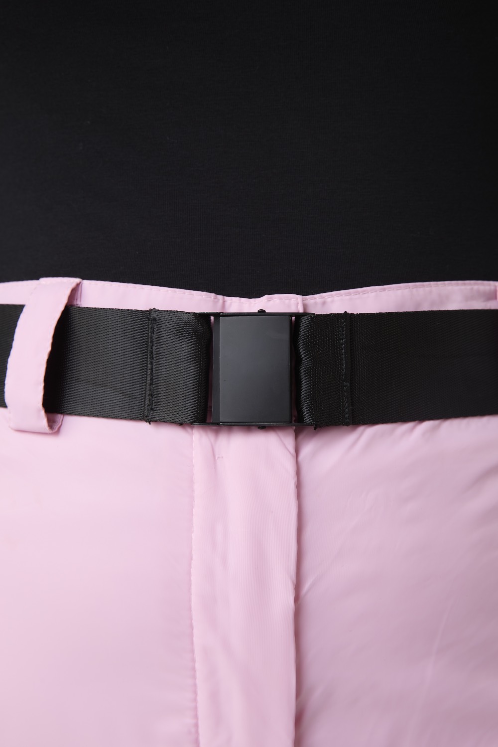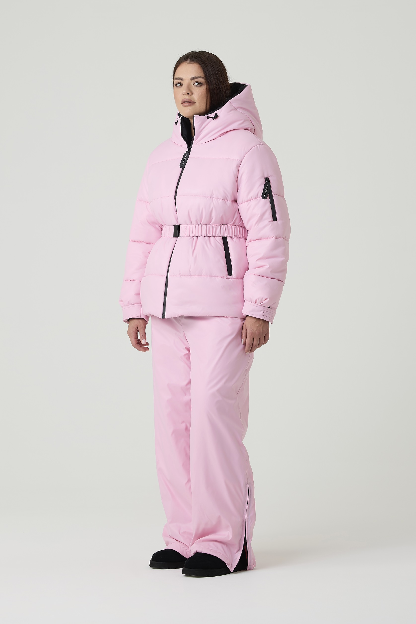 Женские утеплённые брюки свободного силуэта светло-розового цвета . Модель имеет эластичный пояс с резинкой для комфортной посадки. Брюки оснащены двумя боковыми врезными карманами на молниях.