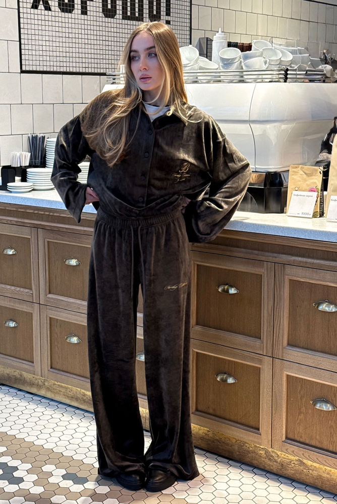 Брюки широкие из велюра BROWN