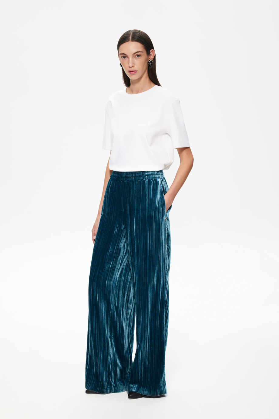 Свободный крой обеспечивает удобство и позволяет избежать скованности движений. Мягкая бархатистая ткань приятна на ощупь и добавляет изысканности. Резинка на талии гарантирует комфортную посадку.