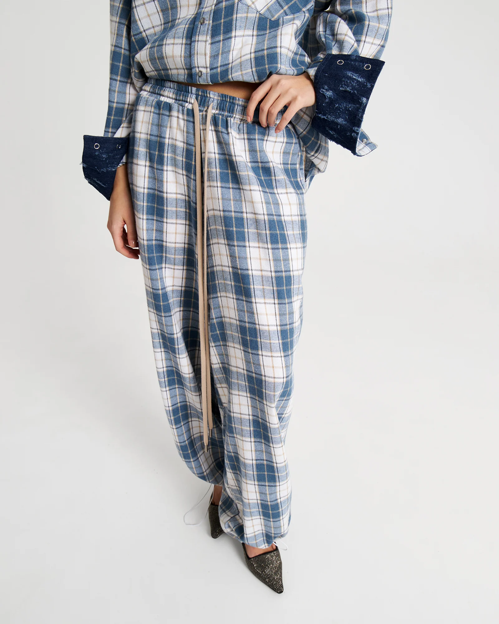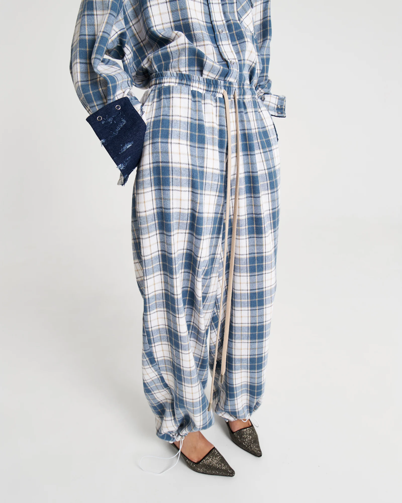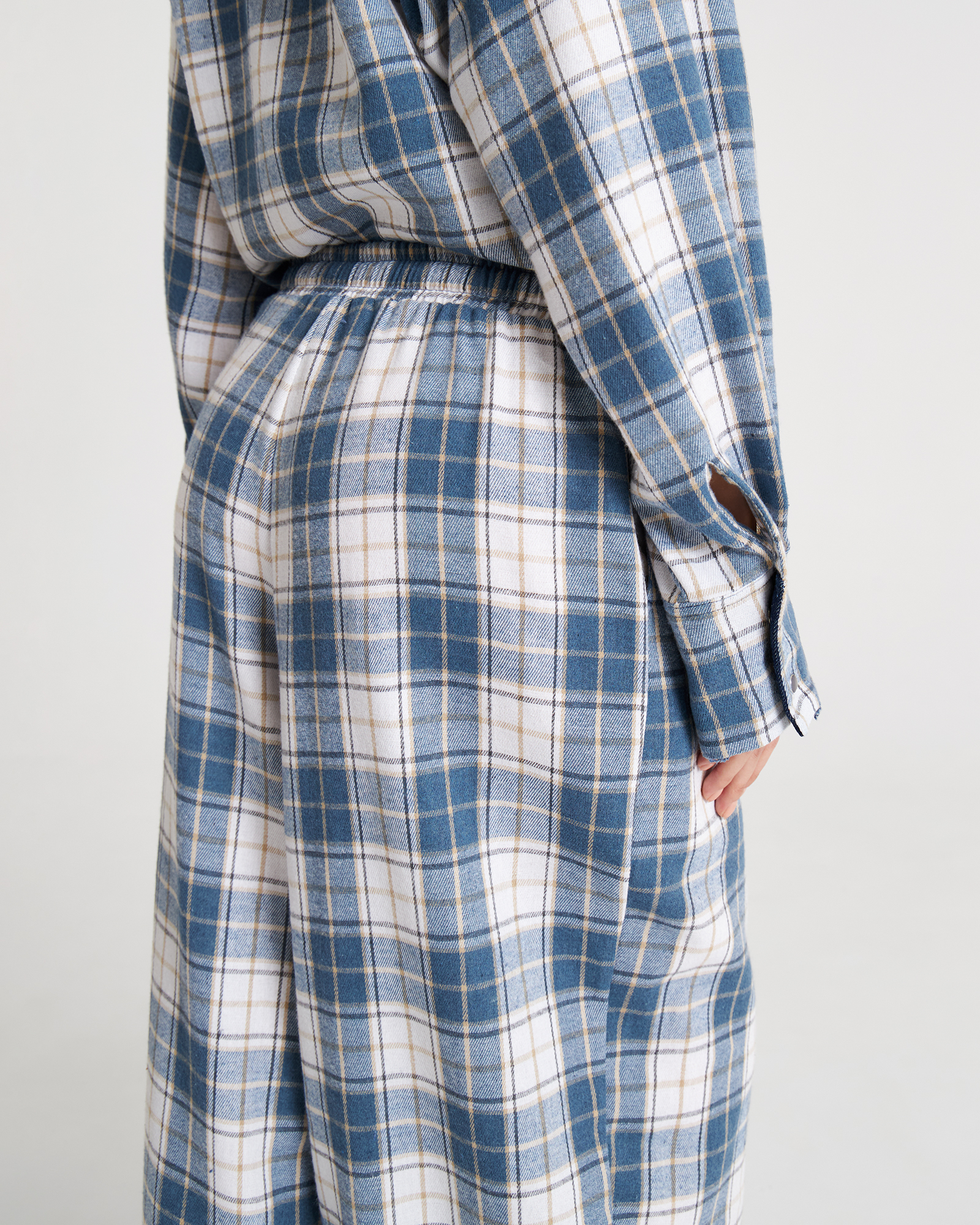 Брюки из фланели с поясом-резинкой и длинным шнурком очевидно станут незаменимым элементом твоего гардероба. Длину брюк можно регулировать – для этого низ брючин обработан резинкой со стоппером.