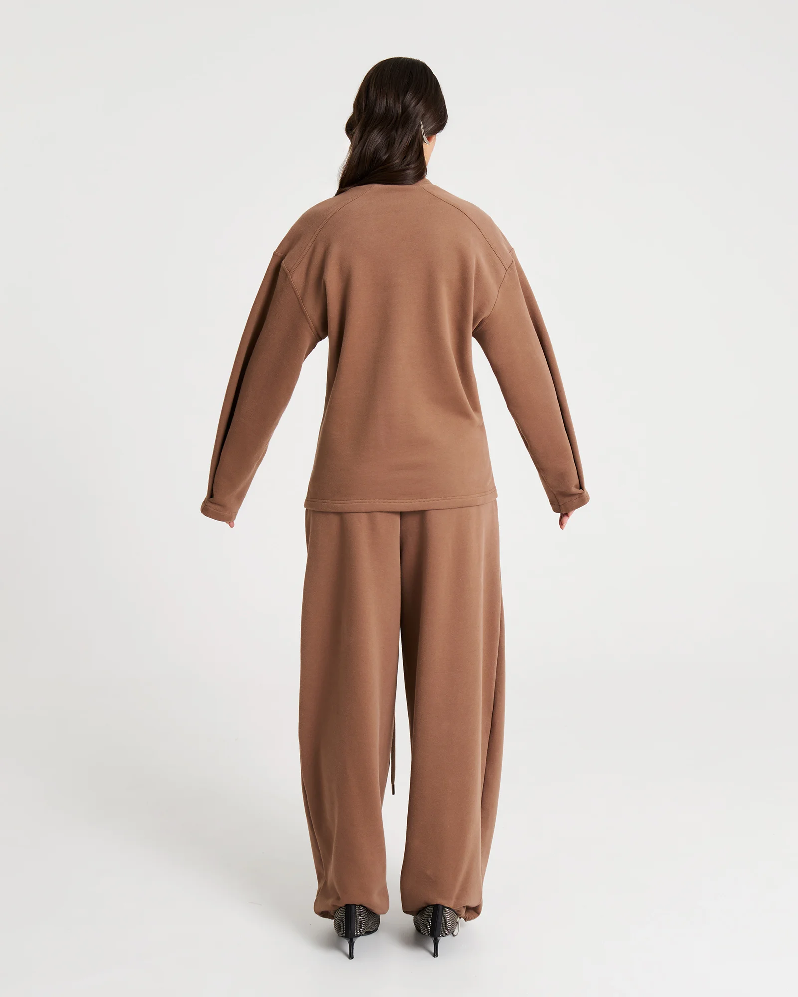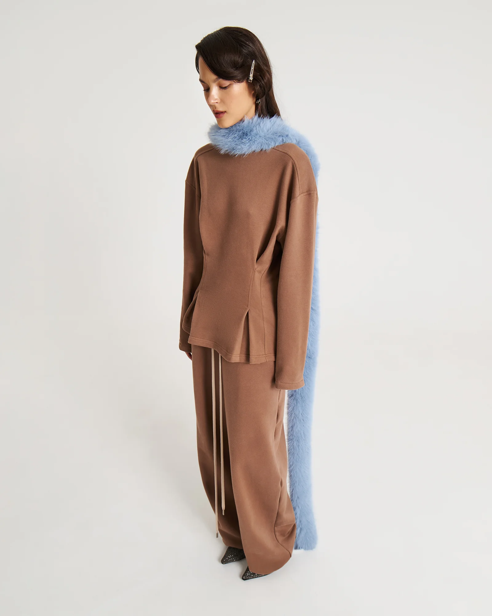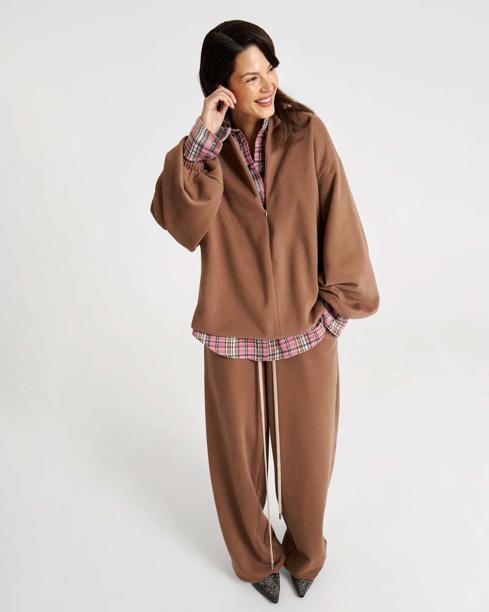 Брюки с эффектом велюра — это стильная и комфортная модель для создания модных образов. Нейтральный коричневый цвет позволяет сочетать их с различными элементами гардероба. Брюки идеально подойдут для повседневного ношения, добавляя образу элегантность и уют.