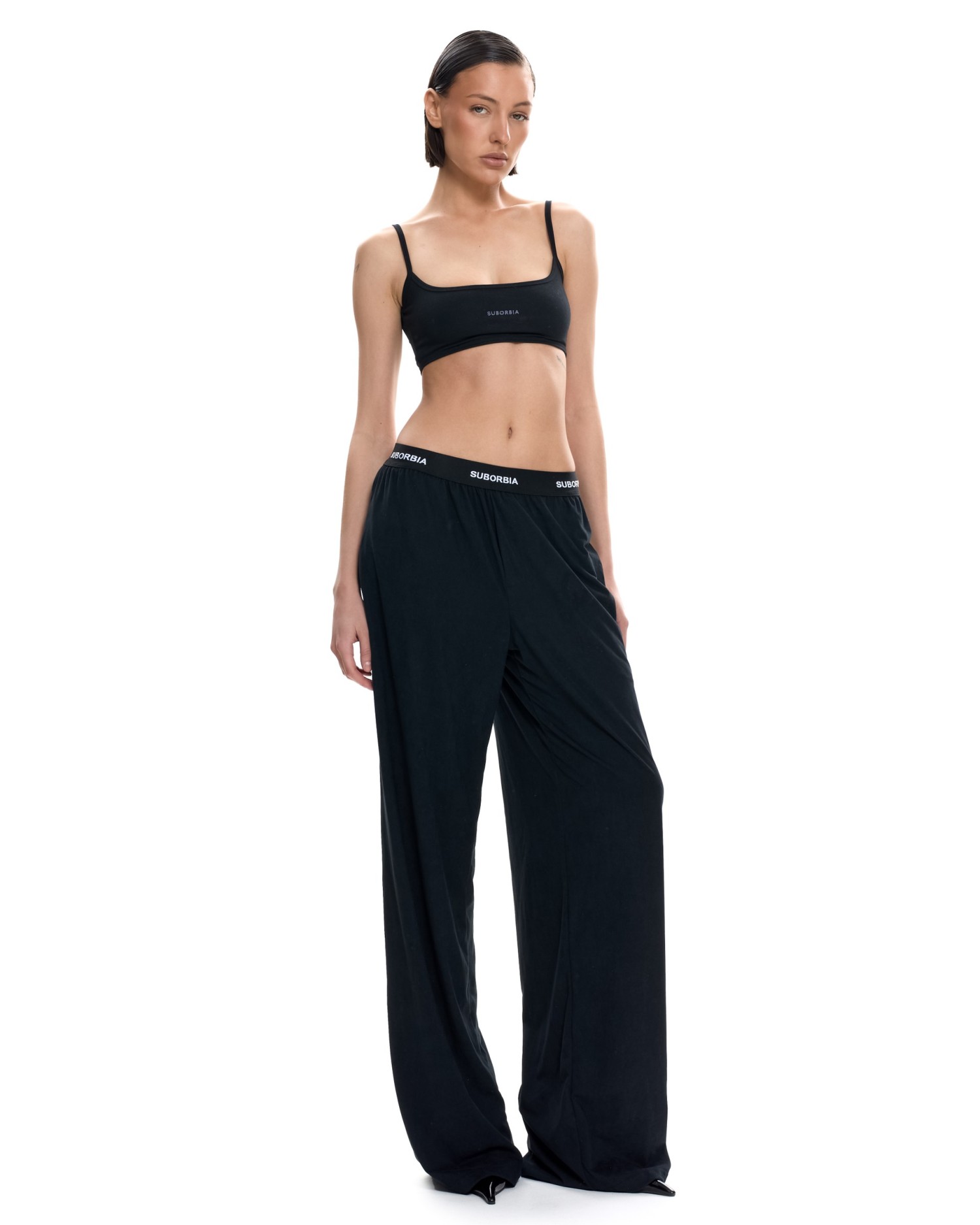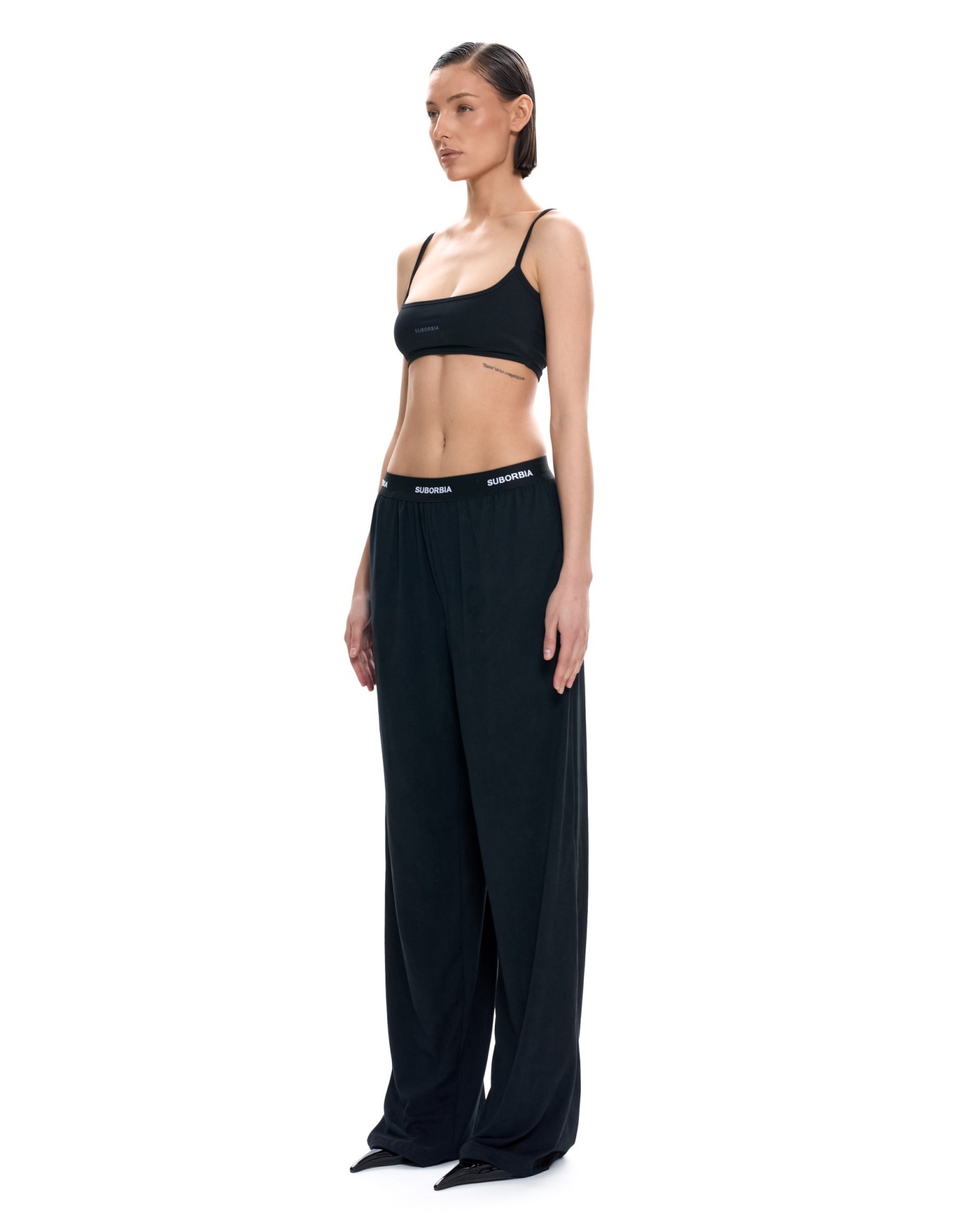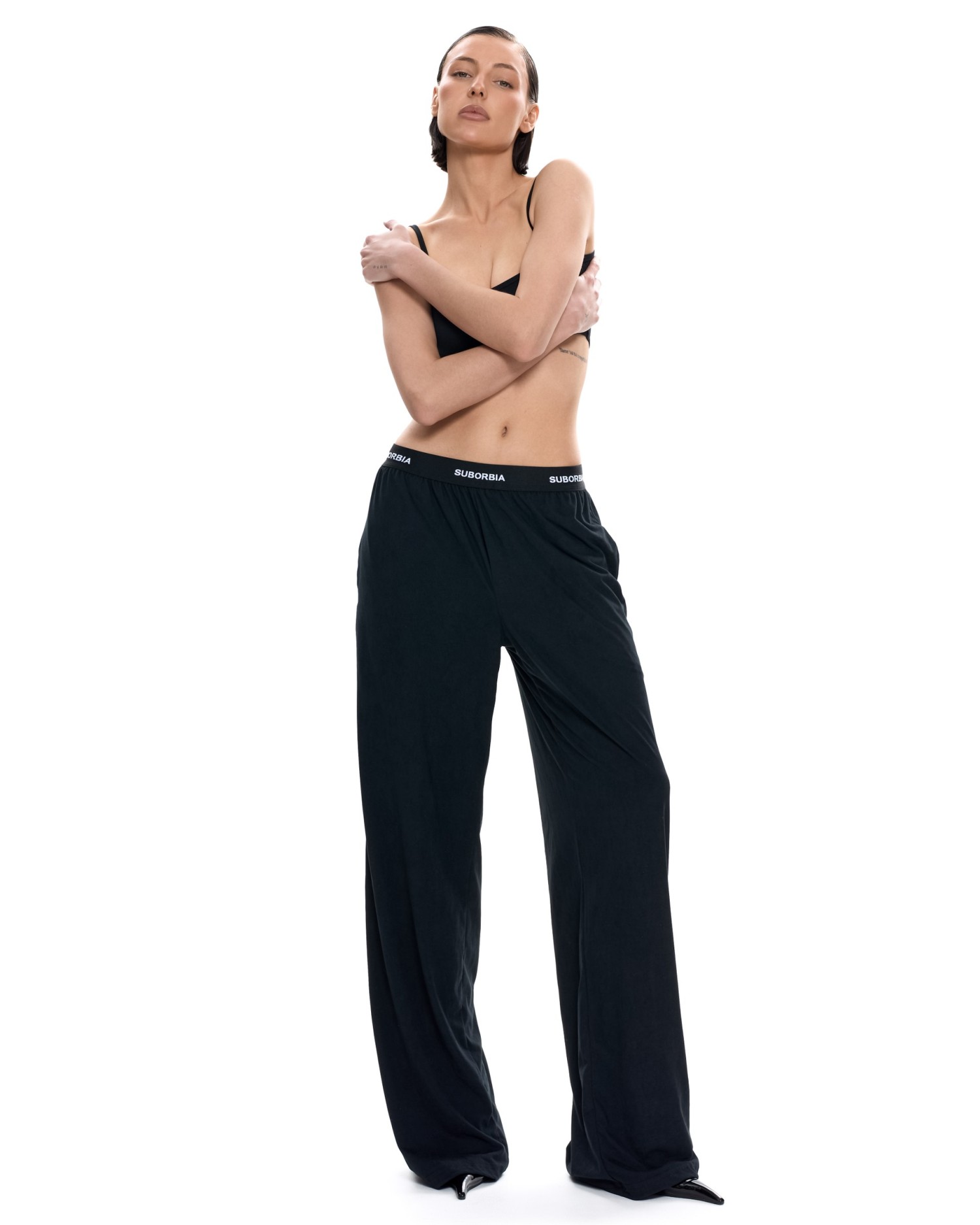 Брюки свободного кроя. Брендированная резинка на талии. Высокая посадка.