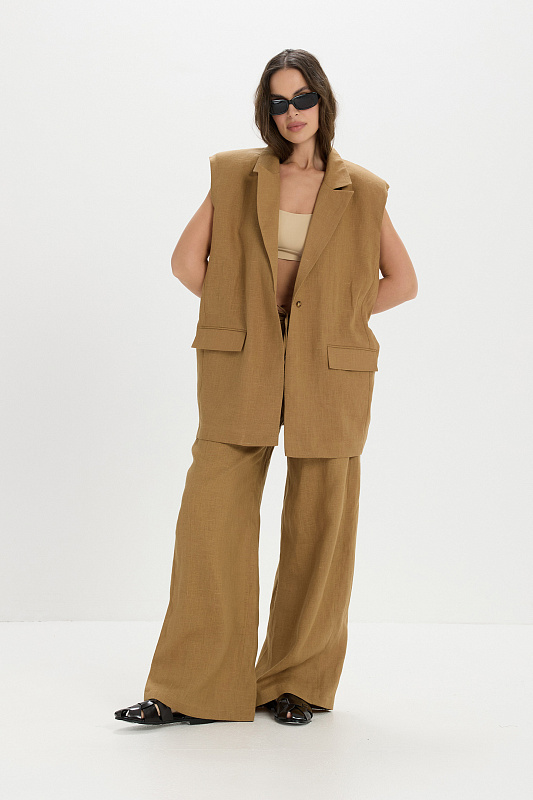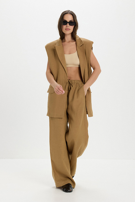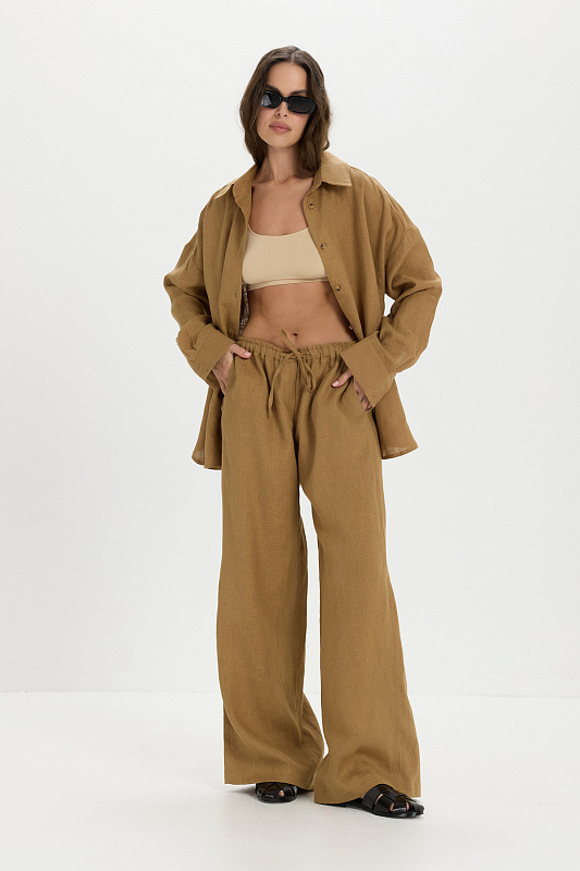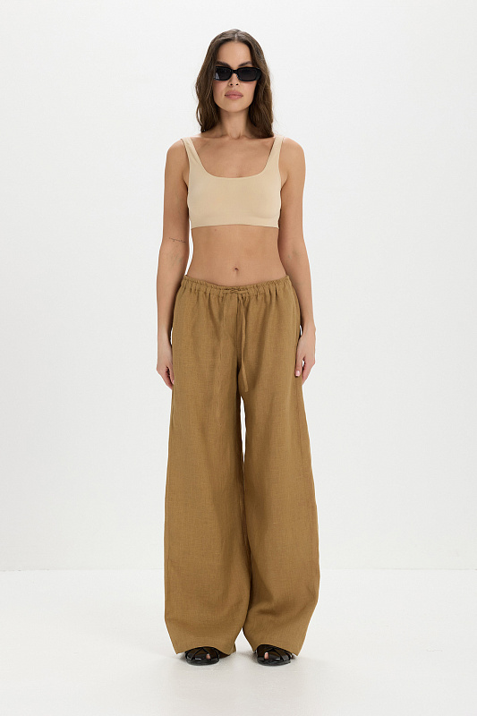 - Брюки-палаццо выполнены из премиального умягченного 100% льна