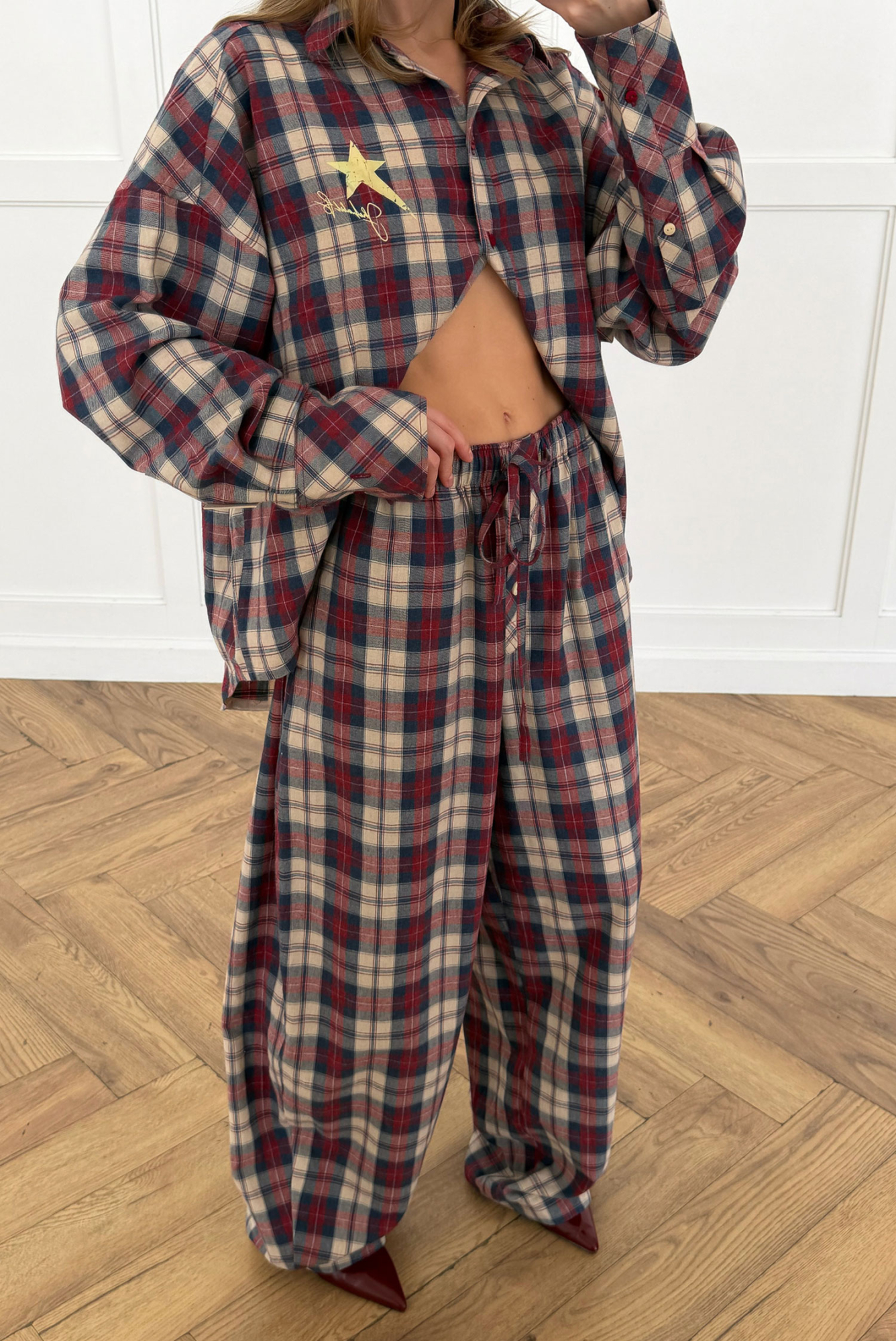 Брюки «бананы» в клетку