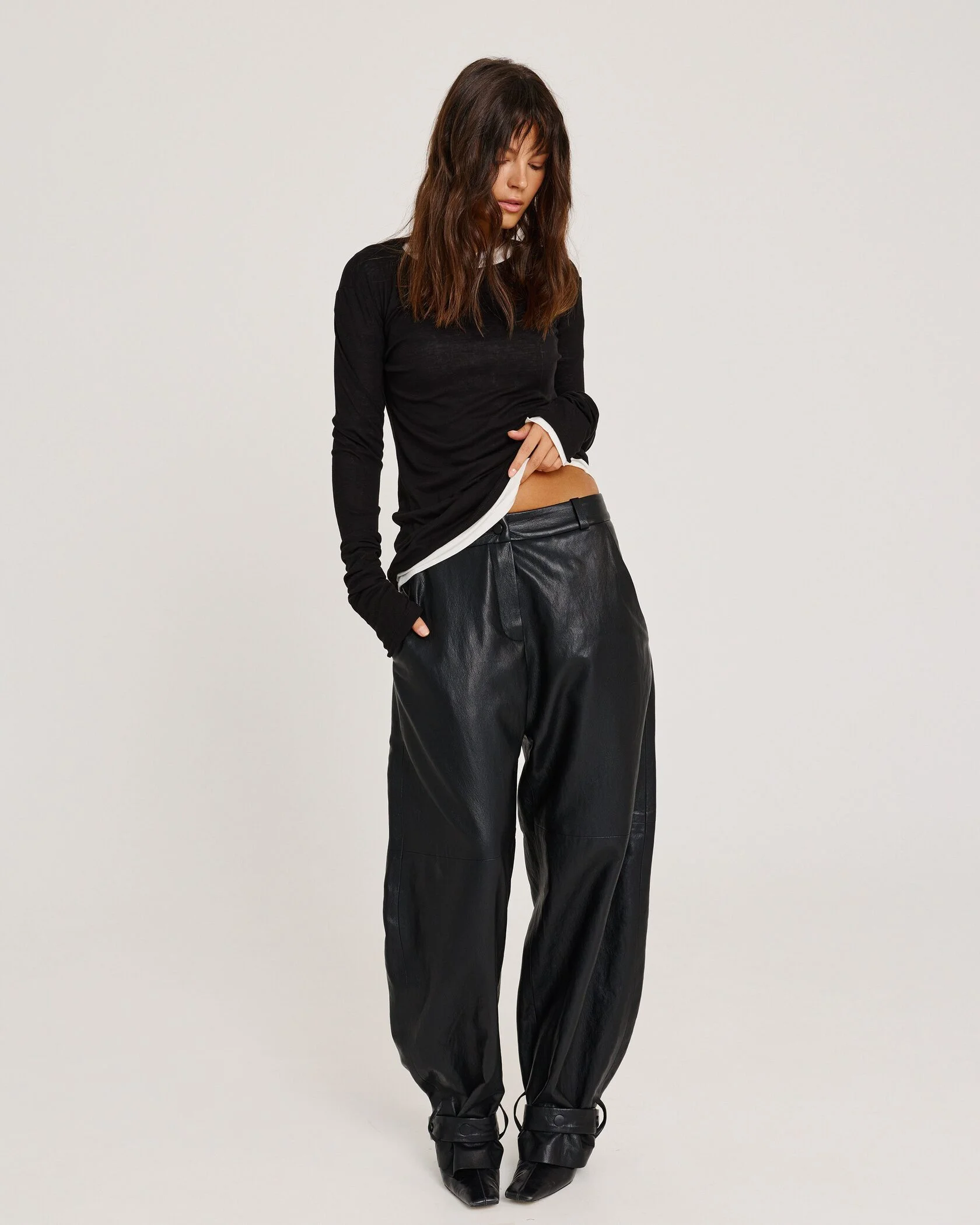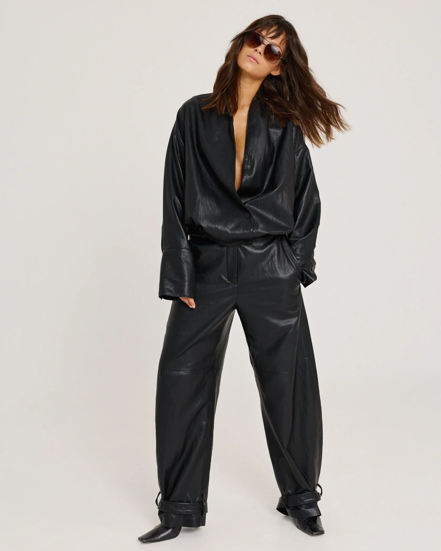 Эти брюки автоматически попадают в ваш вишлист – ведь это база для самых стильных аутфитов. Отдельного внимания заслуживают мини-ремни на каждой брючине – помощники, которые позволяют легко менять силуэт и ширину.