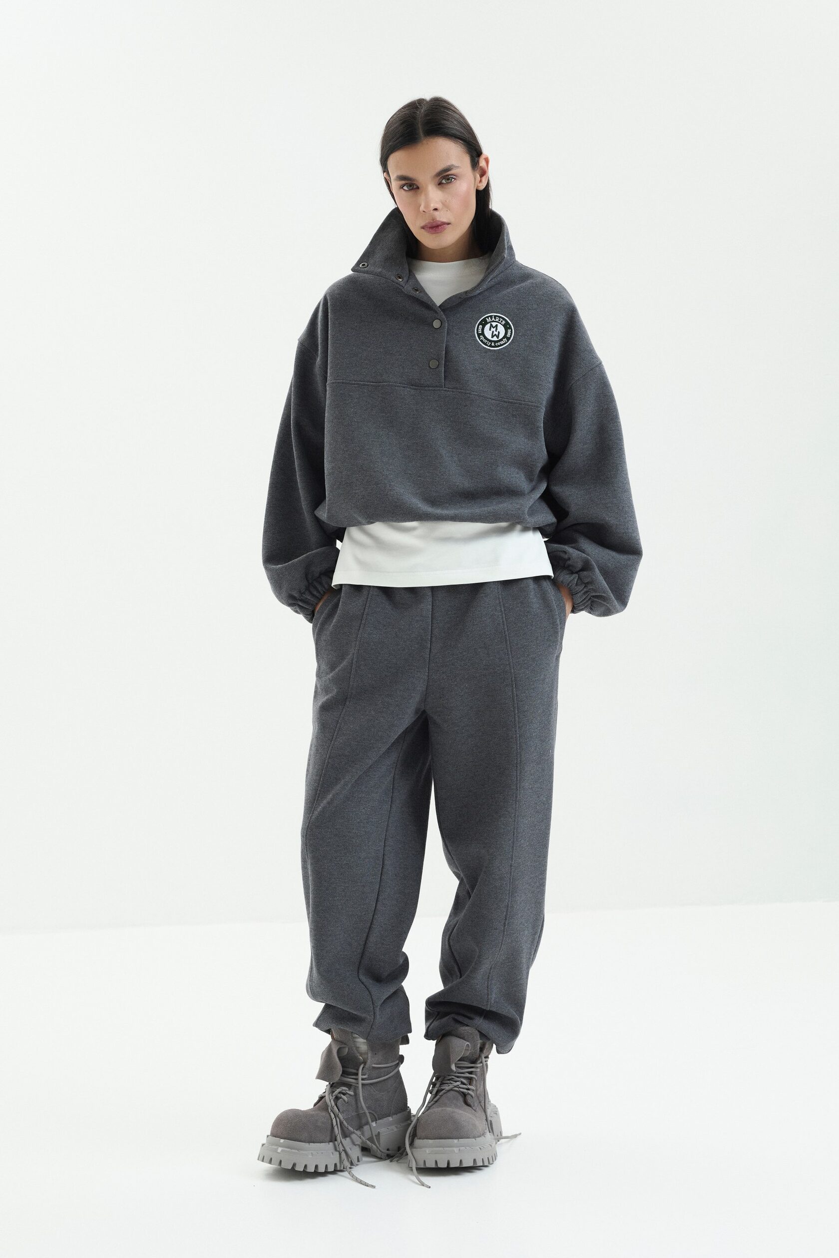 Брюки PACE из мягкого футера с начесом — теплые и универсальные, в цвете серый меланж. Идеальную посадку обеспечивают эластичная резинка на талии со шнурком внутри и свободный, комфортный крой.