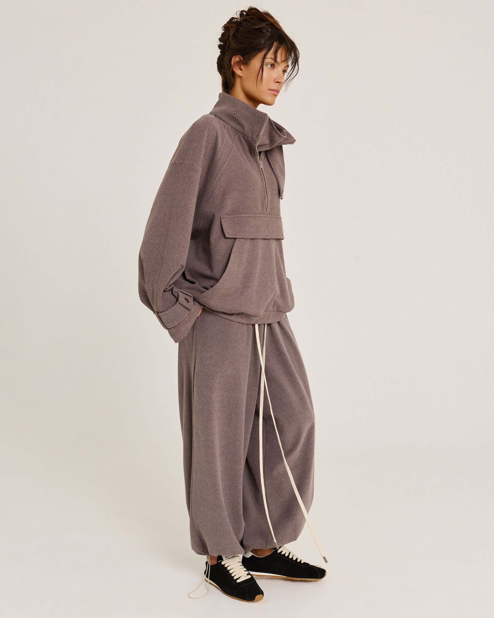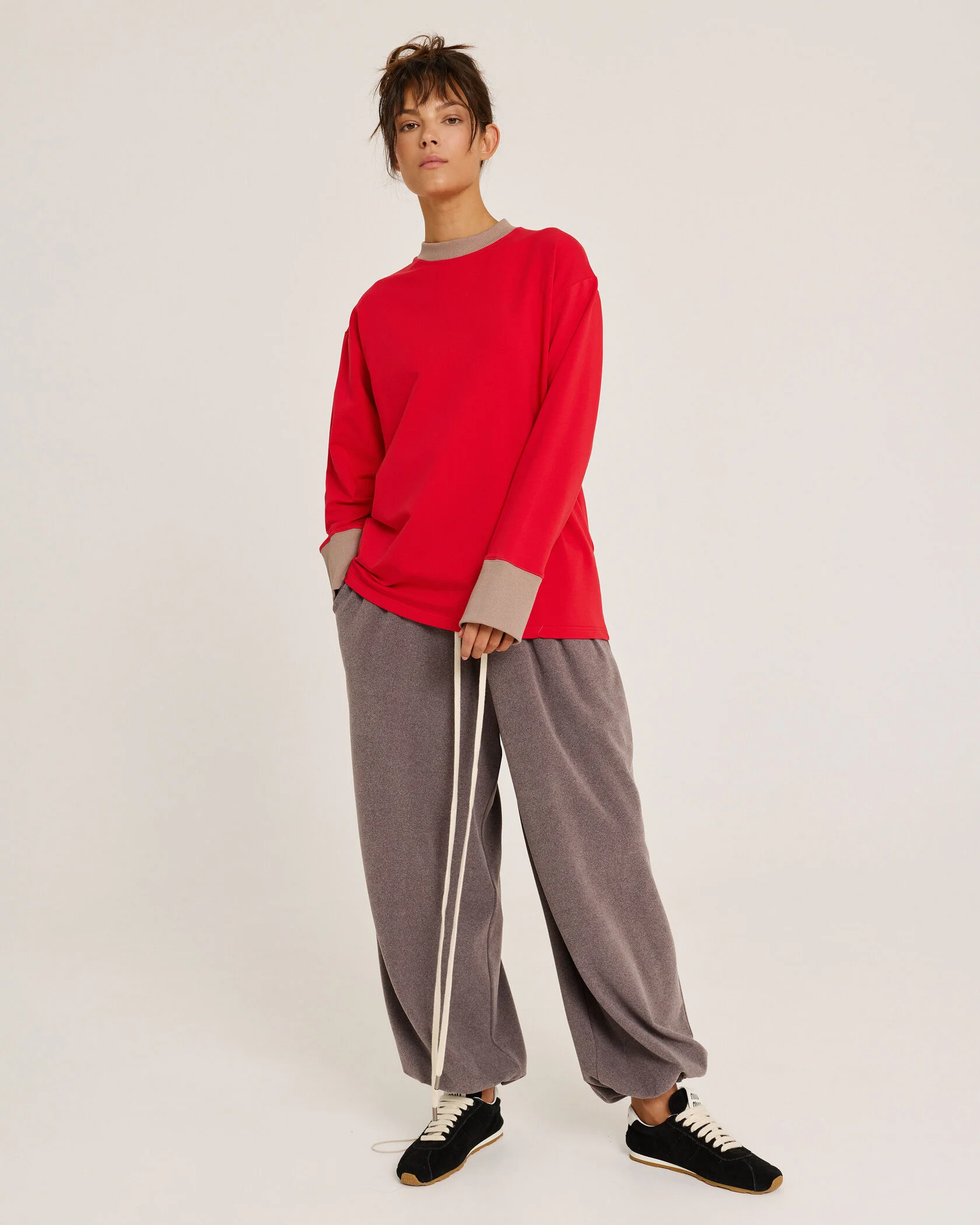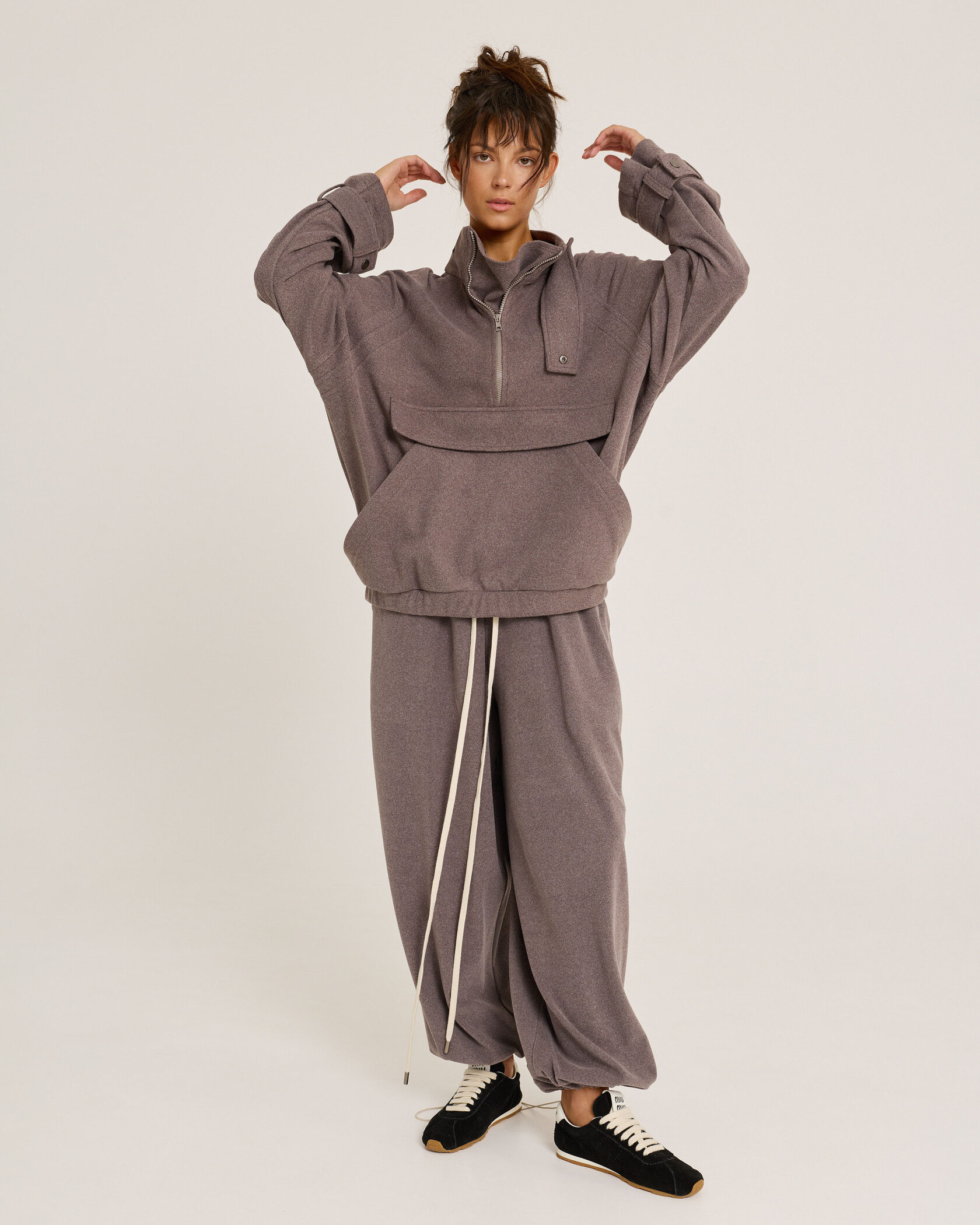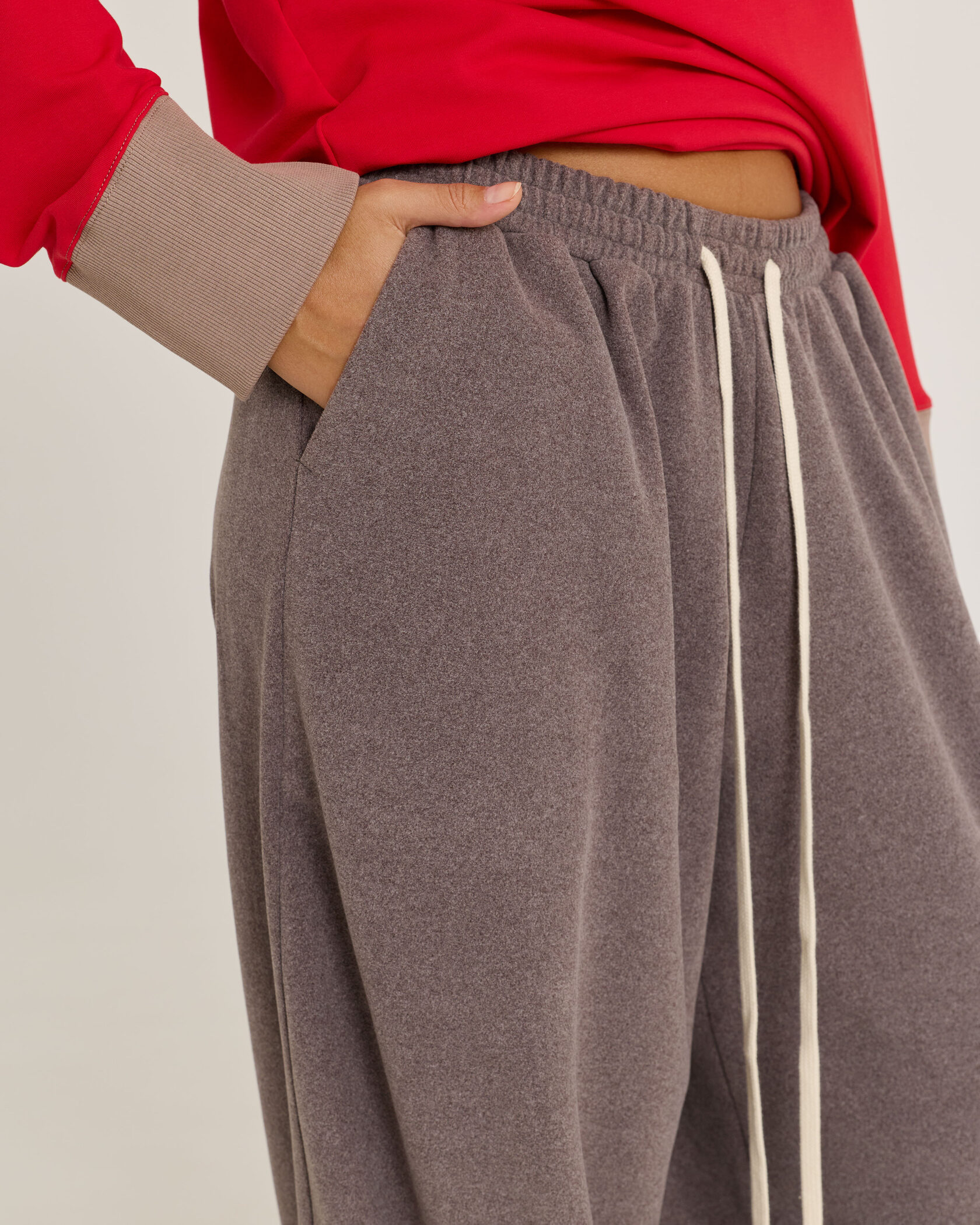 Брюки из самого приятного материала на Земле, поясом-резинкой и длинным шнурком очевидно станут незаменимым элементом твоего гардероба. Длину брюк можно регулировать – для этого низ брючин обработан резинкой со стоппером.
