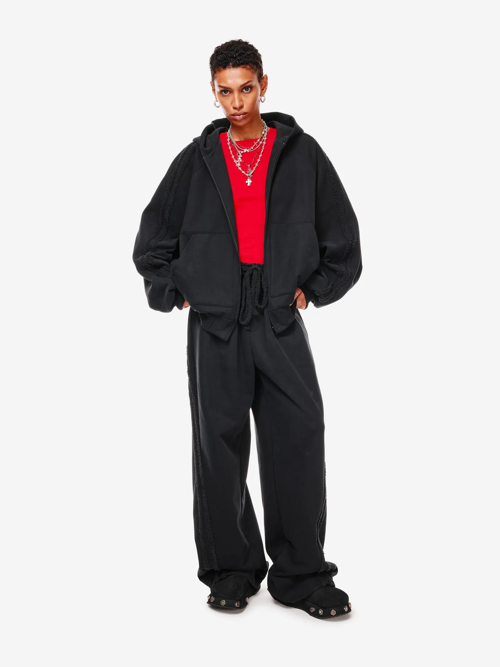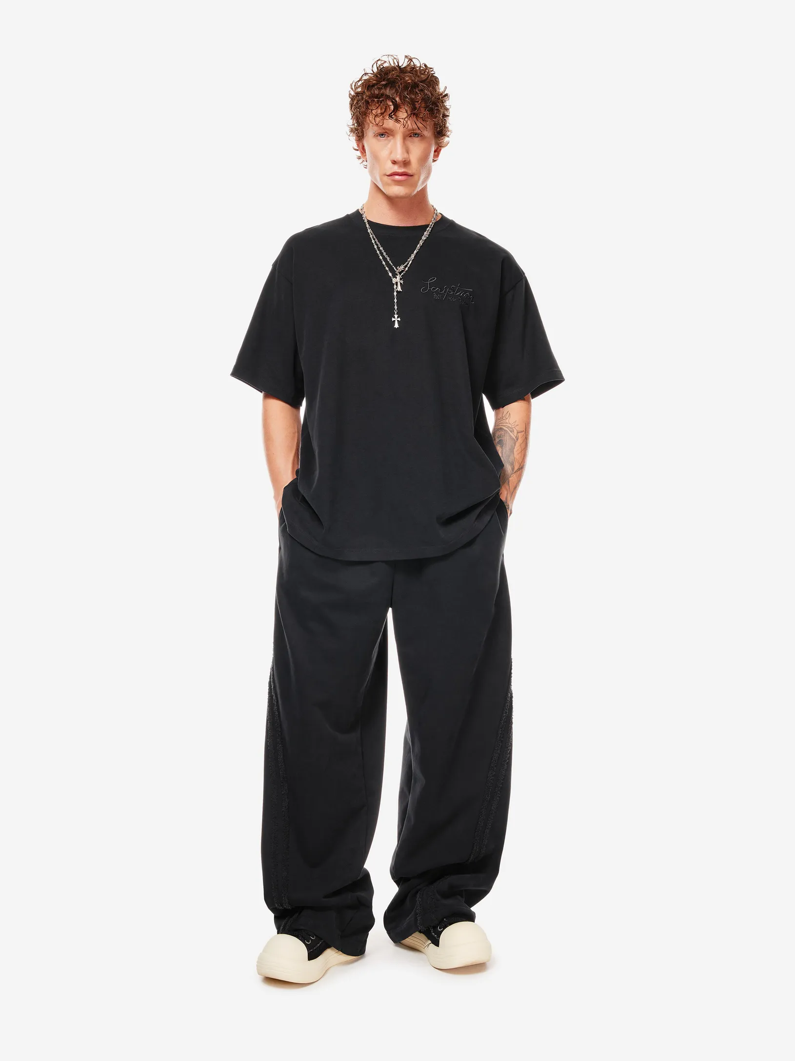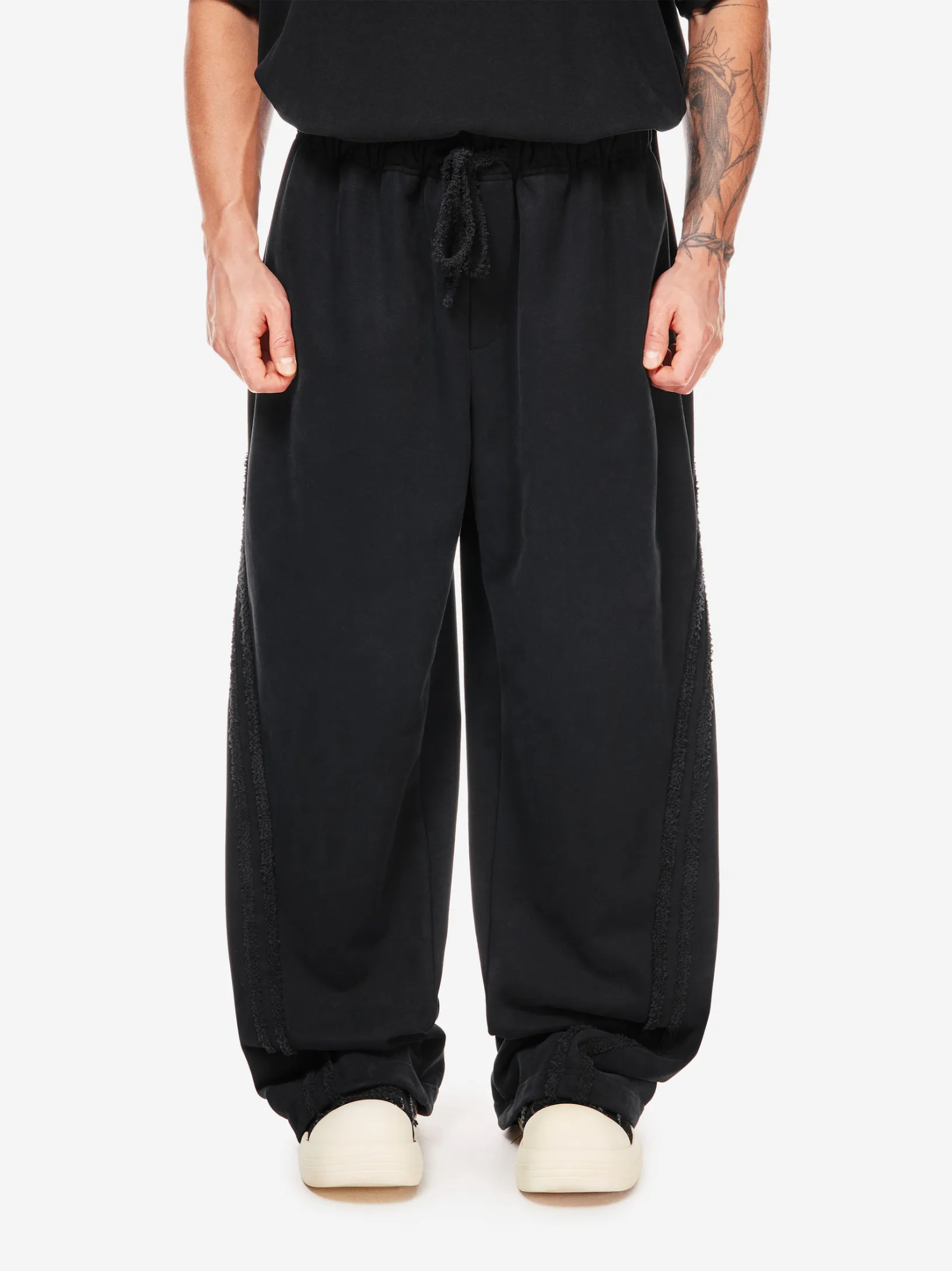 Стильный и удобный элемент гардероба, который подойдёт как для повседневного образа, так и для более смелых и выразительных комплектов. Брюки отличаются свободным кроем, который обеспечивает комфорт и свободу движений. Текстурные лампасы добавляют модели оригинальности и динамики, делая ваш образ запоминающимся.