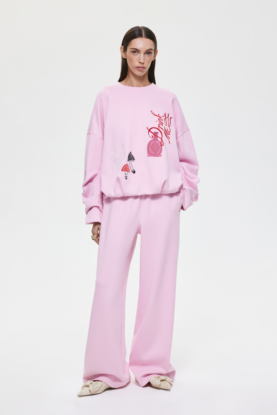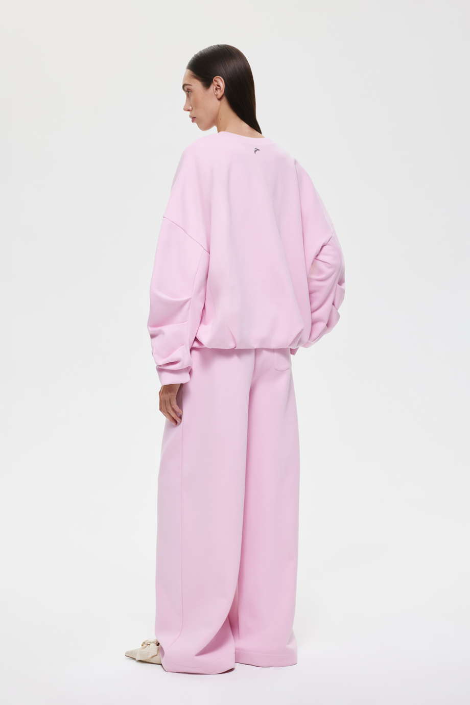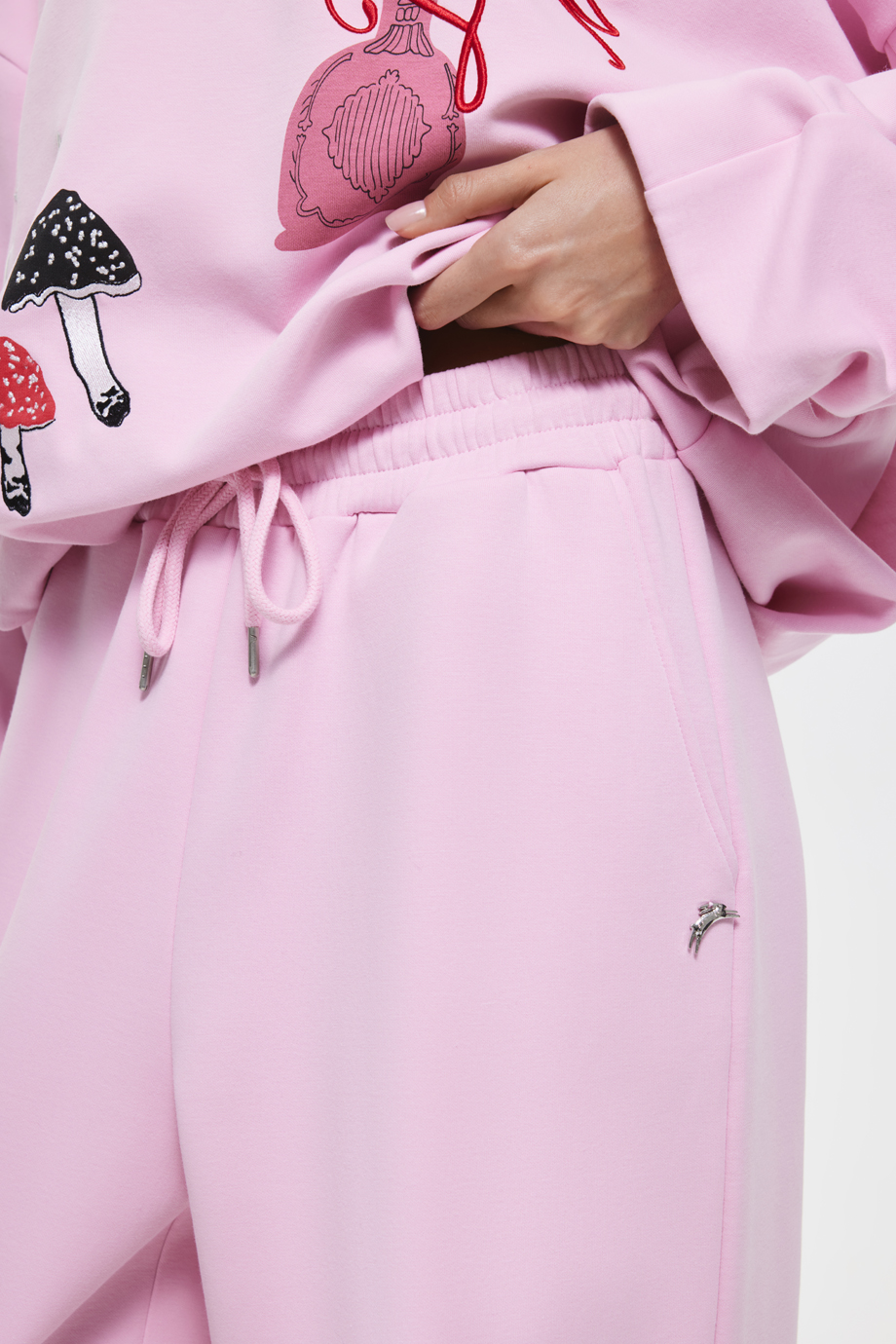 Спортивные брюки в нежном розовом оттенке с аккуратным поясом и завязками, подчеркивающими талию. Практичные карманы спереди делают их еще удобнее. Брюки идеально подходят как для активных тренировок, так и для уютных повседневных образов. Выполнены из качественных материалов с хлопком, что обеспечивает мягкость, тепло и прочность. Прекрасный выбор, чтобы разнообразить ваш базовый гардероб и создать стильные, комфортные сочетания.