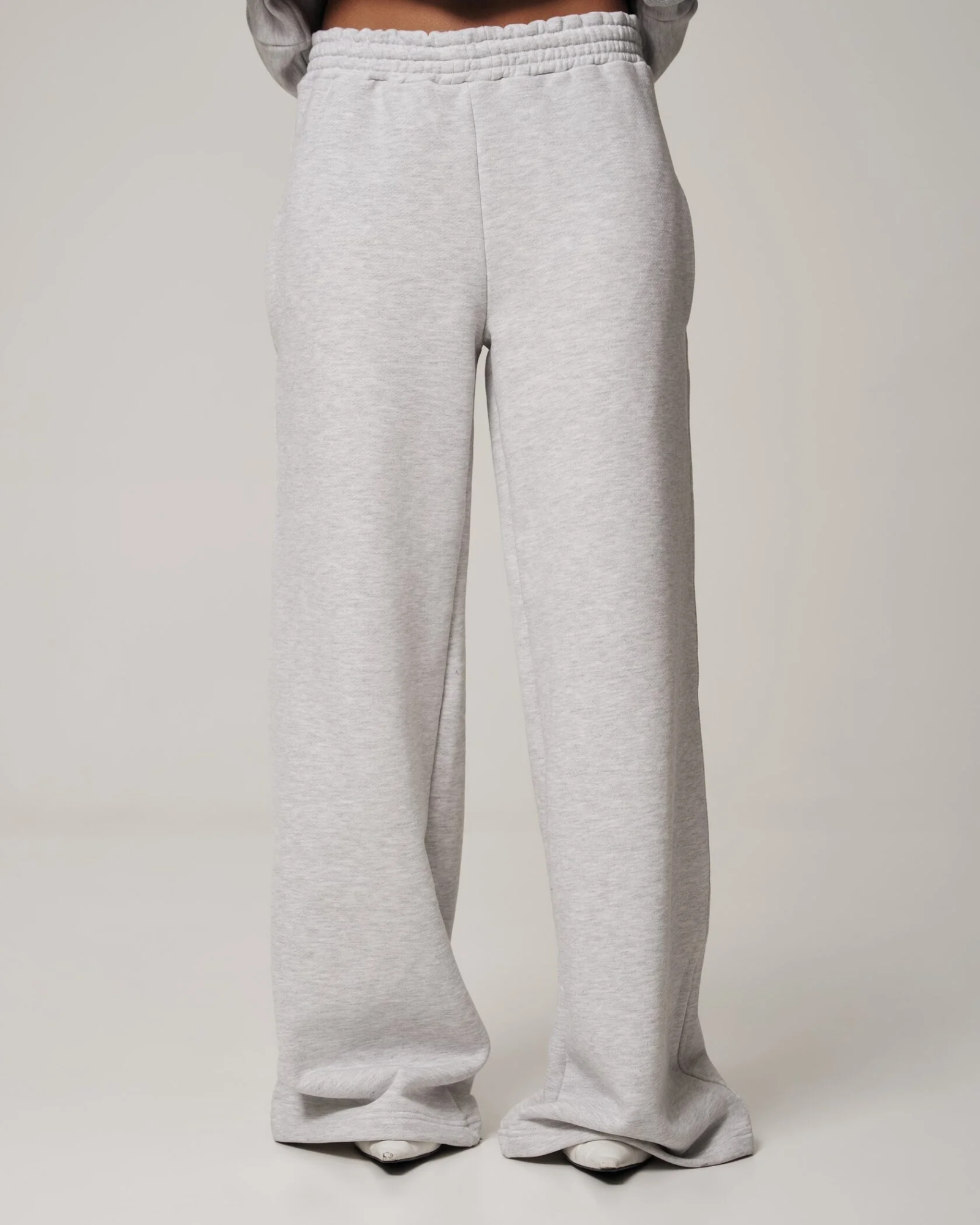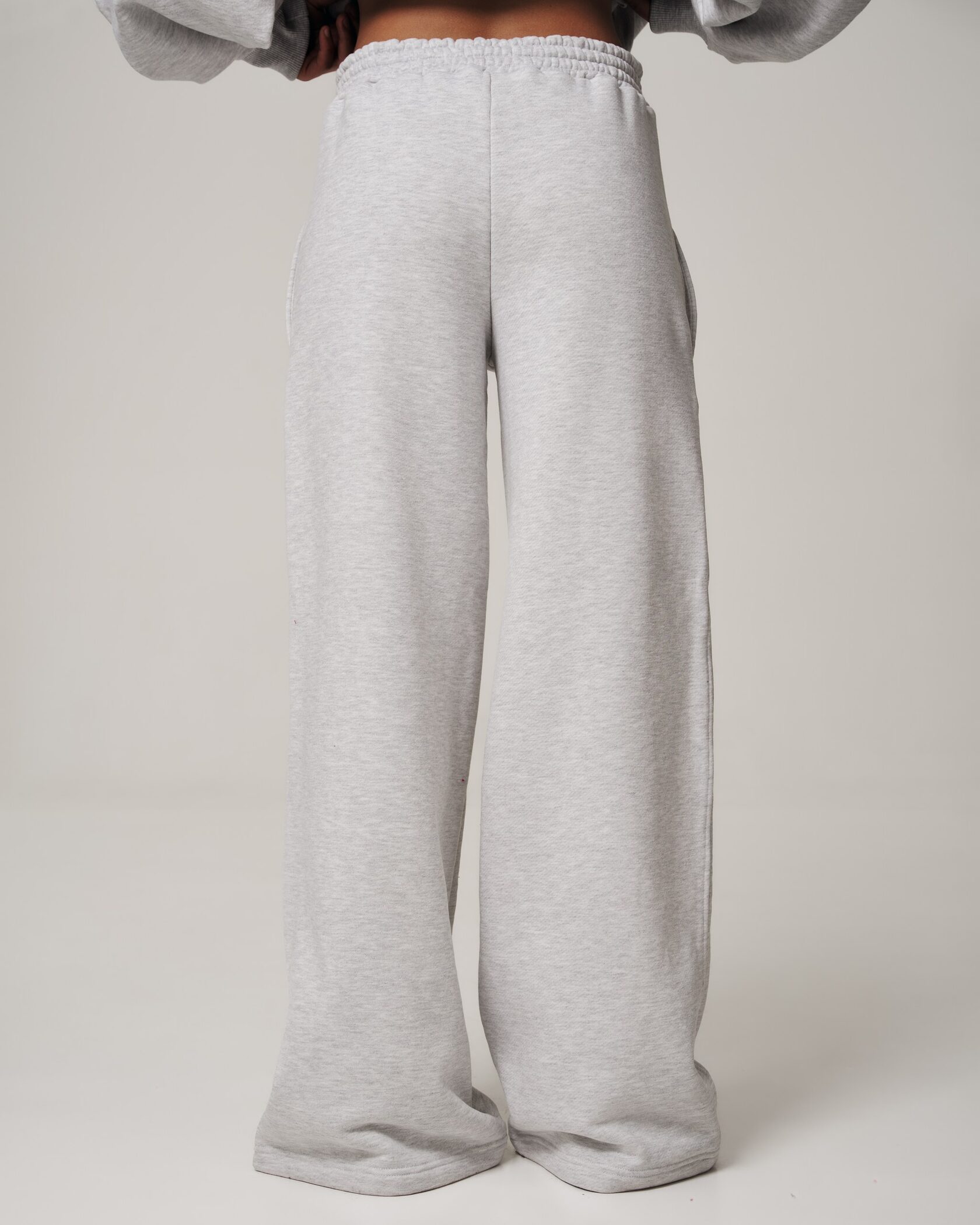 Элегантные палаццо в меланжевом сером оттенке — сочетание максимального комфорта и сдержанного городского стиля. Широкие ровные штанины и мягкий эластичный пояс делают модель универсальной и легко комбинируемой