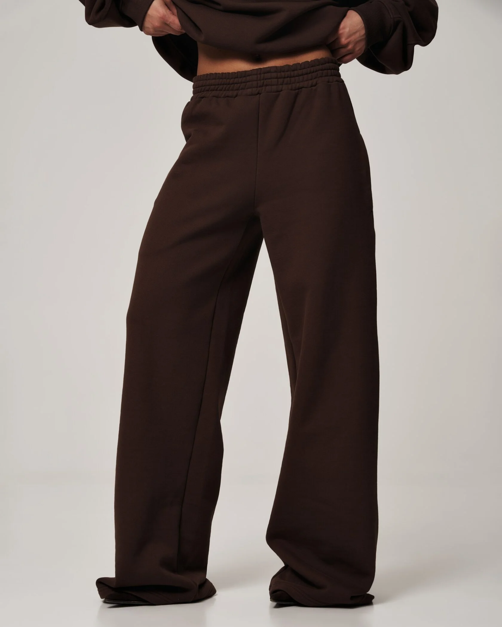 Палаццо YONS STUDIOS — длинные широкие брюки в насыщенном коричневом оттенке. Эластичный пояс, свободный классический силуэт и мягкая ткань — максимум комфорта и стильных сочетаний для города и дома