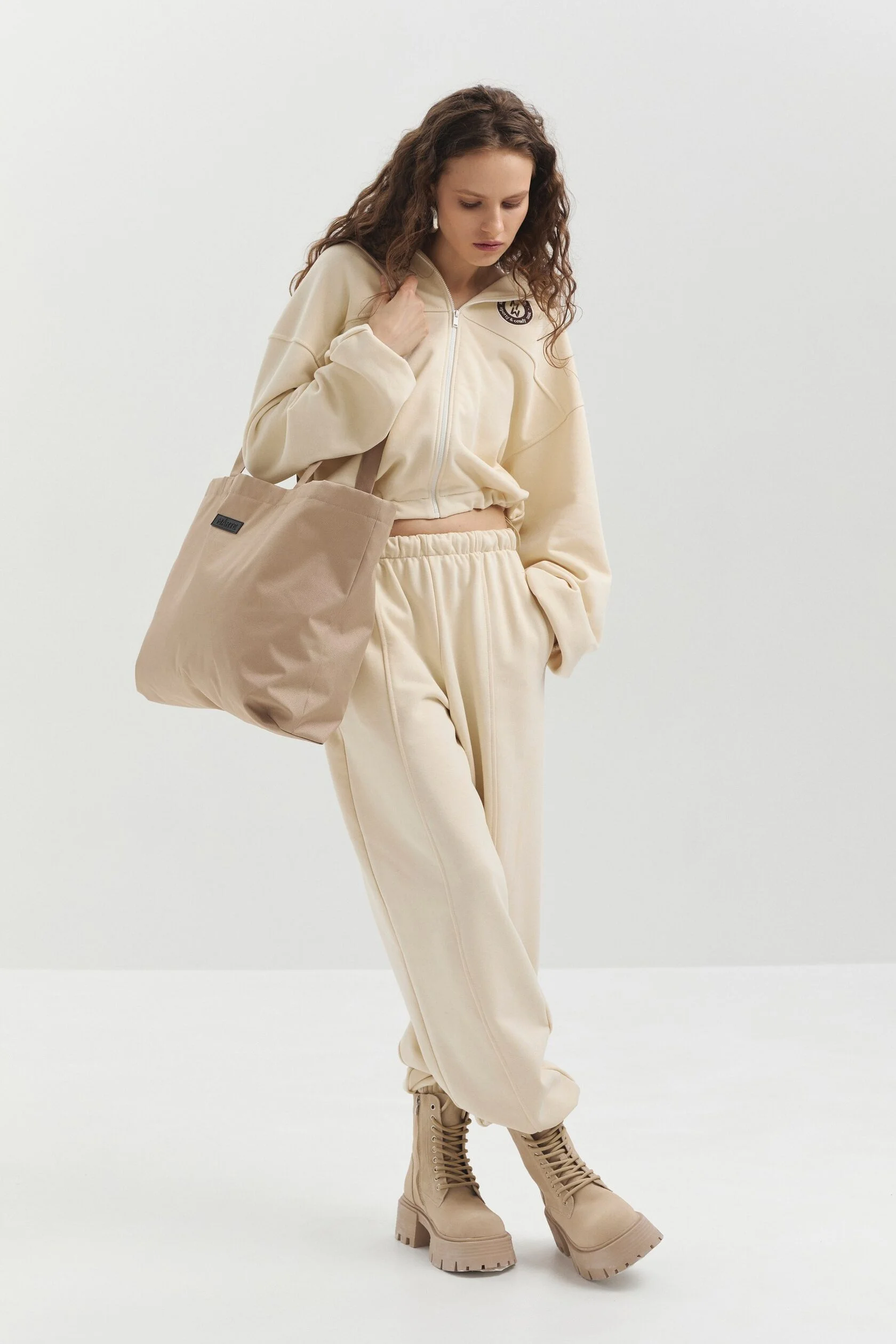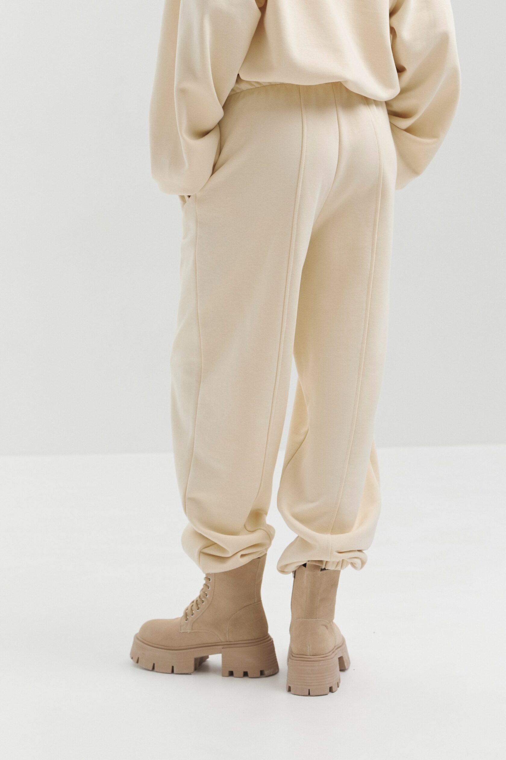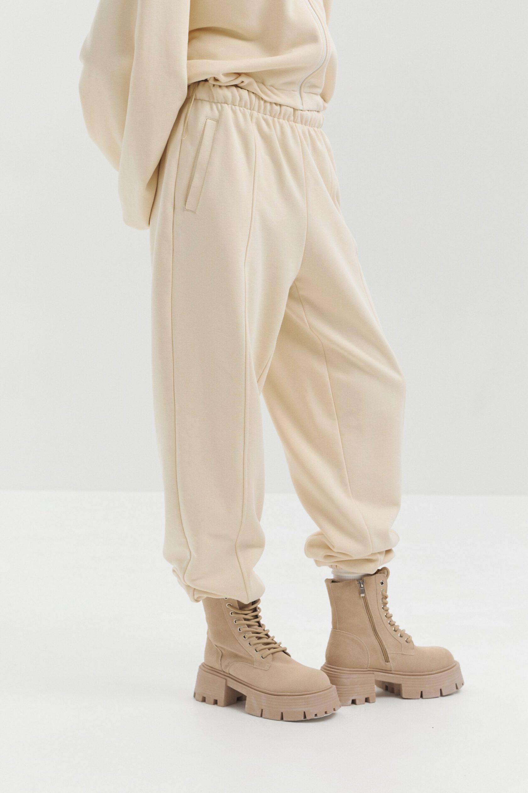Джоггеры из мягкого футера. Идеальную посадку обеспечивает эластичная резинка на талии и свободный, универсальный крой.