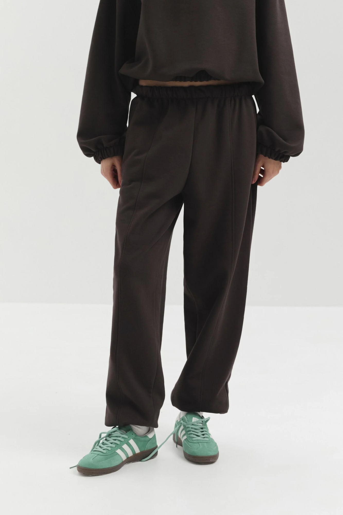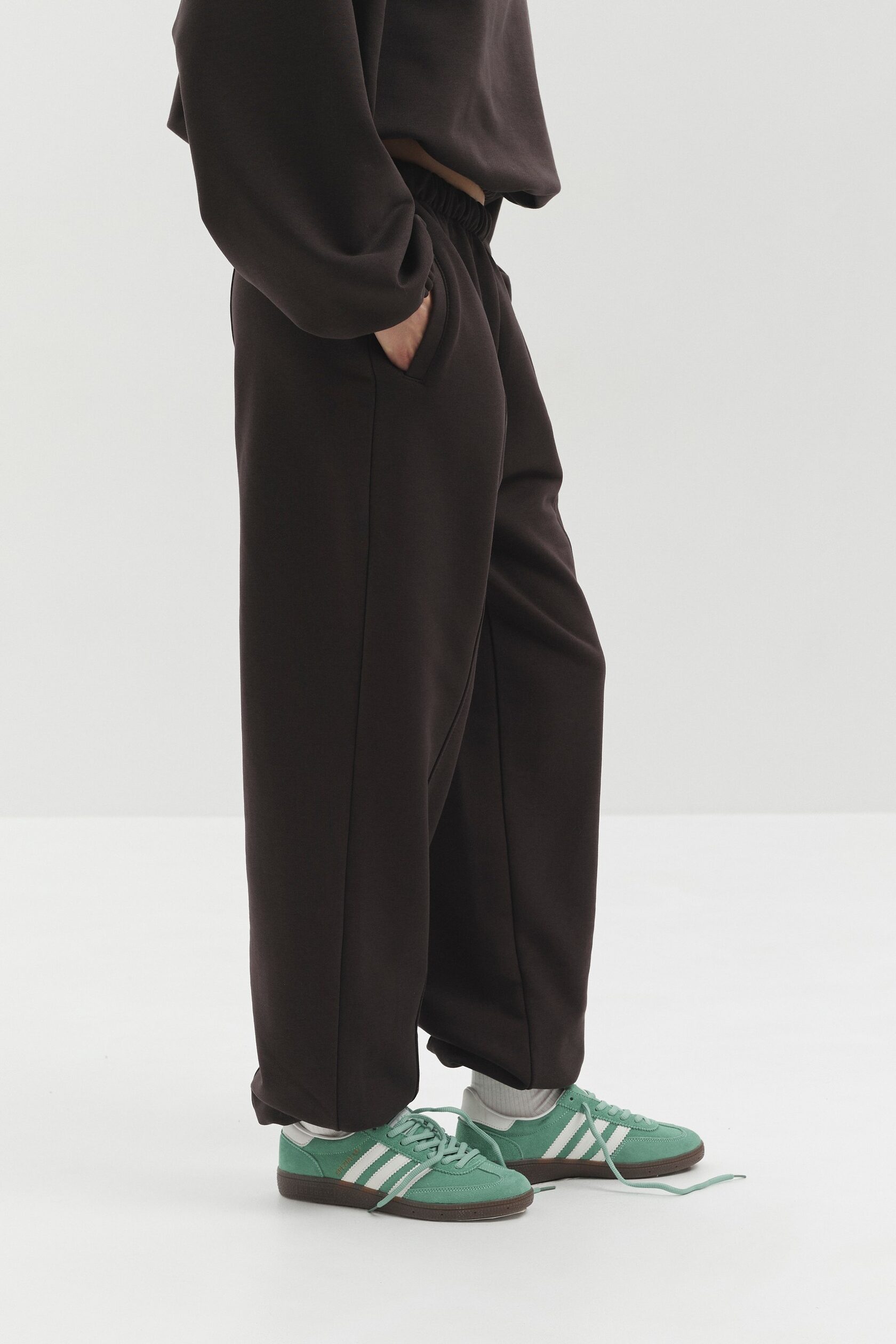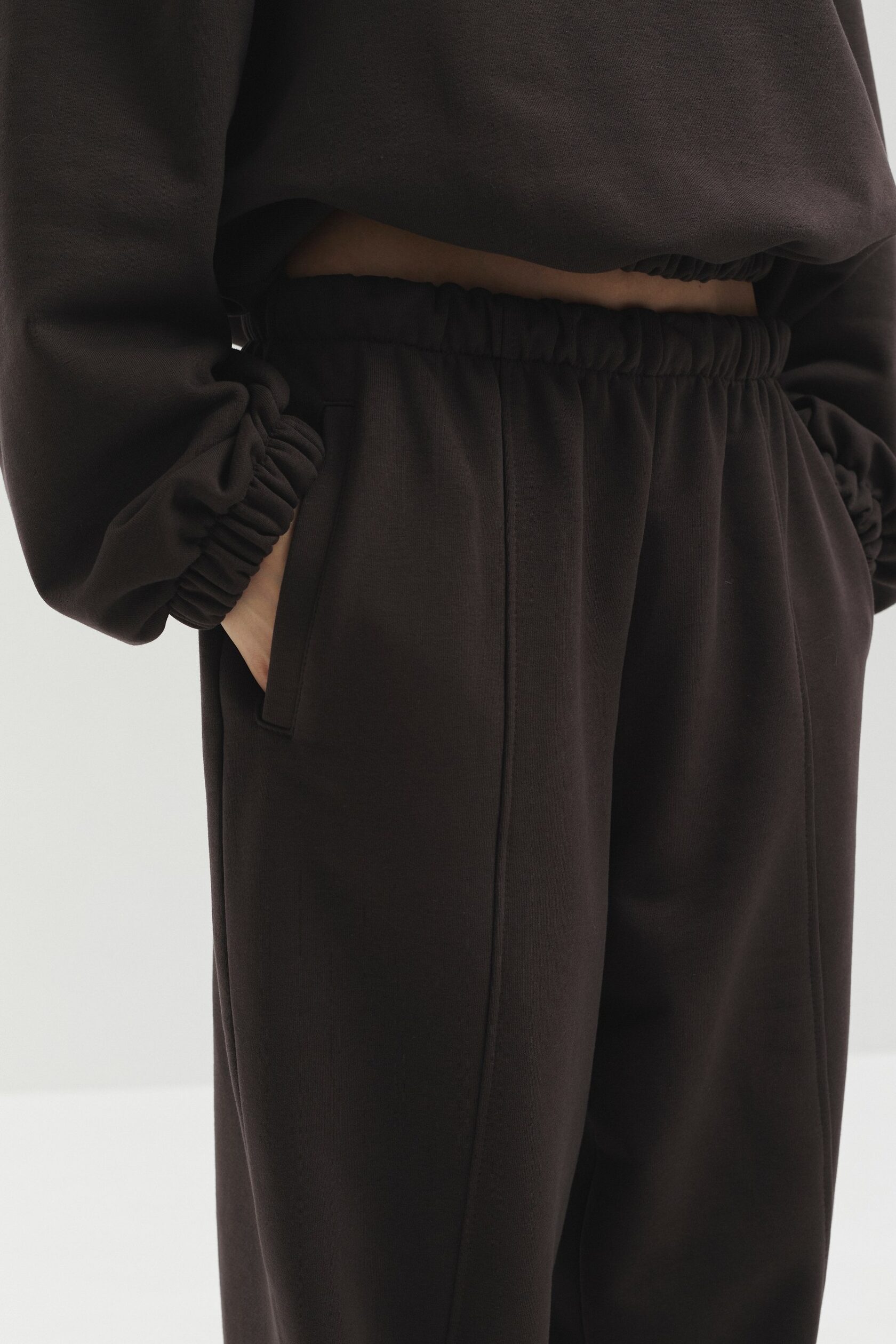 Джоггеры из мягкого футера. Идеальную посадку обеспечивает эластичная резинка на талии и свободный, универсальный крой.