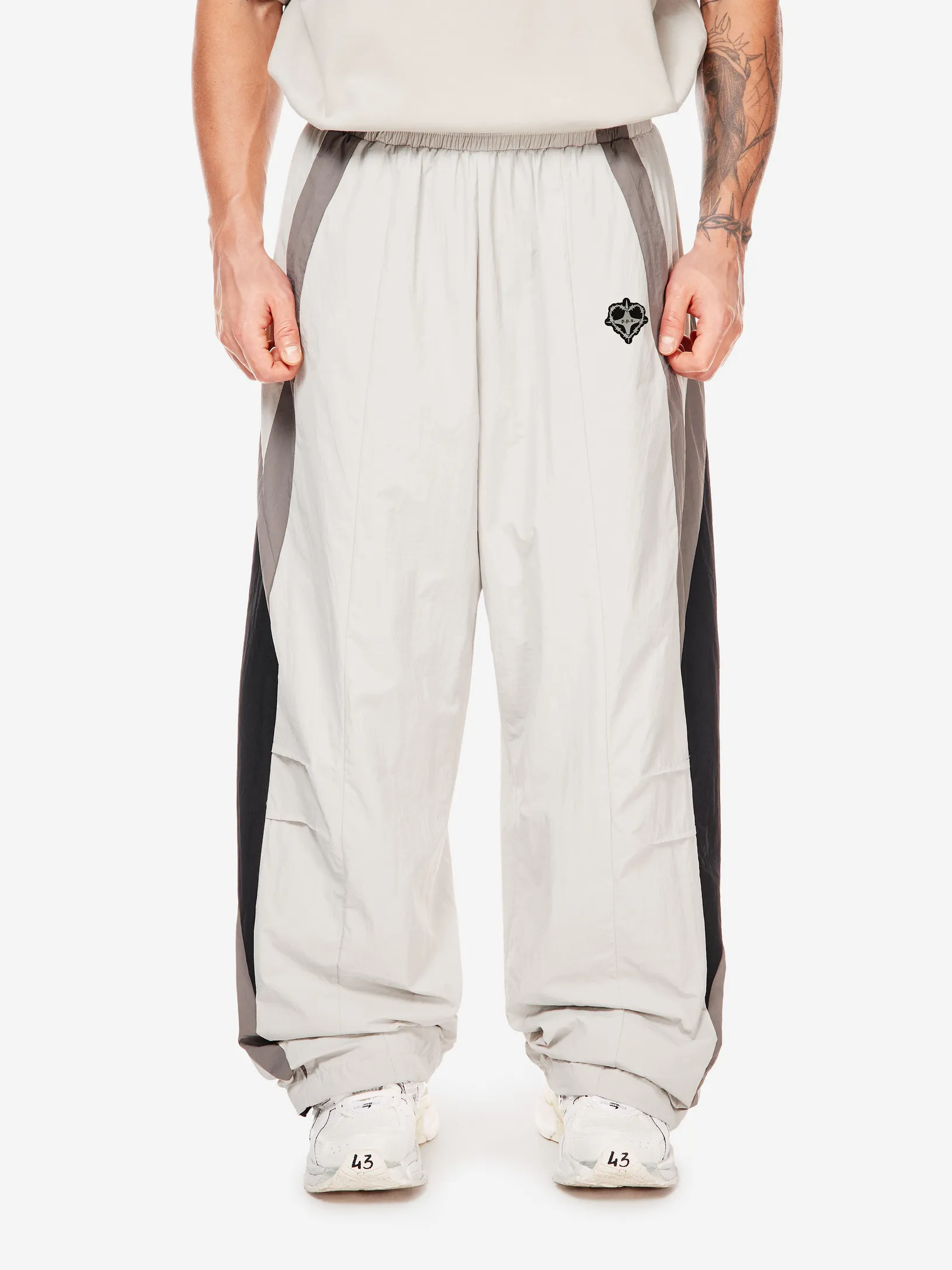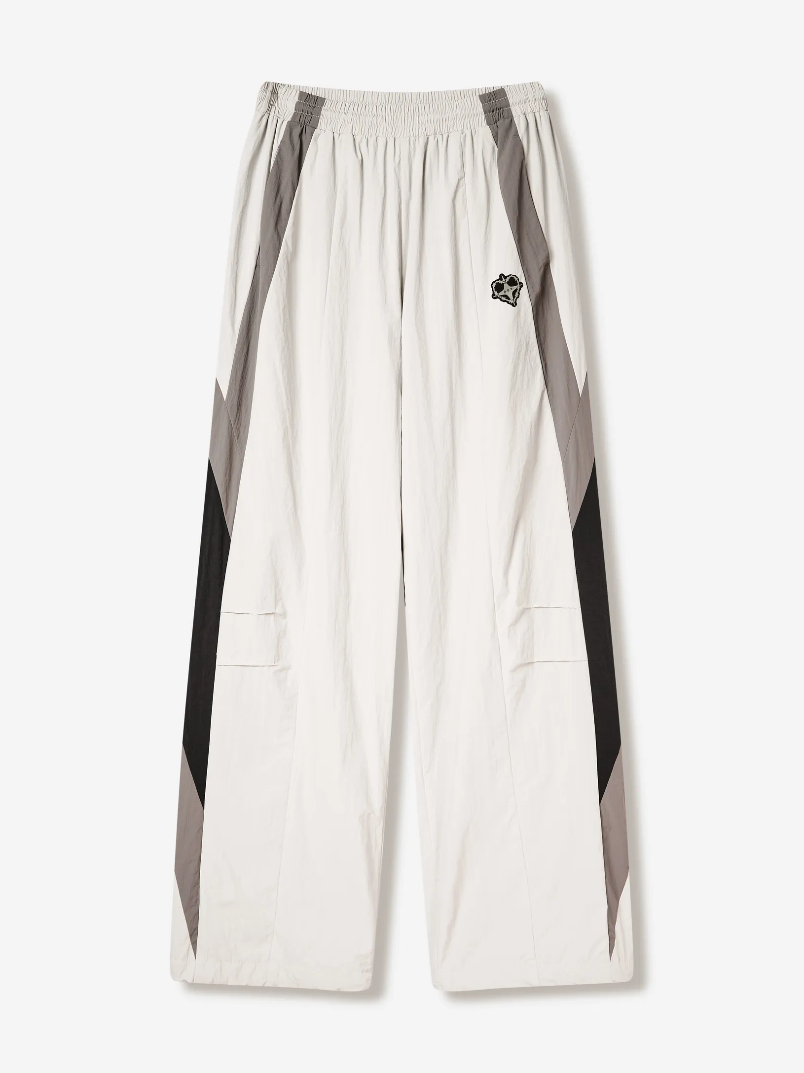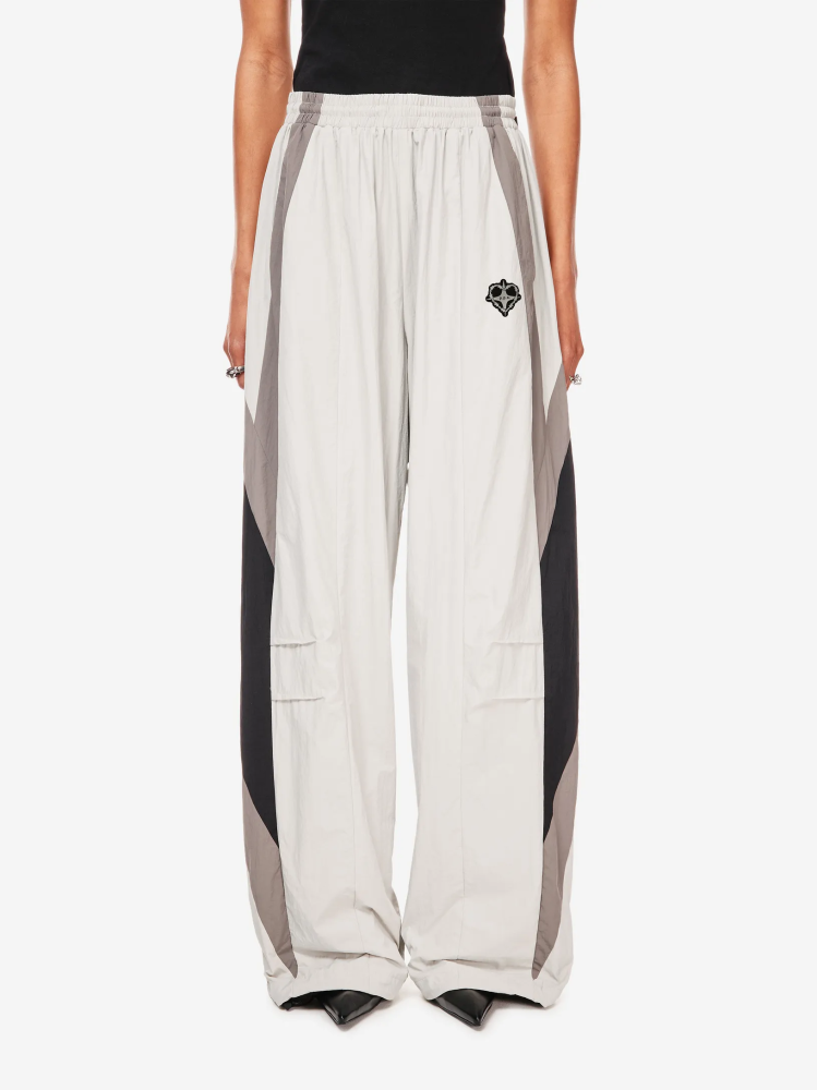 Брюки chrome heart — продолжение архивного спортивного кода в эстетике Y2K. Широкий силуэт, графичные контрастные вставки и функциональные детали формируют динамичный образ на стыке спорта, урбанистики и индивидуального стиля.