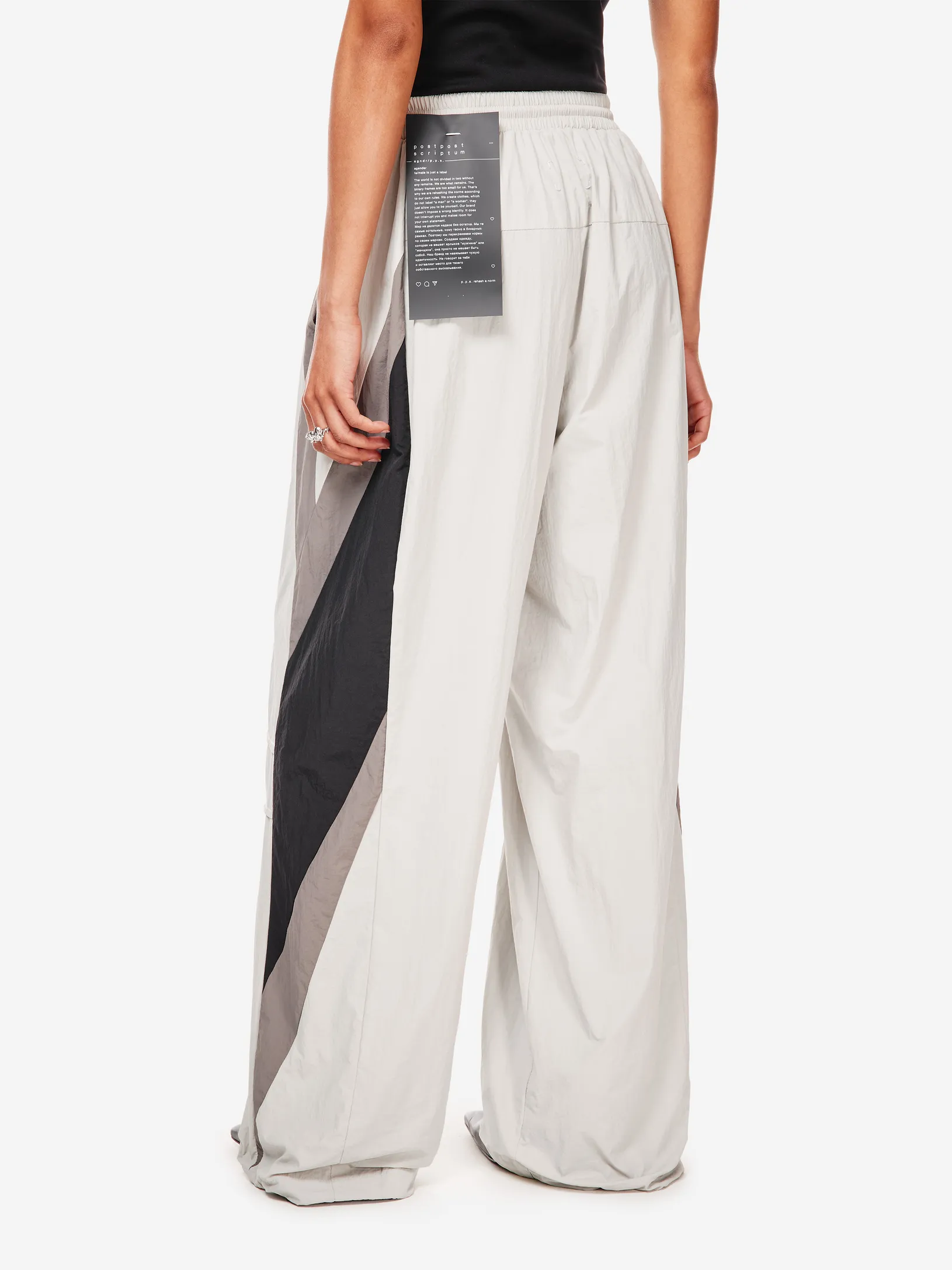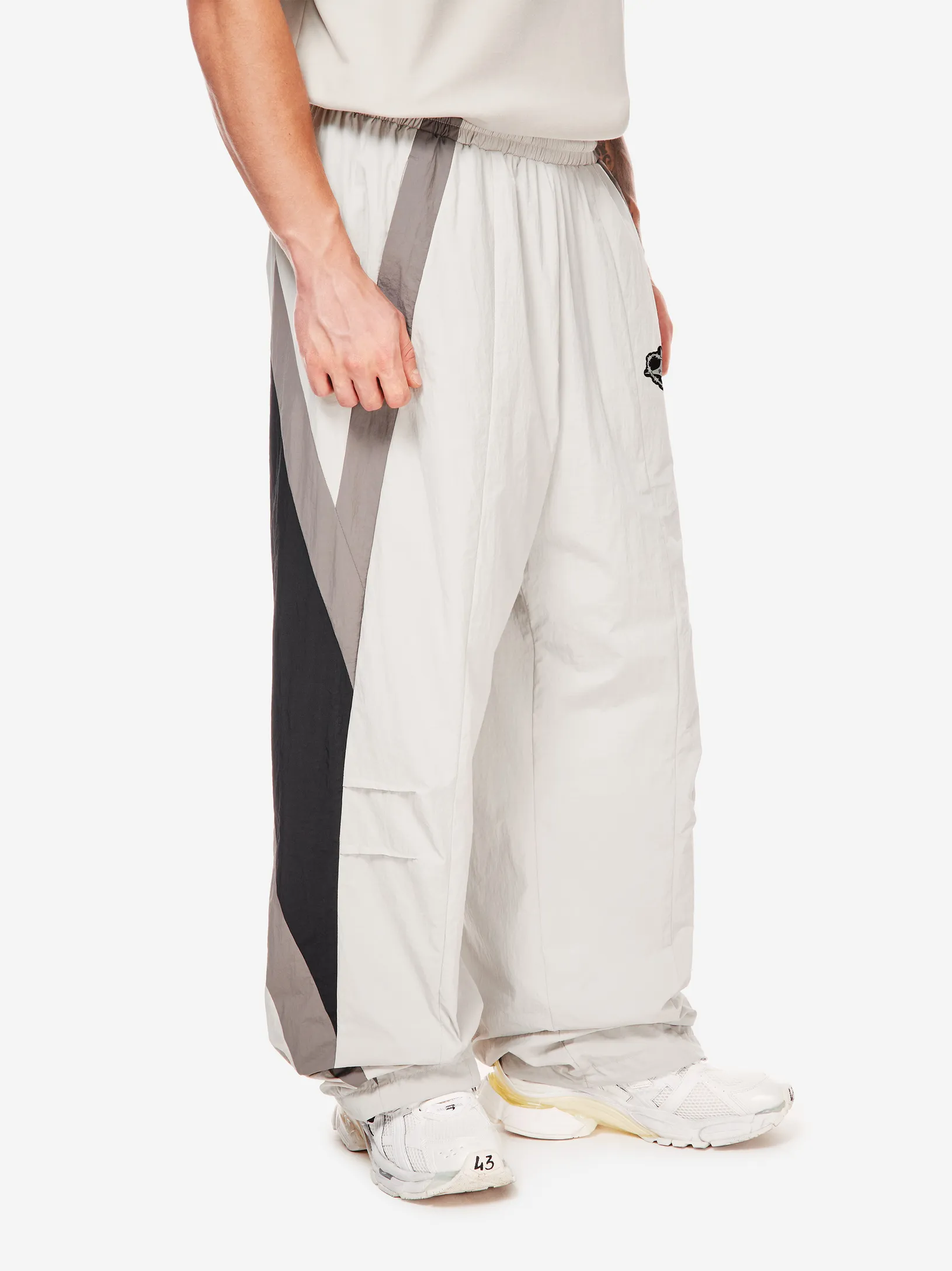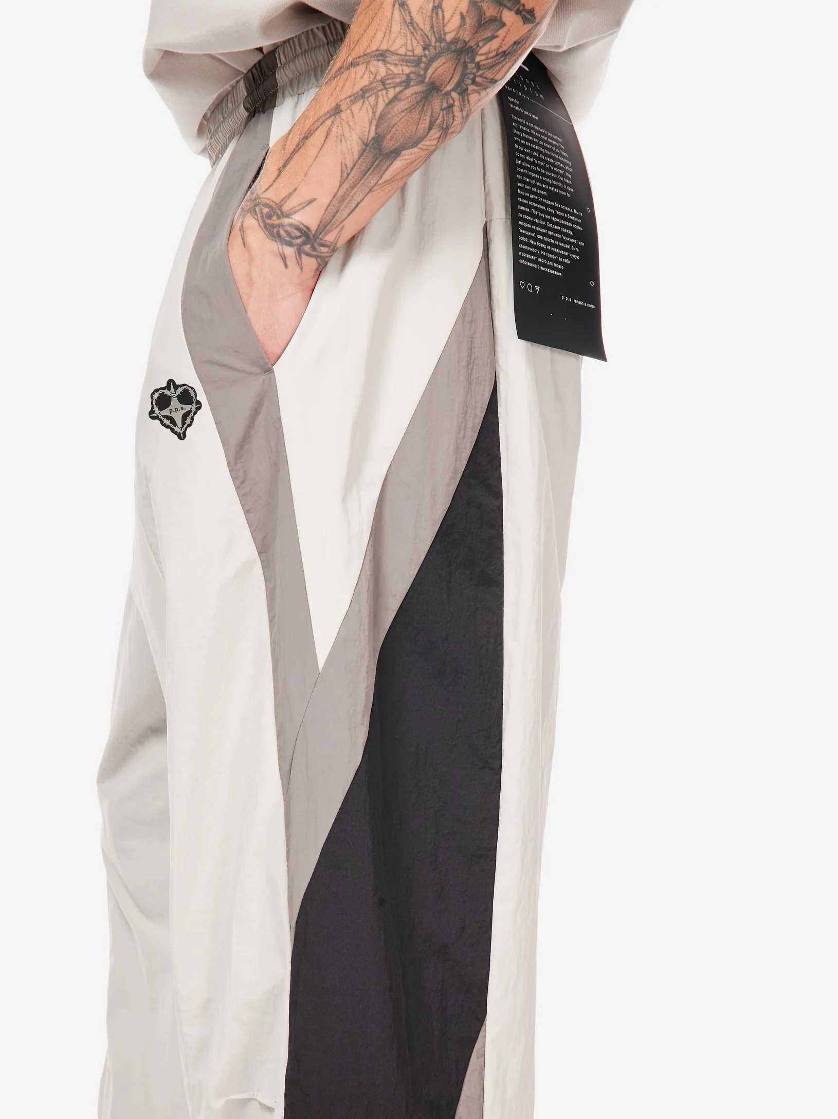 Брюки chrome heart — продолжение архивного спортивного кода в эстетике Y2K. Широкий силуэт, графичные контрастные вставки и функциональные детали формируют динамичный образ на стыке спорта, урбанистики и индивидуального стиля.