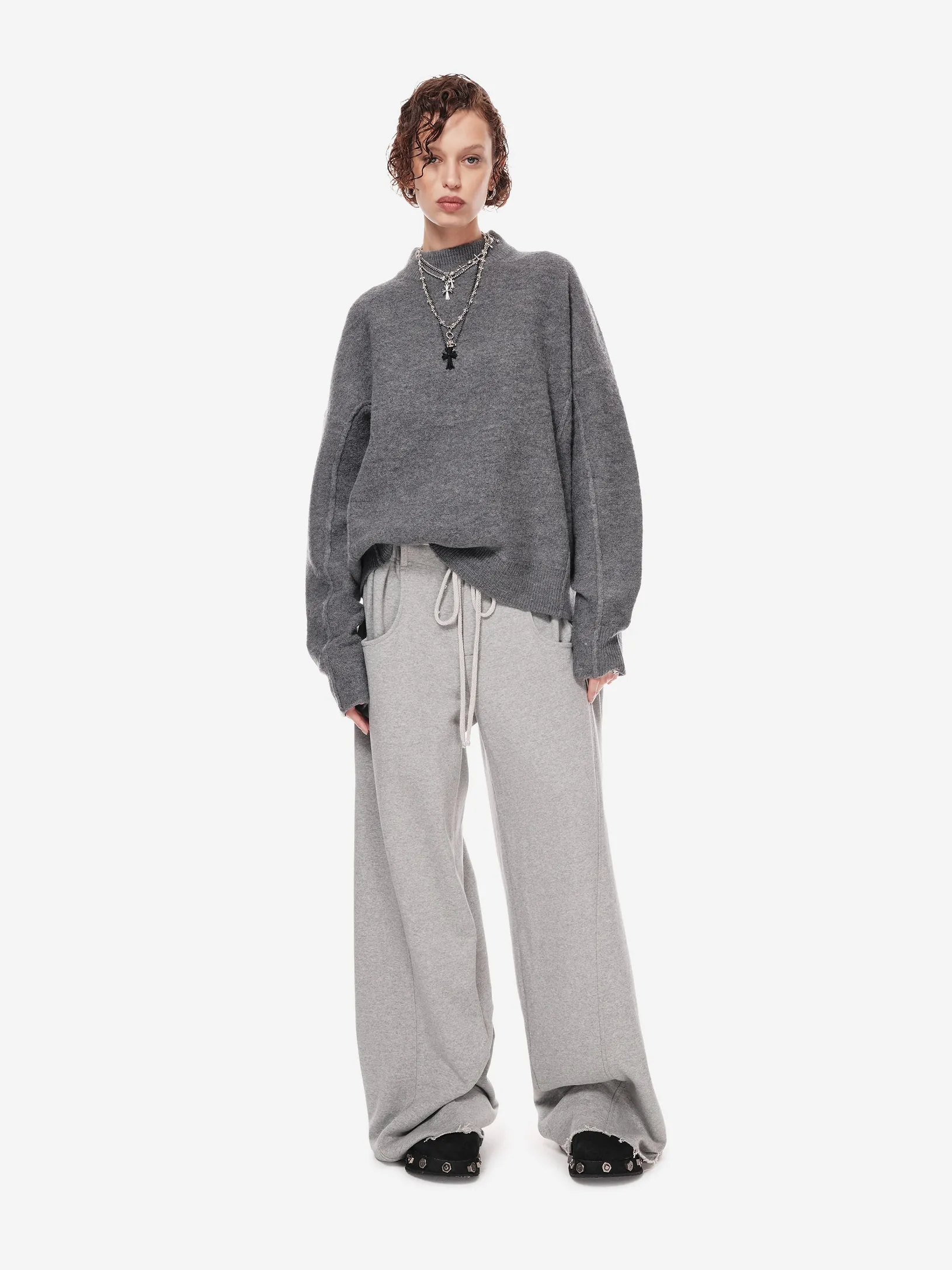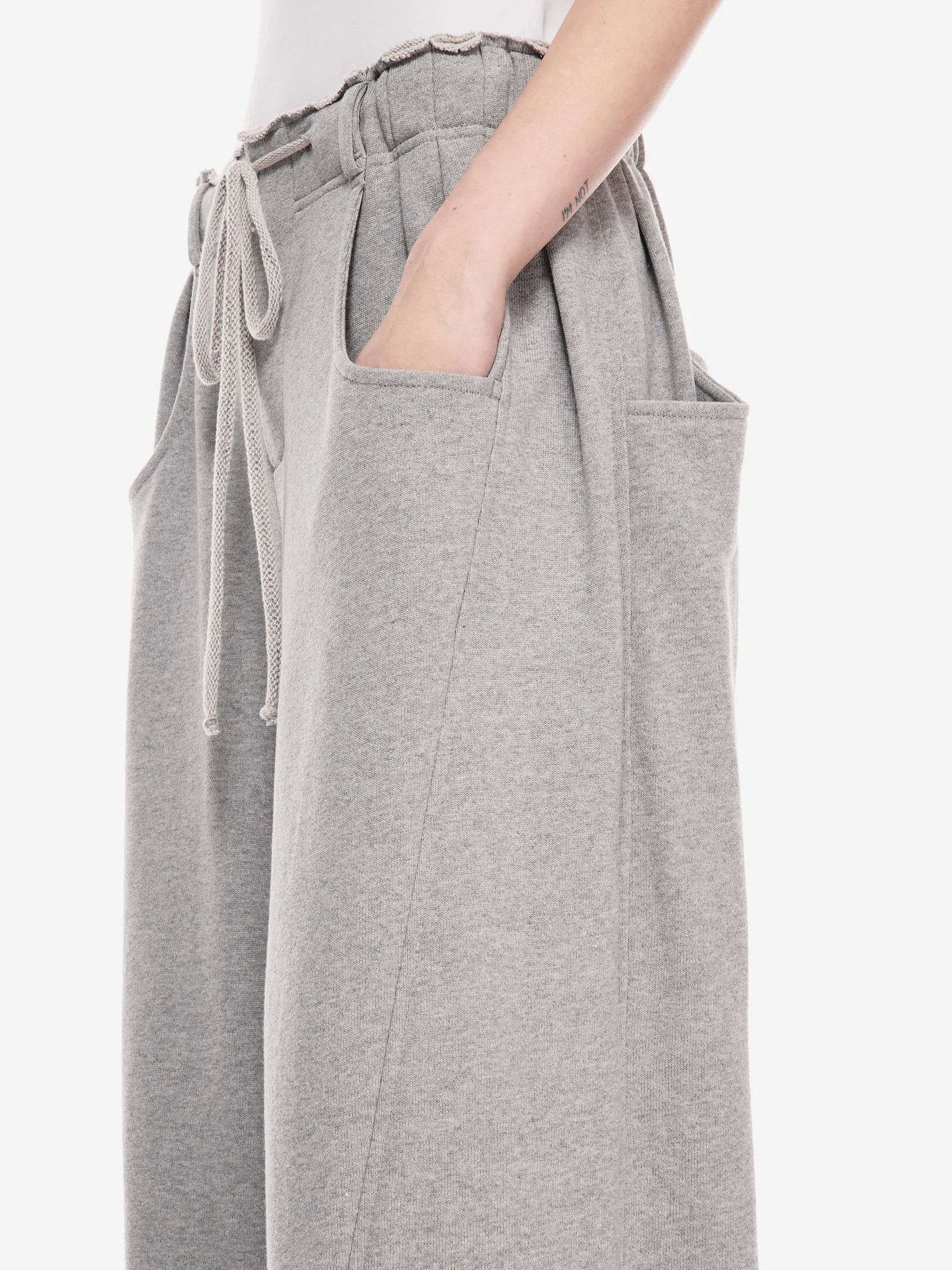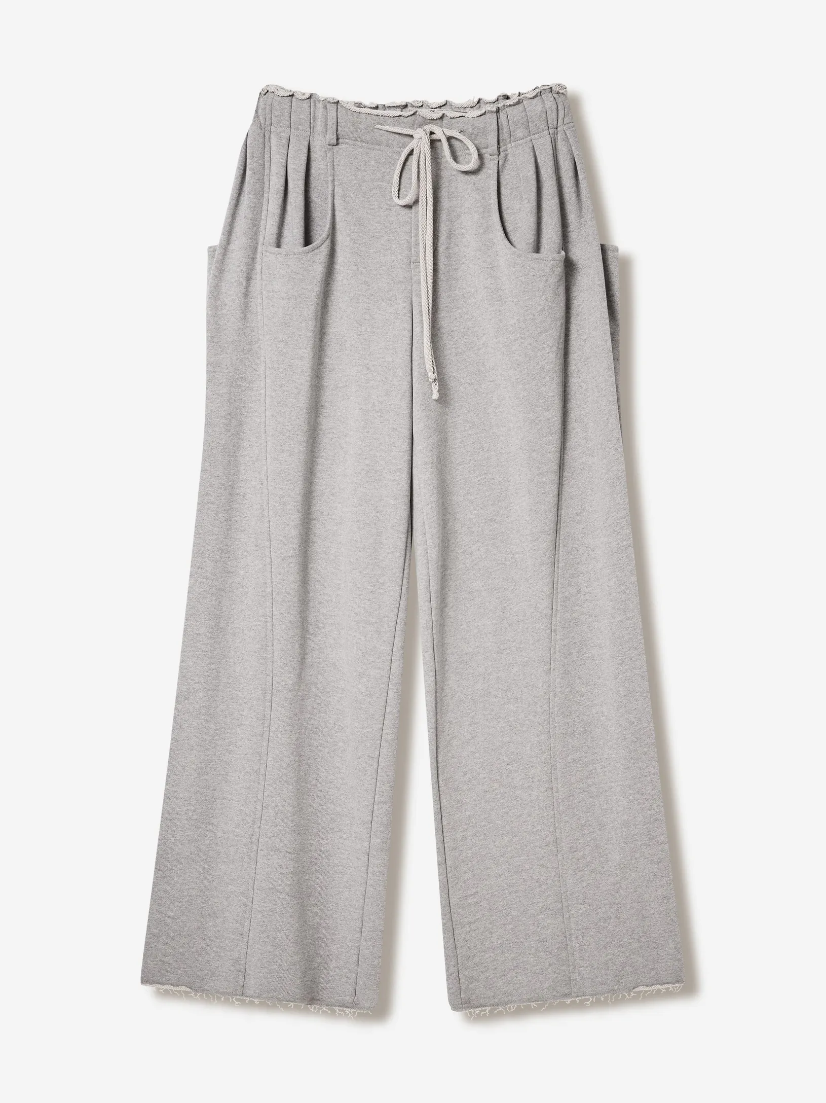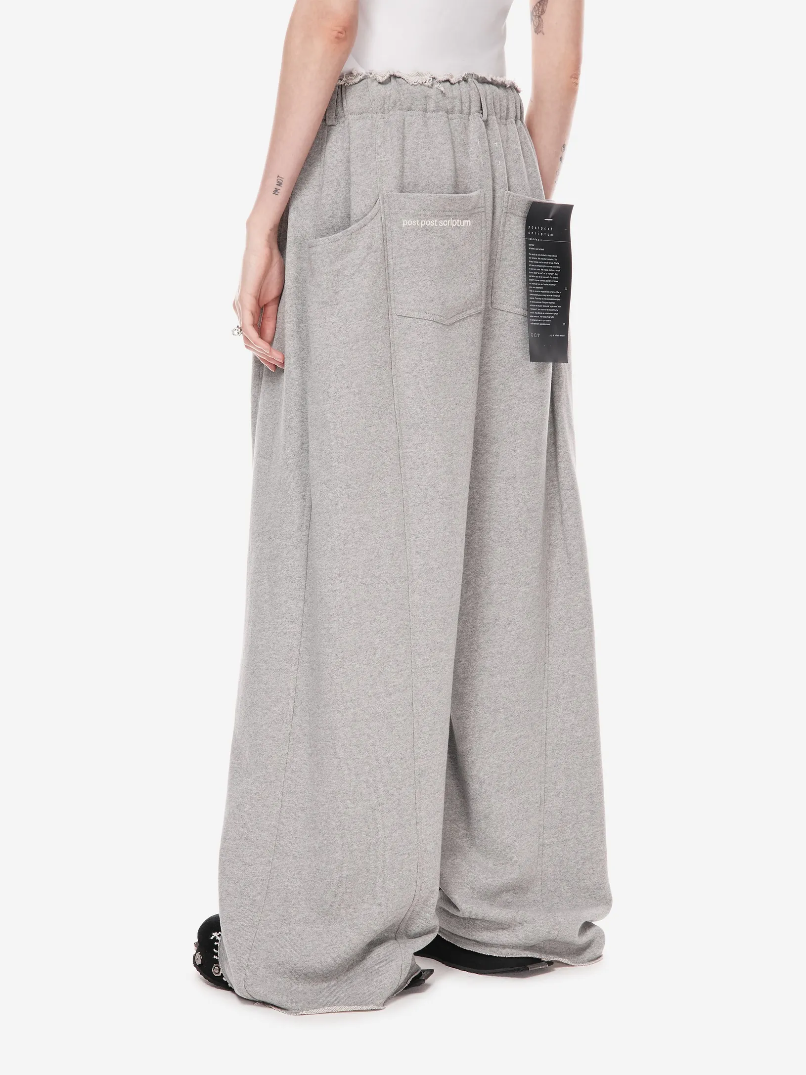 Брюки в эстетике современной уличной одежды с отсылкой к спортивным кодам конца 90-х. Необработанный край пояса, утилитарные карманы и расслабленная длина с напуском на обувь. Это не спорт, а его модная трансформация.