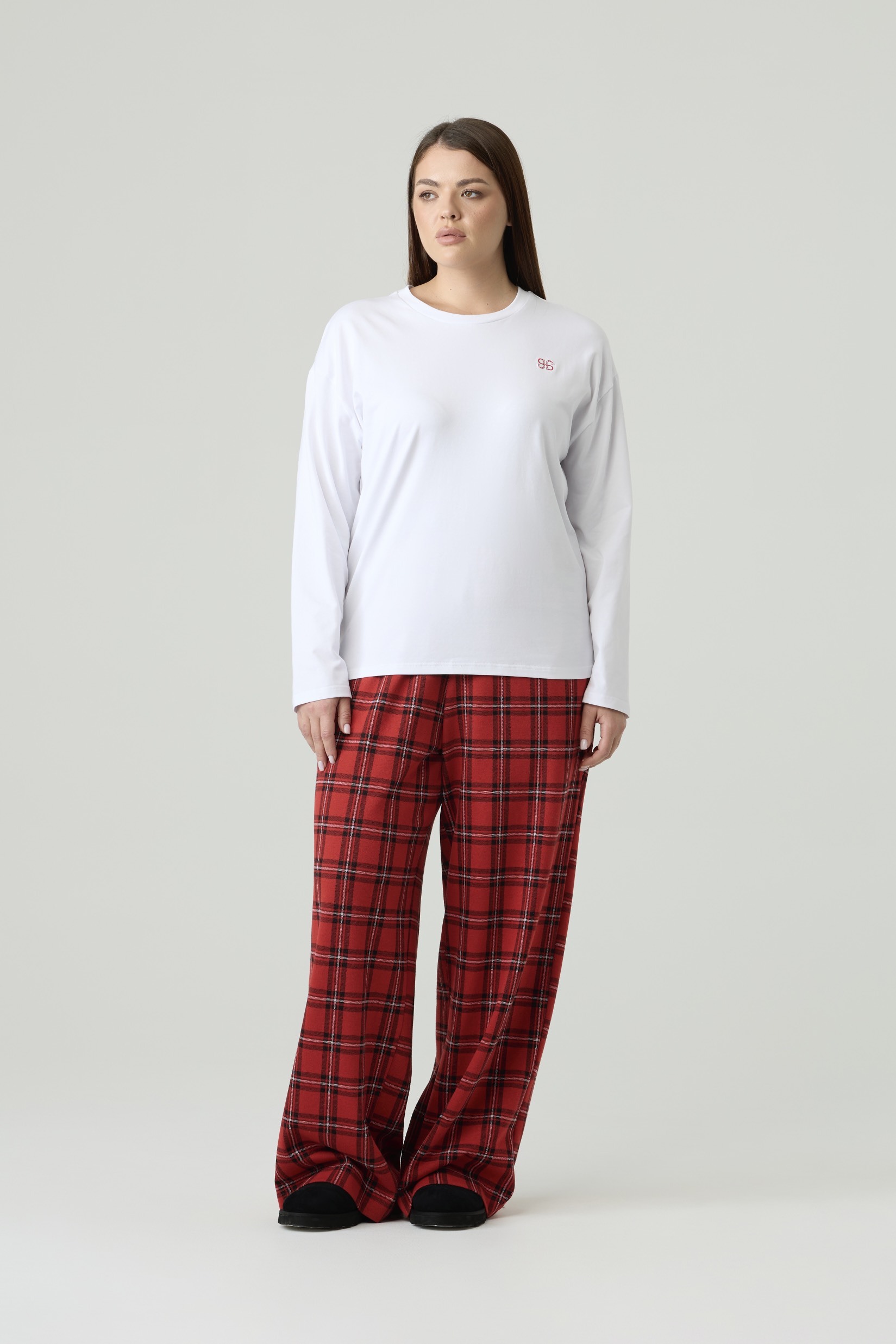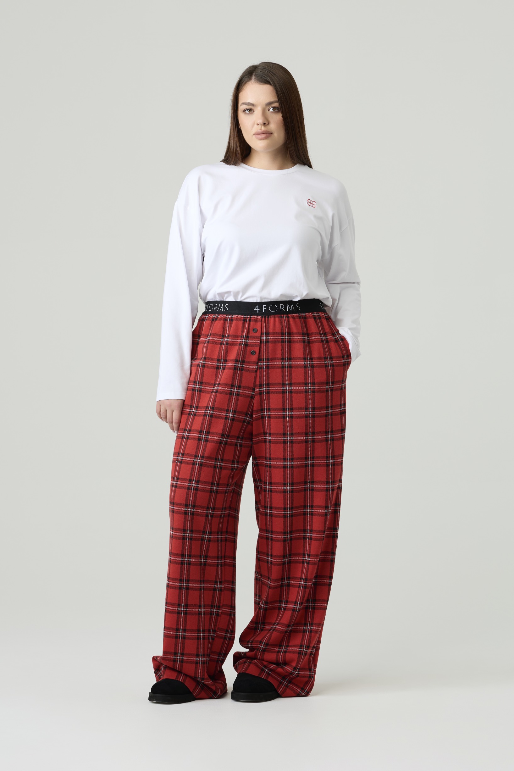 Брюки с высокой посадкой и прямым кроем, обеспечивающим свободу движений. Модель имеет эластичный широкий пояс для удобной посадки и комфортного ношения. Брюки не сковывает движения, идеально подойдут как для сна, так и для создания уютного домашнего образа.