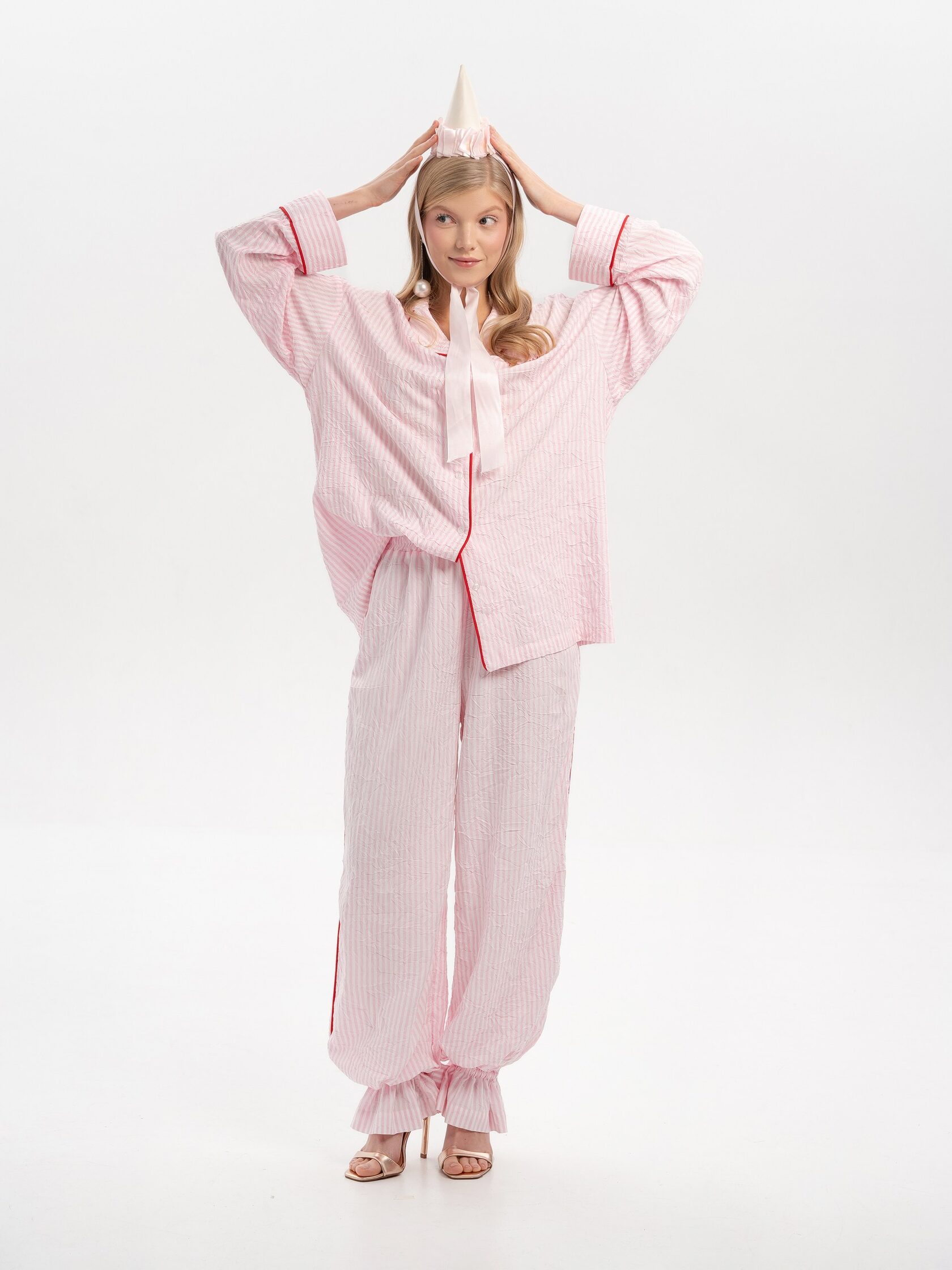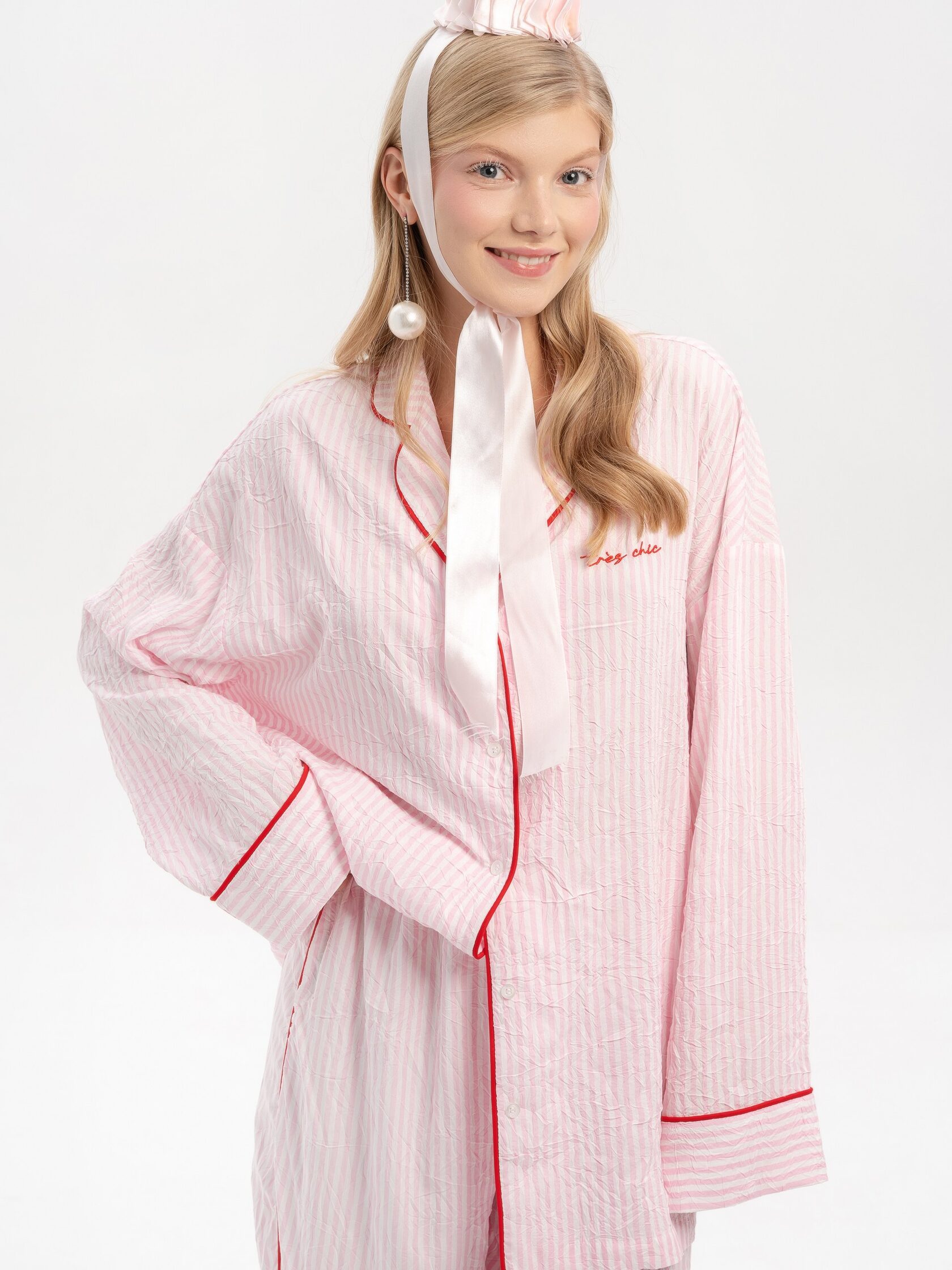 Розовая рубашка в пижамном стиле из мягкой вискозы – легкая и расслабленная, но при этом эффектная. Свободный крой делает ее идеальной для многослойных образов, а нежный оттенок подходит как для праздничного, так и для повседневного образа. Отлично смотрится с брюками Paris.