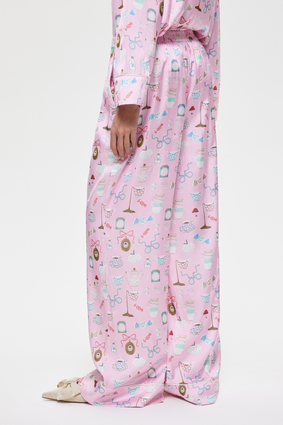 Элегантные пижамные брюки в нежном ярко-розовом оттенке с очаровательным принтом, посвященным сказочному миру Алисы в Стране чудес. Брюки перенесут вас в волшебную сказку и поднимут настроение, наполняя каждый день чувством магии. Изделие сделано из прочных и легких материалов. Идеальный выбор для тех, кто хочет почувствовать себя героиней сказки даже дома.