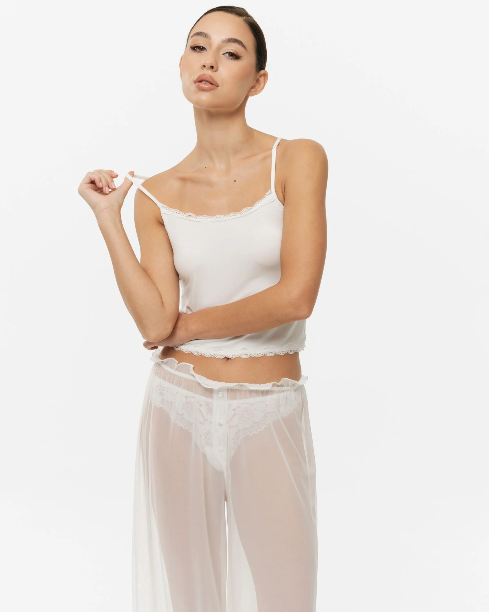 Майка имеет удобный крой, который обеспечивает свободу движений и не стесняет движений. Модель идеально подходит для создания расслабленного образа в домашней обстановке или для использования в качестве нижнего слоя в многослойных комплектах.