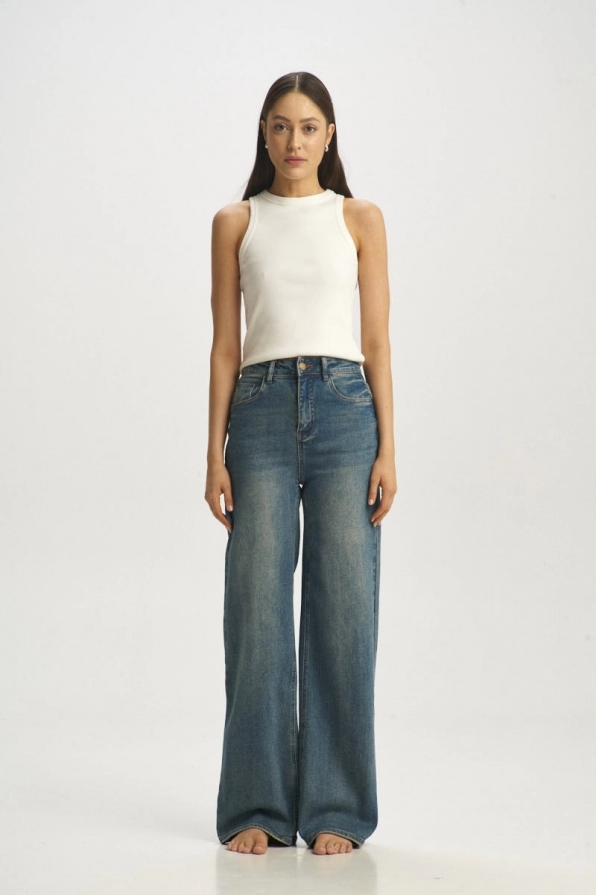 Джинсы-трубы с потертостями Blue