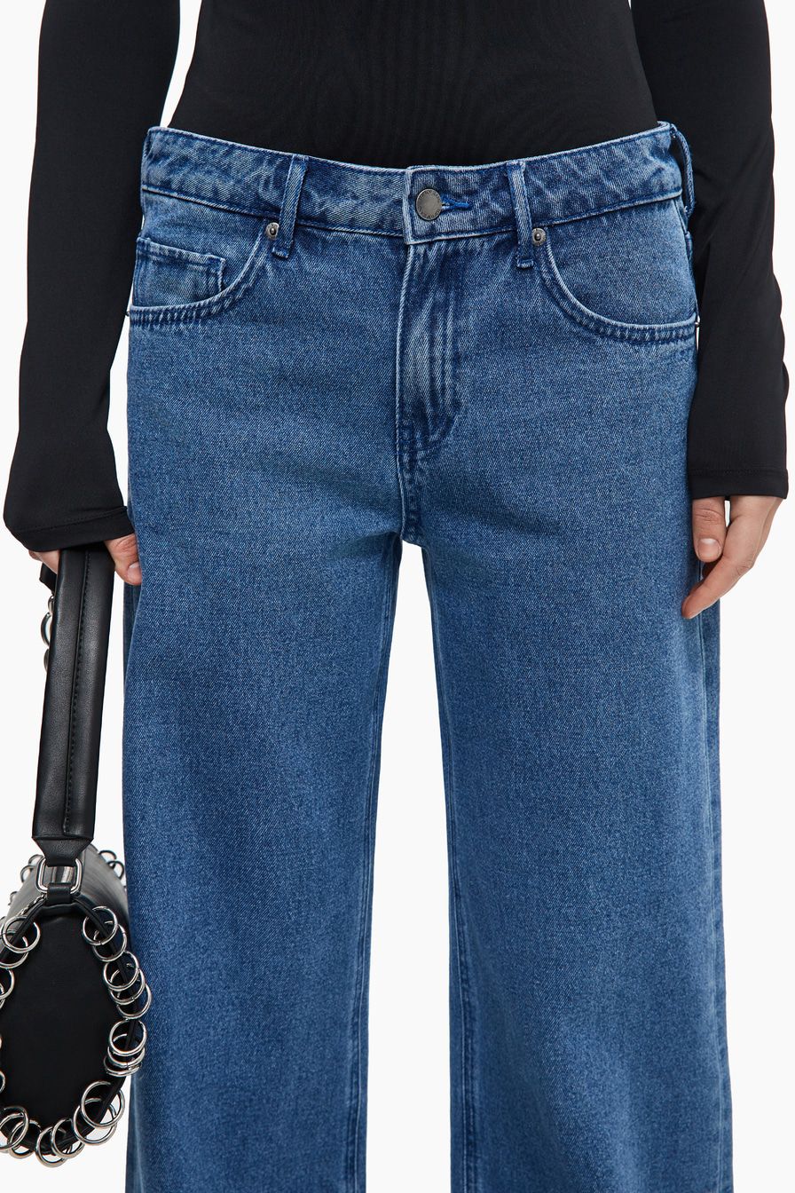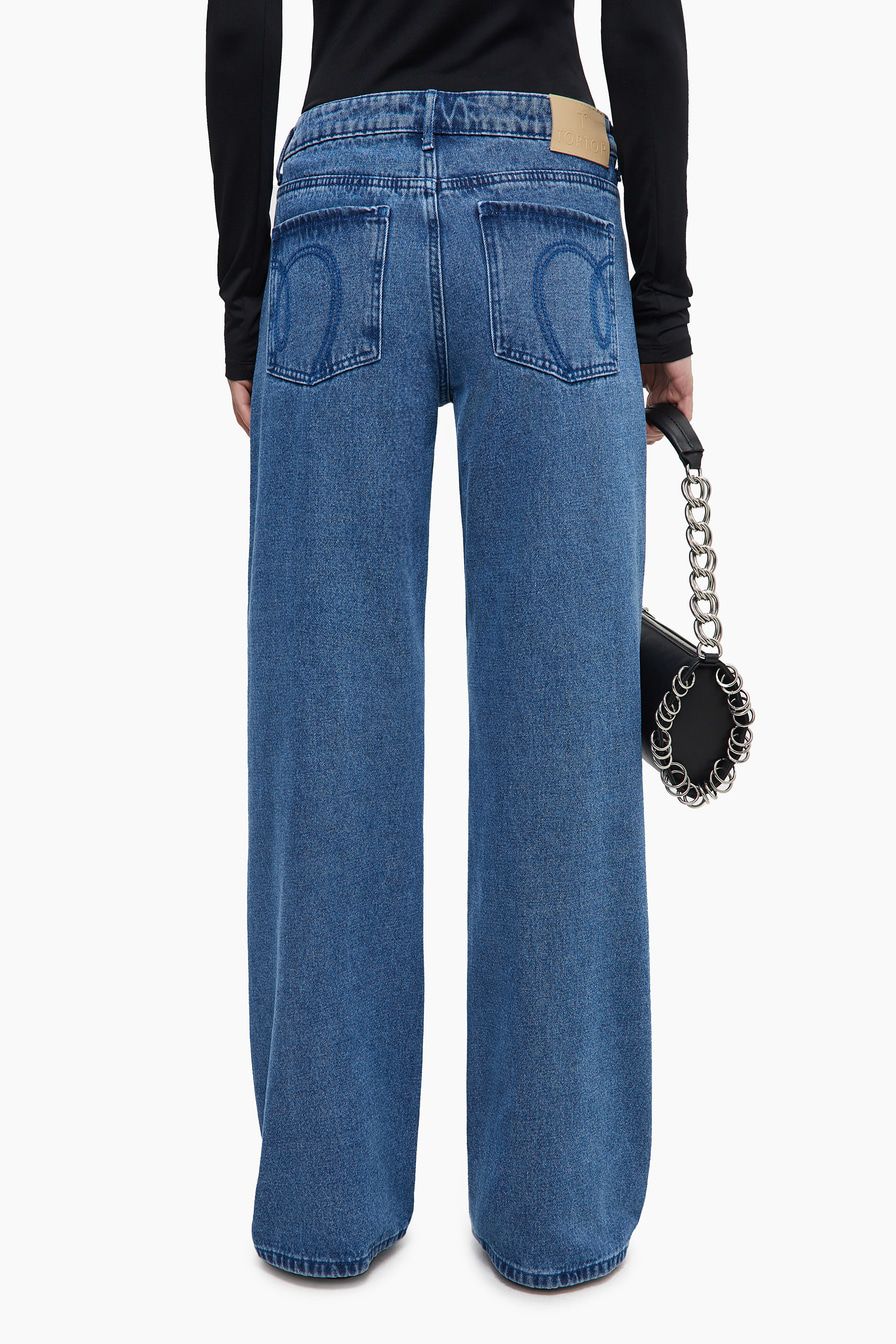 Широкие джинсы-бойфренды из смесового хлопка – модель синего цвета со средней посадкой. Задние карманы декорированы узорной вышивкой.