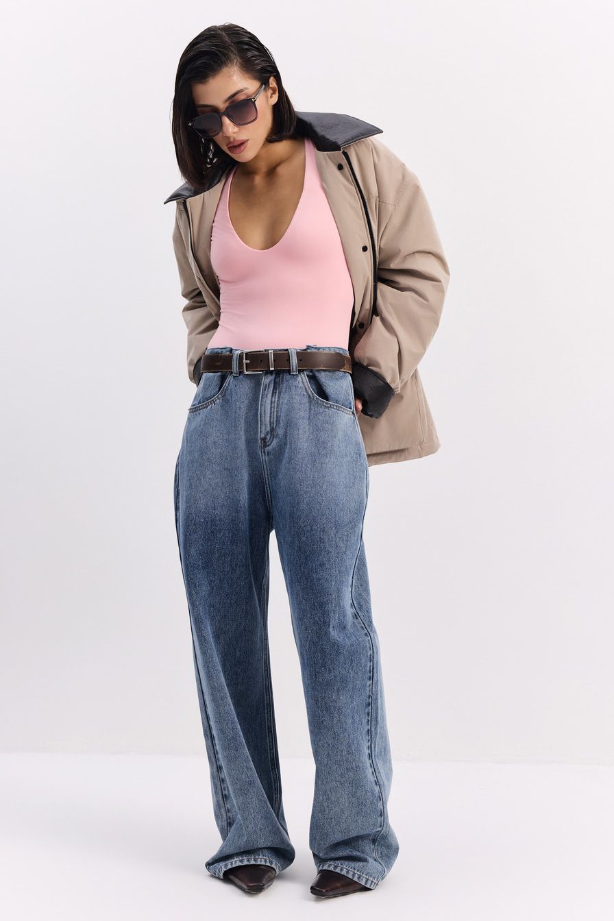 «Для повседневного лука сочетайте джинсы с оверсайз-футболкой, грубыми ботинками на платформе и объемным бомбером».
