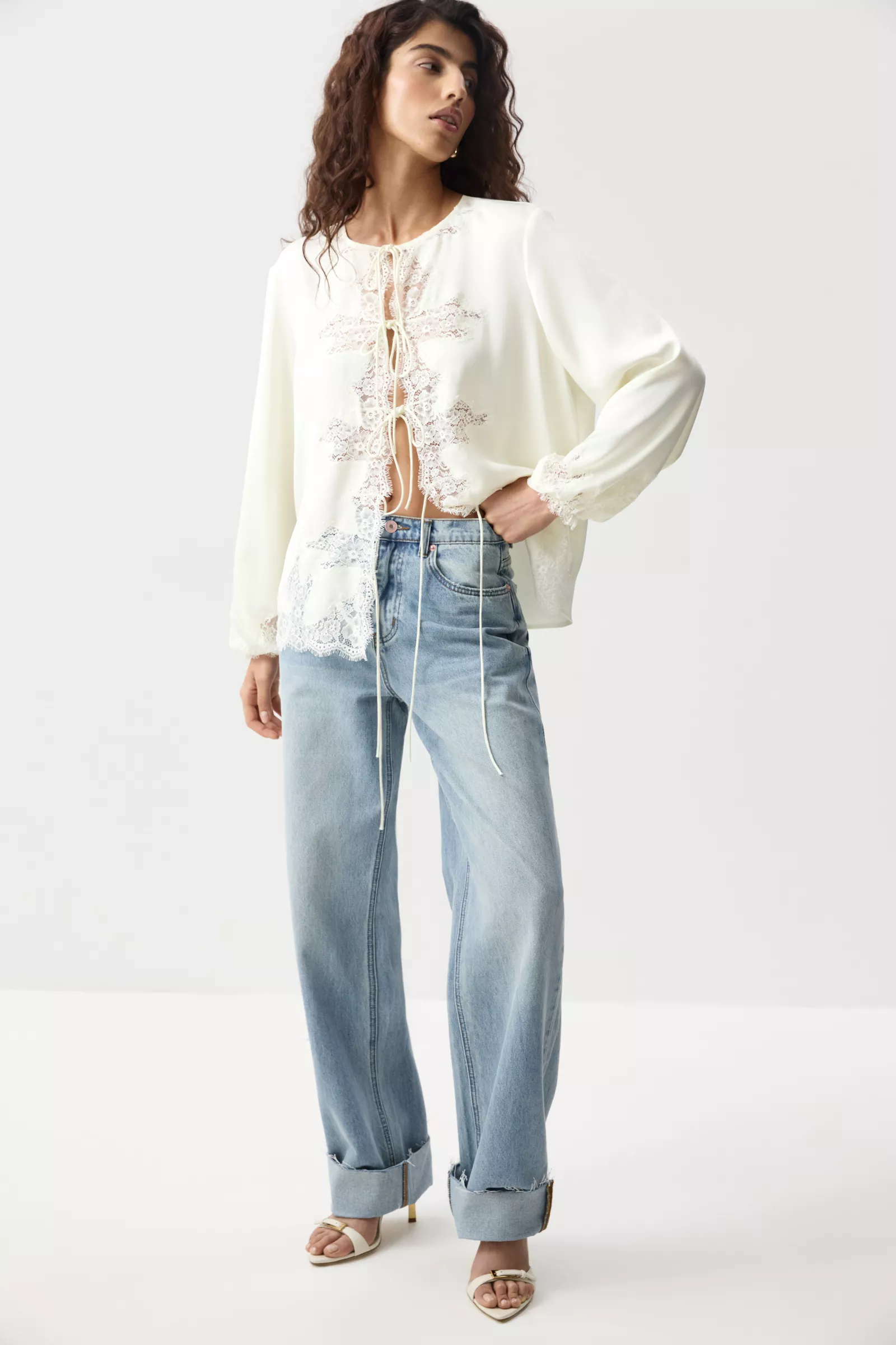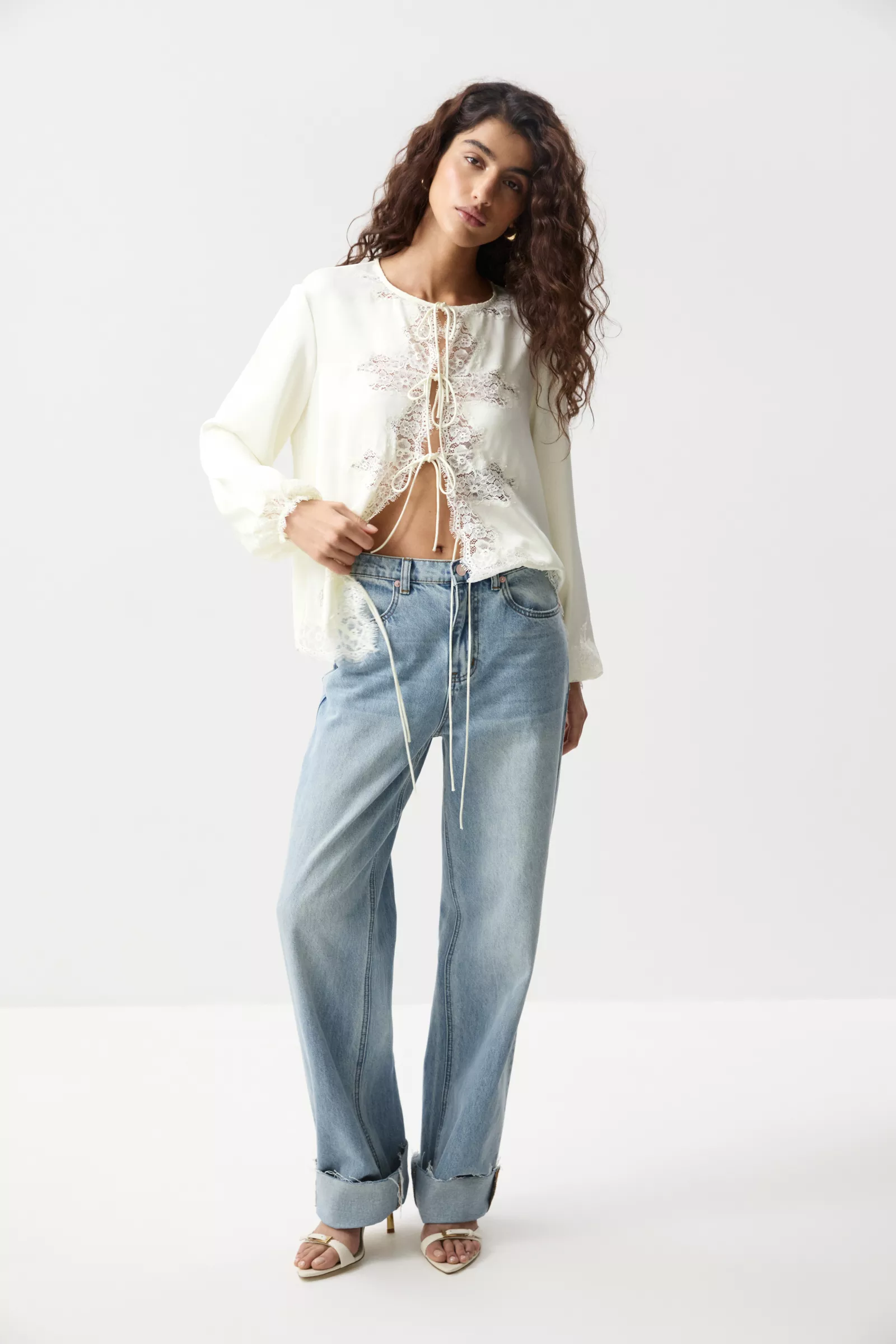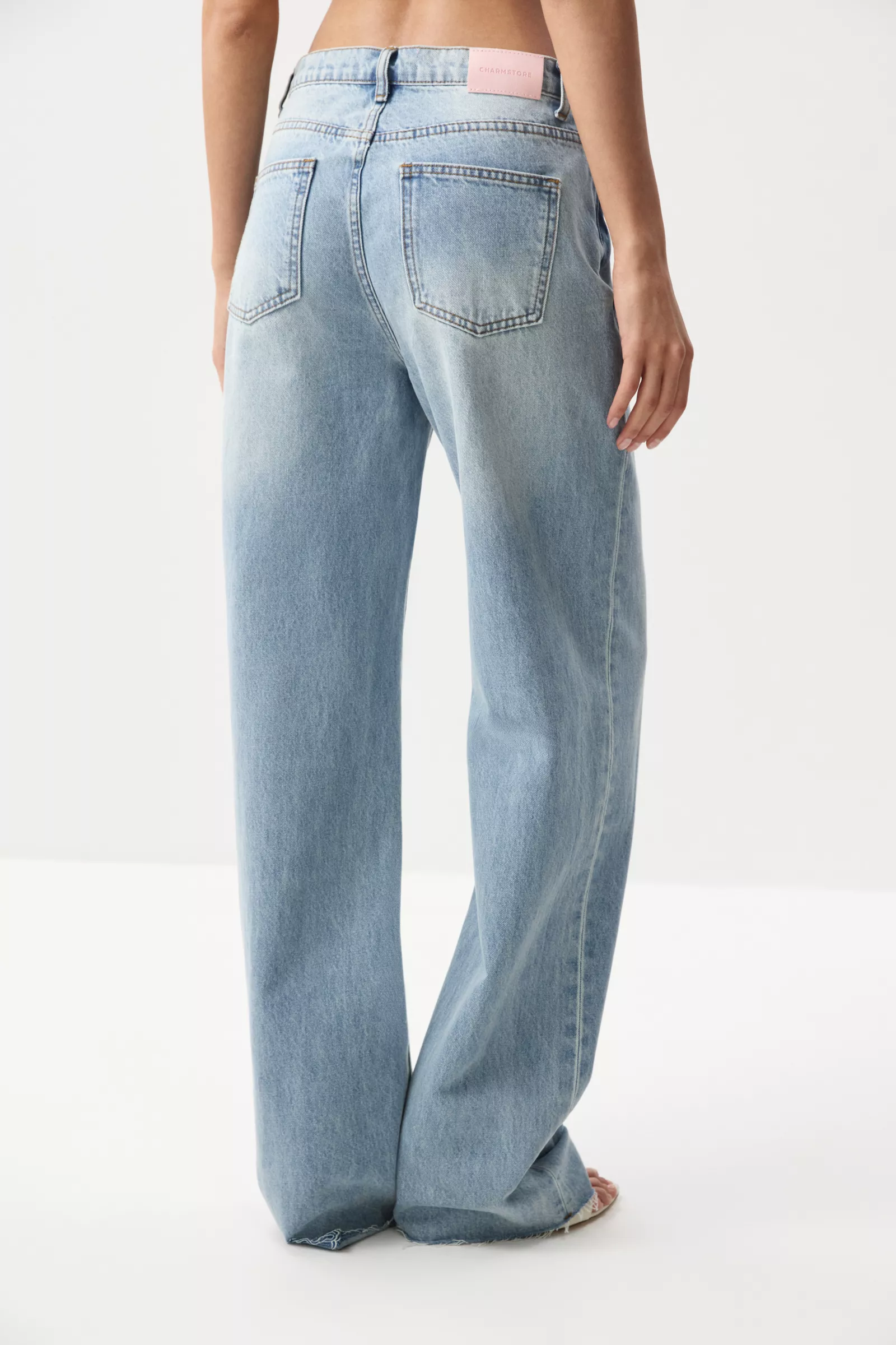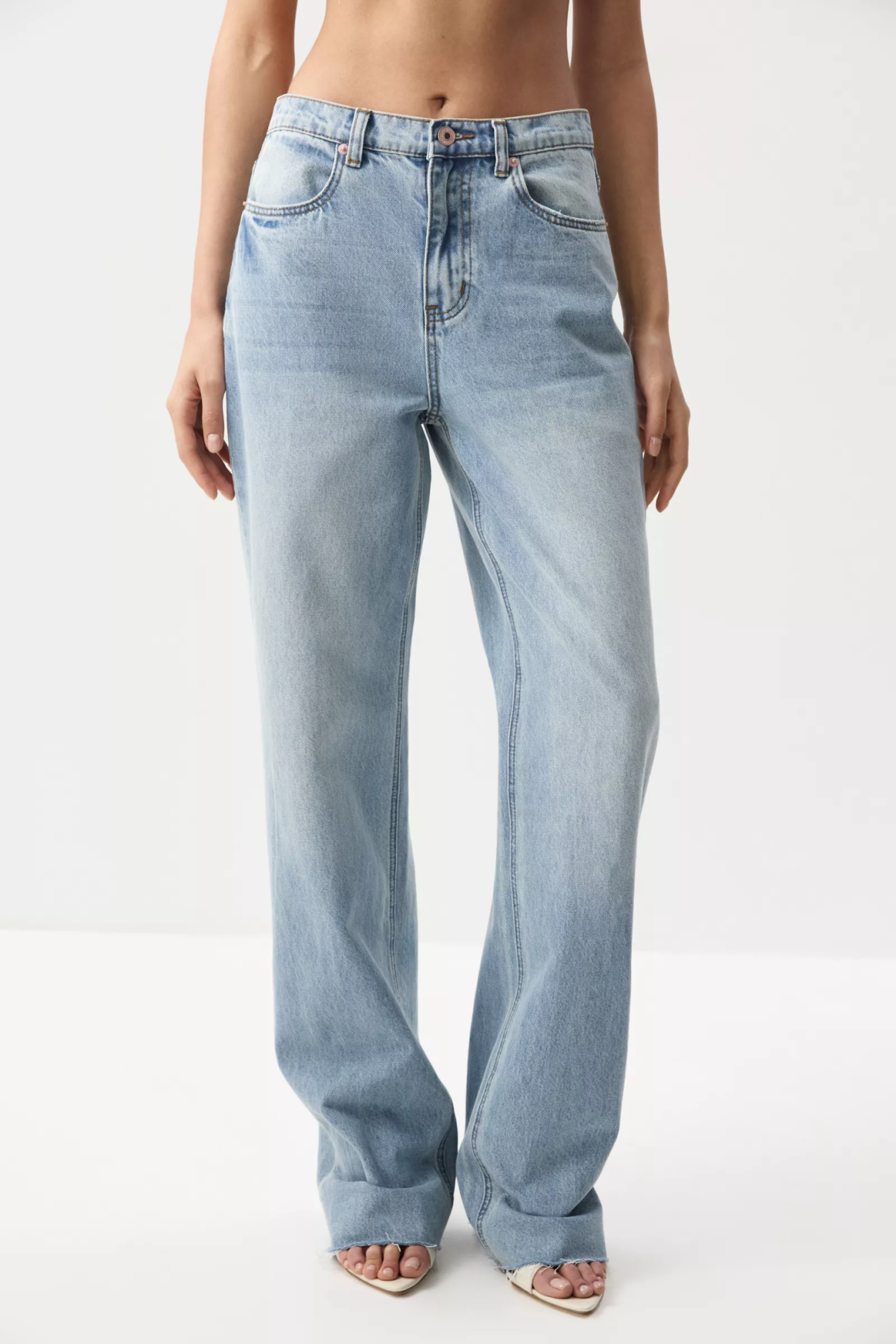 Джинсы средней посадки в умеренного объема, который аккуратно «спускается» по линии бедер. Низ брюк выполнен с открытым разрезом в стиле гранж гармонично дополняет силуэт. Для того чтобы брюки как можно дольше сохраняли свой внешний вид, мы изготовили их из плотного денима в составе которого 100% хлопок. Джинсы выполнены в новой светлой весенней варке. Акцентом на джинсах является фурнитура в цвете бренда.