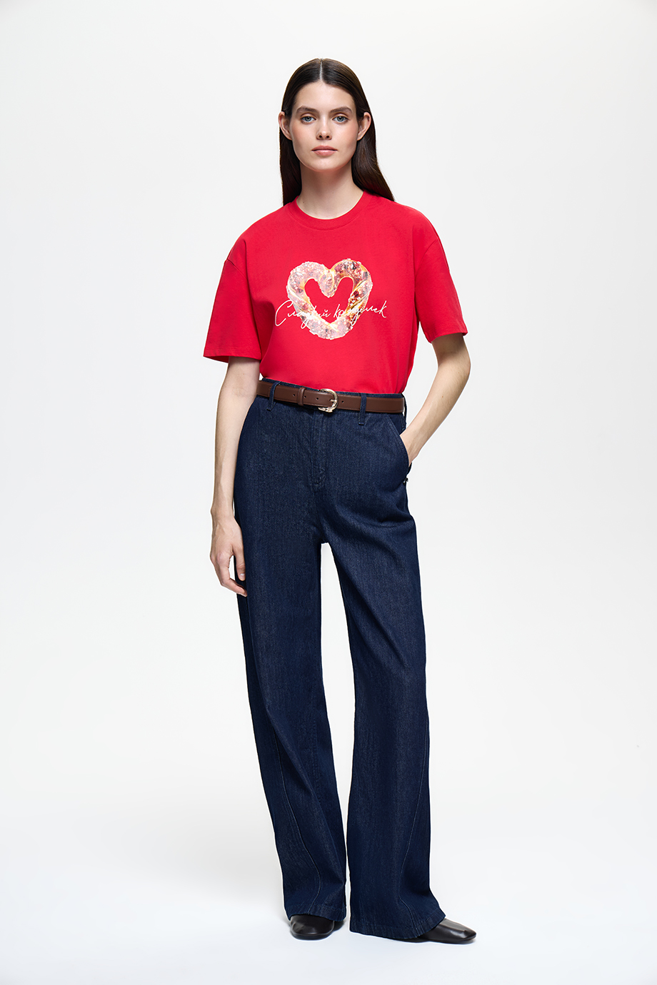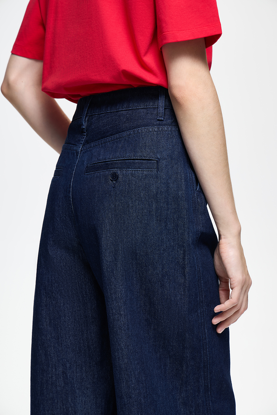 Плотные свободные джинсы трендового темно-синего оттенка. Практичная модель прямого кроя с комфортной высокой посадкой дополнена акцентными швами.