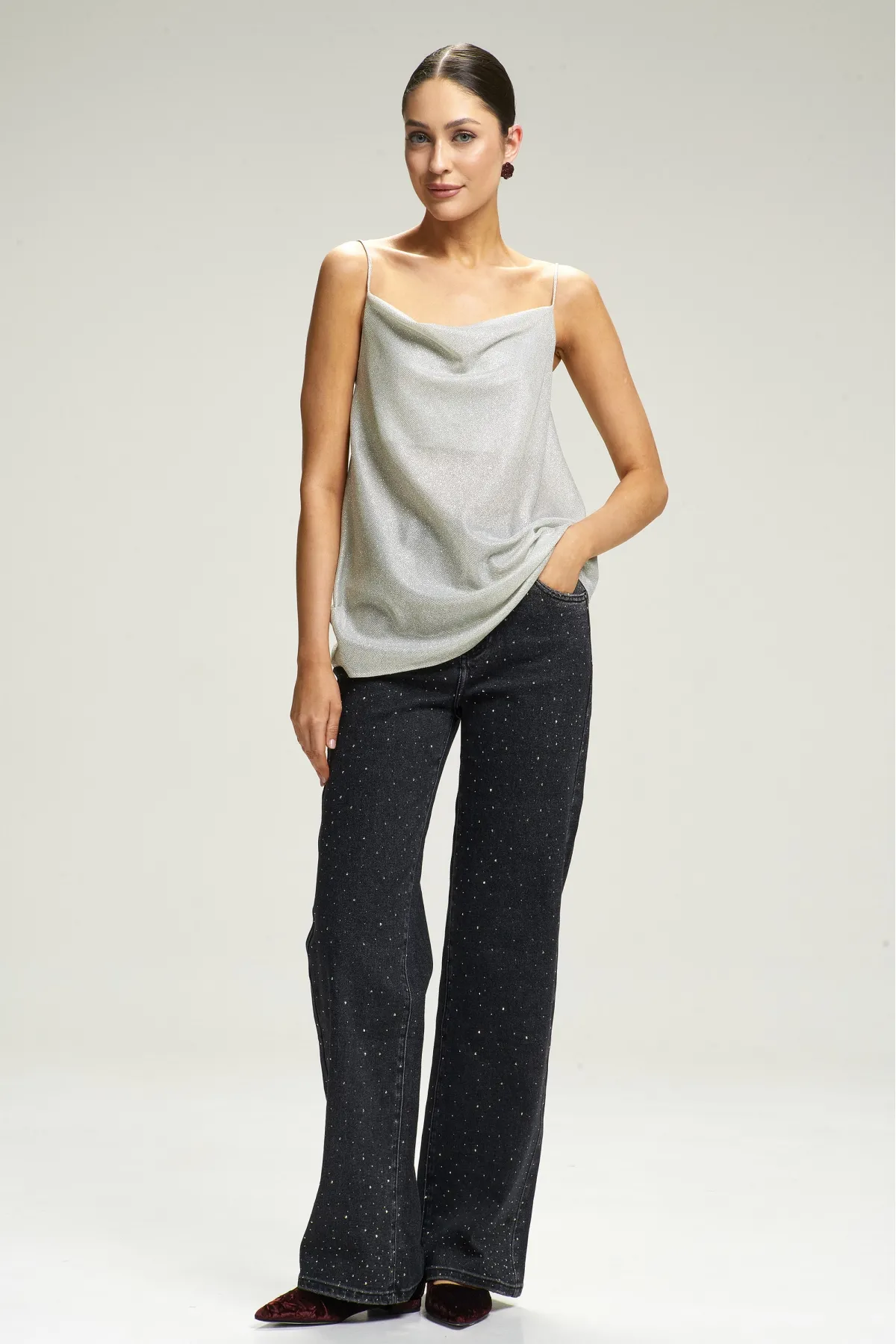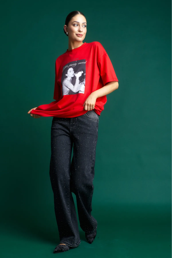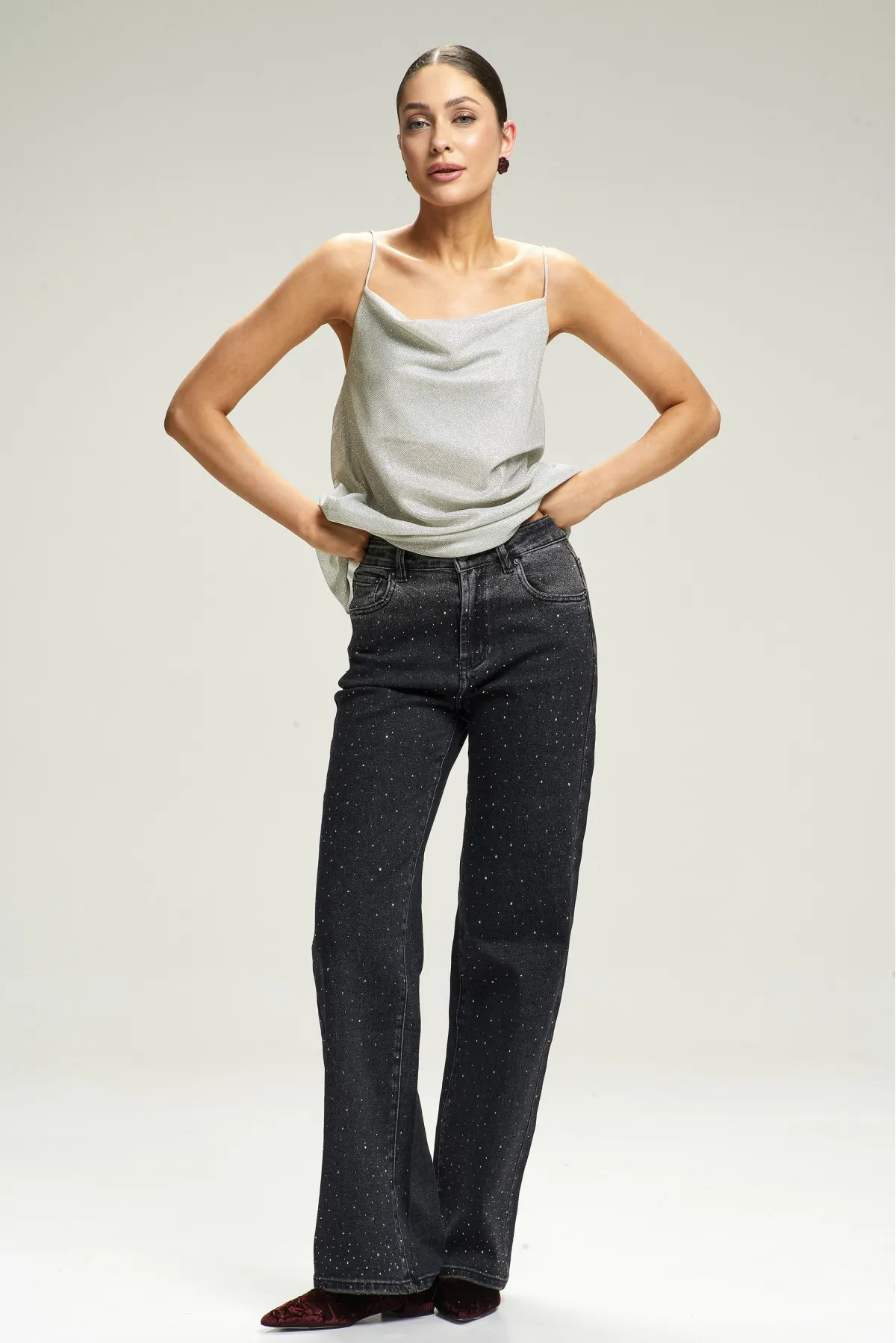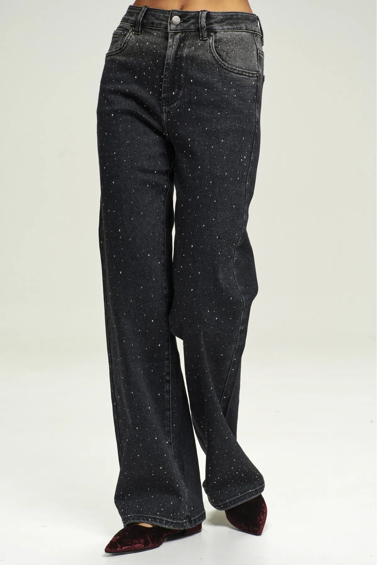 Джинсы Straight со стразами Black