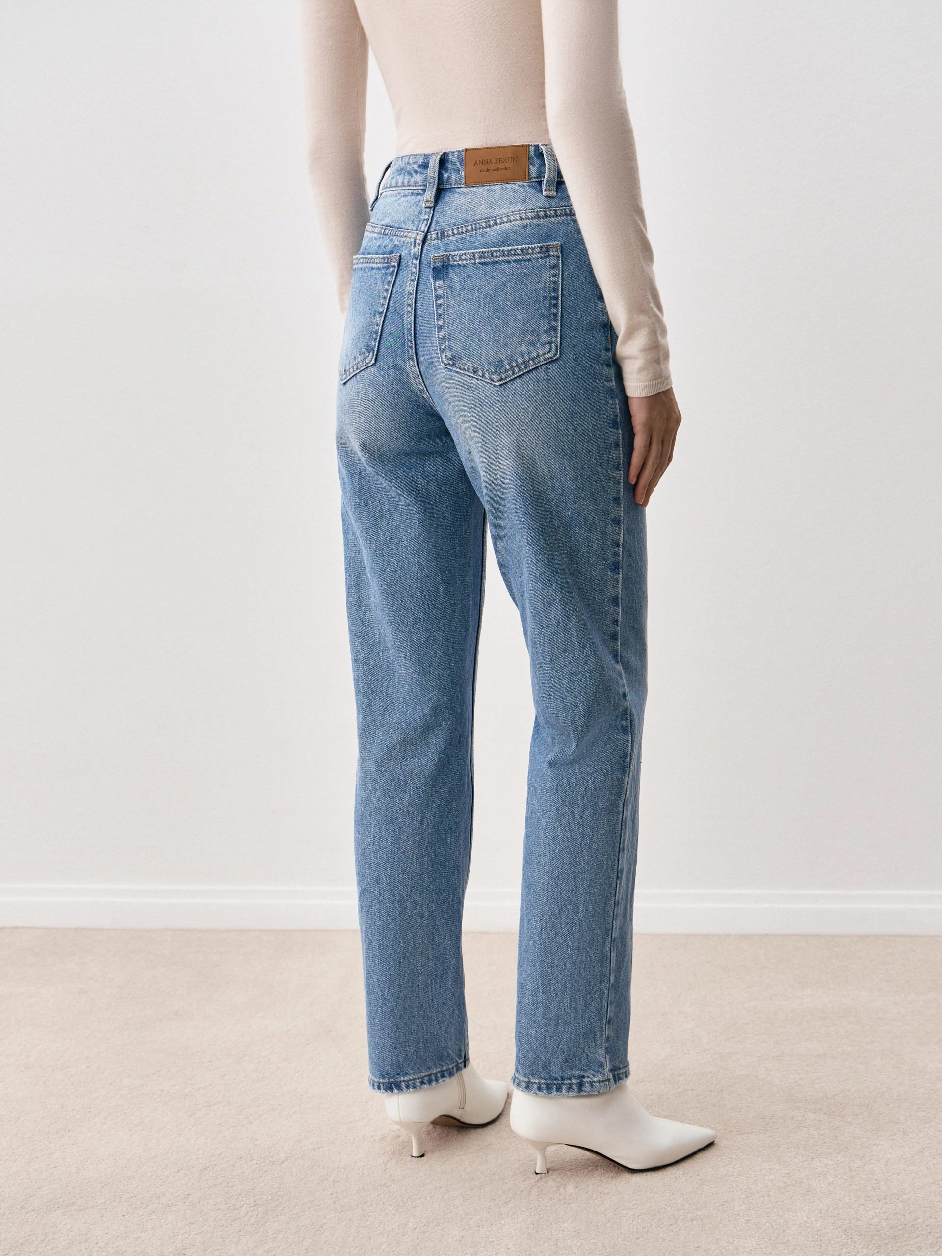 Джинсы из 100% хлопка. Модель окрашена по инновационной технологии. Плотный деним отличается прочностью и износоустойчивостью. В джинсах ANNA PEKUN применен особый метод обработки ткани — peach effect, который придает им особую мягкость, бархатистую текстуру и визуальный эффект, напоминающий эффект персика и деликатный блеск. Благодаря прямому универсальному крою эта модель станет отличной базой в вашем гардеробе. Джинсы легко стилизовать с разной одеждой, от базы до акцентных моделей, и обувью на плоском ходу или на каблуке.