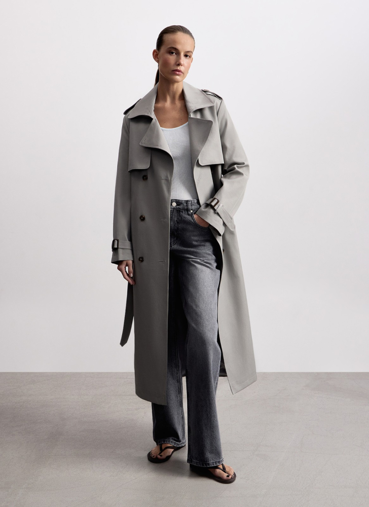 Прямой крой на чуть завышенной посадке подходит разным типам фигуры и создаёт сбалансированный силуэт.