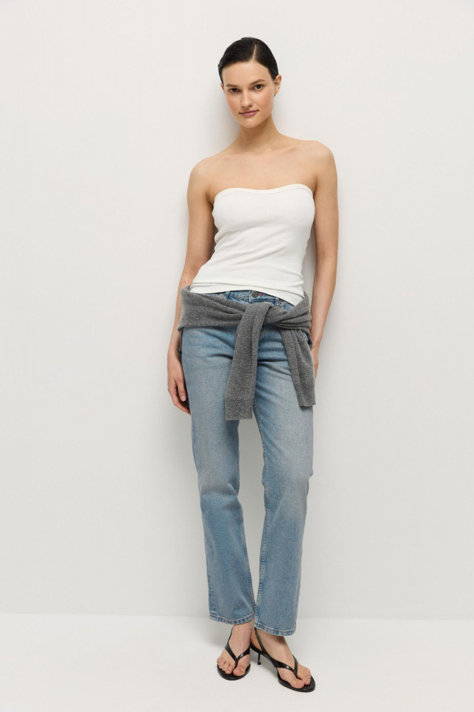 Джинсы прямого слегка зауженного кроя сшиты из натуральной плотной хлопковой джинсы в рубчик.